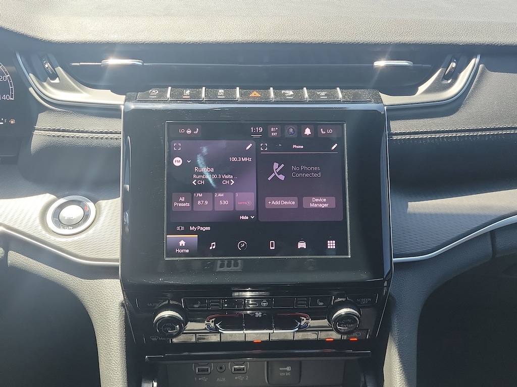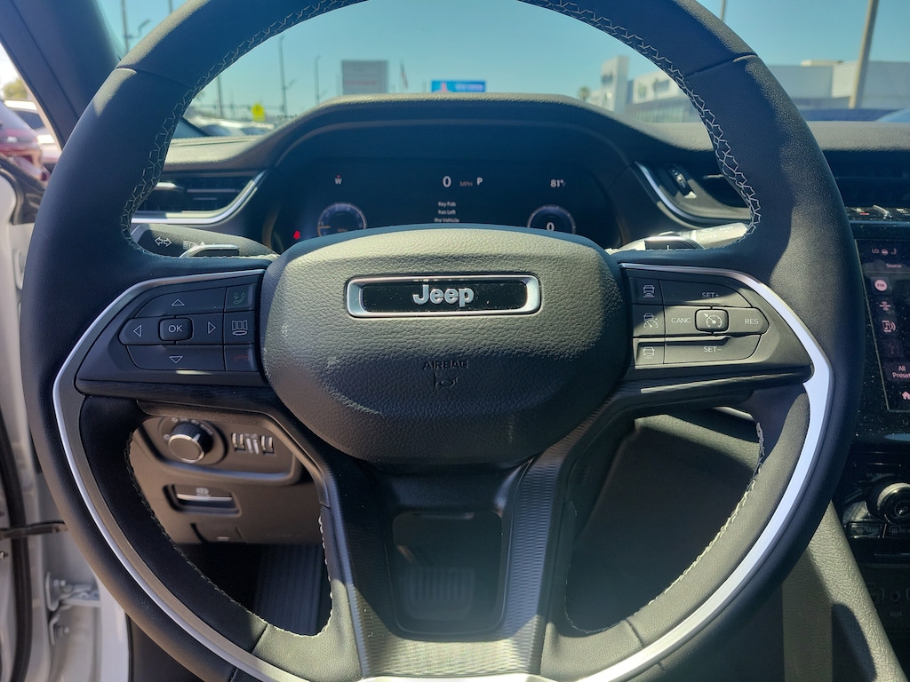 THIS VEHCILE INCLUDES THE FOLLOWING OPTIONS AND FEATURES: Quick Order Package 23M Altitude X (115V Auxiliary Power Outlet, 3rd Row Charge-Only USB Ports, Altitude X, Black Headliner, Capri Leatherette/Suede Seats, Delete Laredo Badge, Gloss Black Exterior Accents, Heated Front Seats, Heated Steering Wheel, Power Liftgate, Power Sunroof, Rain Sensitive Windshield Wipers, Remote Start System, Selectable Tire Fill Alert, Wheels: 18" x 8.0" Fully Painted Aluminum 1, and Wireless Charging Pad), 3.45 Rear Axle Ratio, 3rd row seats: split-bench, 4-Wheel Disc Brakes, 6 Speakers, ABS brakes, Air Conditioning, Alloy wheels, AM/FM radio: SiriusXM, Anti-whiplash front head restraints, Automatic temperature control, Brake assist, Bumpers: body-color, Cloth Seats, Compass, Delay-off headlights, Driver door bin, Driver vanity mirror, Dual front impact airbags, Dual front side impact airbags, Electronic Stability Control, Emergency communication system, Four wheel independent suspension, Front anti-roll bar, Front Bucket Seats, Front Center Armrest w/Storage, Front dual zone A/C, Front reading lights, Fully automatic headlights, Heated door mirrors, Illuminated entry, Knee airbag, Low tire pressure warning, Manual Fold Seatbacks, Model Year Tracking, Normal Duty Suspension, Occupant sensing airbag, Outside temperature display, Overhead airbag, Overhead console, Panic alarm, ParkView Rear Back-Up Camera, Passenger door bin, Passenger vanity mirror, Power door mirrors, Power driver seat, Power steering, Power windows, Radio data system, Radio: Uconnect 5 w/8.4" Display, Rear air conditioning, Rear anti-roll bar, Rear reading lights, Rear window defroster, Rear window wiper, Reclining 3rd row seat, Remote keyless entry, Security system, Speed control, Speed-Sensitive Wipers, Split folding rear seat, Spoiler, Steering wheel mounted audio controls, Tachometer, Telescoping steering wheel, Tilt steering wheel, Traction control, Trip computer, Variably intermittent wipers, Voltmeter, and Wheels: 18" x 8.0" Fully Painted Aluminum.
