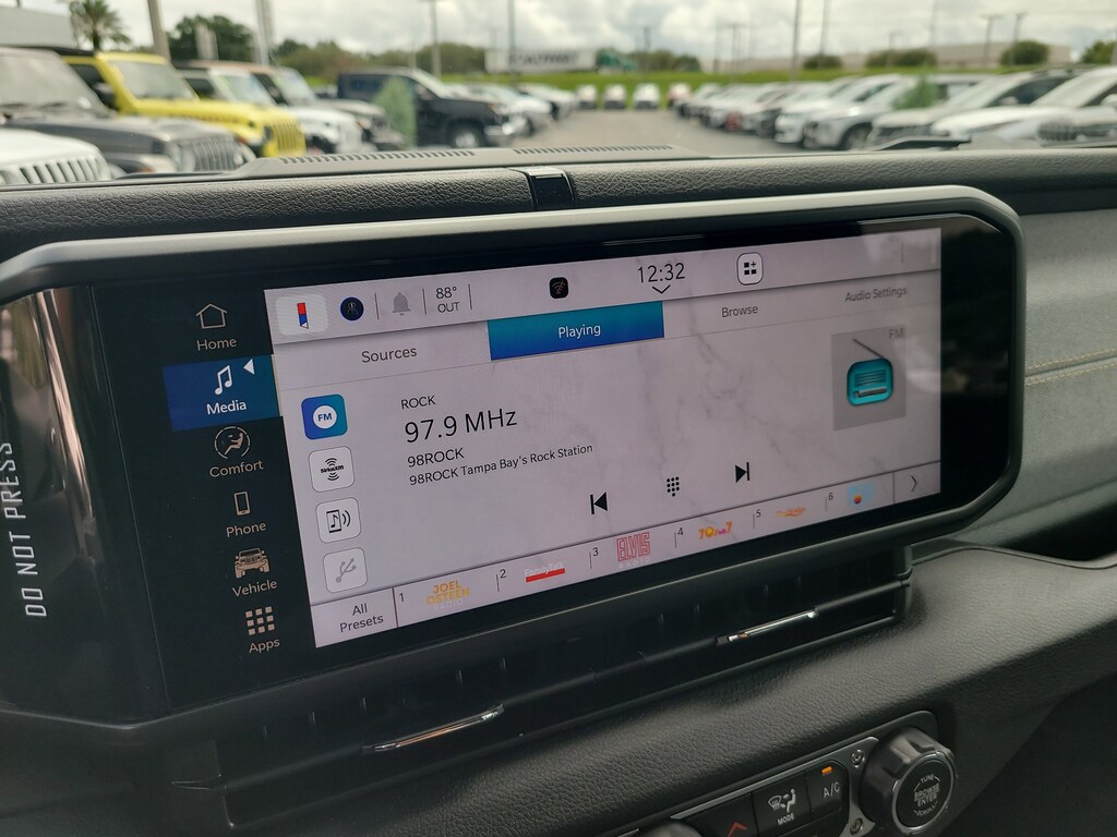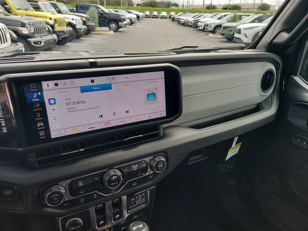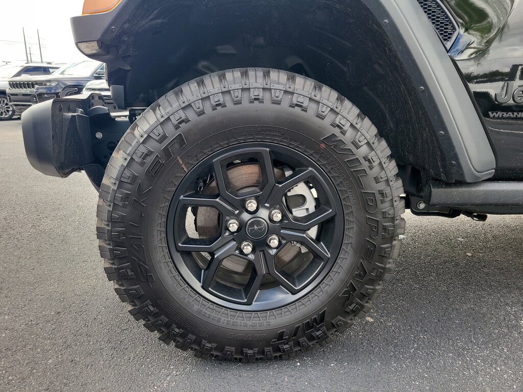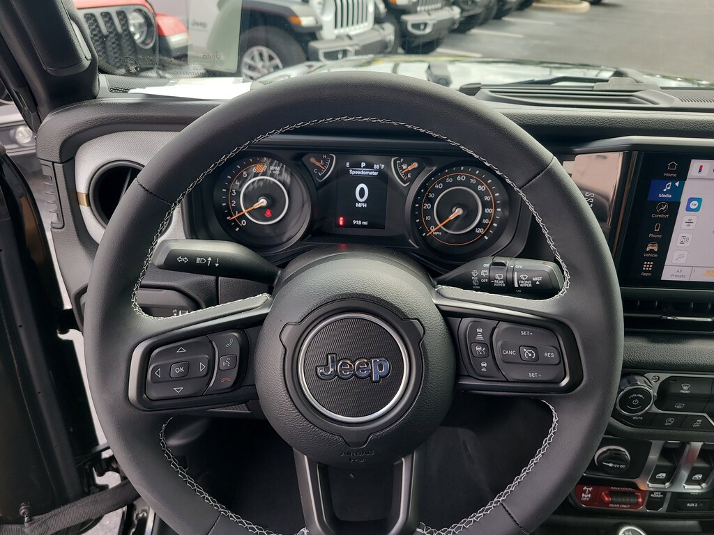 This Vehicle comes equipped with: Quick Order Package 22W Willys (4-Wheel Drive Swing Gate Decal, 7 & 4 Pin Wiring Harness, 97 MPH Vehicle Max Speed Calibration, Advanced Brake Assist, Automatic Headlamps, Auxiliary Switches, Black Grille, Class II Receiver Hitch, Conventional Differential Front Axle, Corning Gorilla Glass, Dana M210 Wide HD Tube Front Axle, Dana M220 Wide Rear Axle, Daytime Running Lamps LED Accents, Deep Tint Sunscreen Windows, E-Locker Rear Axle, Enhanced Adaptive Cruise Control, Front LED Fog Lamps, Full Speed Forward Collision Warning Plus, Injection Molded Black Rear Bumper, LED Premium Reflector Headlamps, Mold In Color Bumper w/Gloss Black, Molded in Color Rubicon Highline Flare, MOPAR All-Weather Floor Mats, Off-Road Plus Mode, Power Heated Mirrors, Premium Wrapped Steering Wheel, Security Alarm, Sun Visors w/Illuminated Vanity Mirrors, Wheels: 17" x 7.5" Painted Black, Willy's Suspension, and Willys Hood Decal), 110 MPH Vehicle Max Speed Calibration, 4-Wheel Disc Brakes, 8 Speakers, ABS brakes, Air Conditioning, AM/FM radio: SiriusXM, Apple CarPlay/Android Auto, Aux Battery, Black 3-Piece Hard Top, Brake assist, Cloth Low-Back Bucket Seats, Compass, Delay-off headlights, Driver door bin, Driver vanity mirror, Dual front impact airbags, Dual front side impact airbags, Electronic Stability Control, Freedom Panel Storage Bag, Front anti-roll bar, Front Bucket Seats, Front Center Armrest w/Storage, Front fog lights, Front reading lights, Illuminated entry, Integrated roll-over protection, Jeep Trail Rated Kit, Low tire pressure warning, Non-Lock Fuel Cap w/o Discriminator, Normal Duty Suspension, Occupant sensing airbag, Outside temperature display, Overhead airbag, Panic alarm, ParkView Rear Back-Up Camera, Passenger door bin, Passenger vanity mirror, Power steering, Power windows, Radio data system, Radio: Uconnect 5 w/12.3" Display, Rear anti-roll bar, Rear reading lights, Rear Window Defroster, Rear Window Wiper/Washer, Remote keyless entry, Speed control, Steering wheel mounted audio controls, Stop-Start Dual Battery System, Tachometer, Telescoping steering wheel, Tilt steering wheel, Traction control, Trip computer, Variably intermittent wipers, and Wheels: 17" x 7.5" Black Steel Styled.