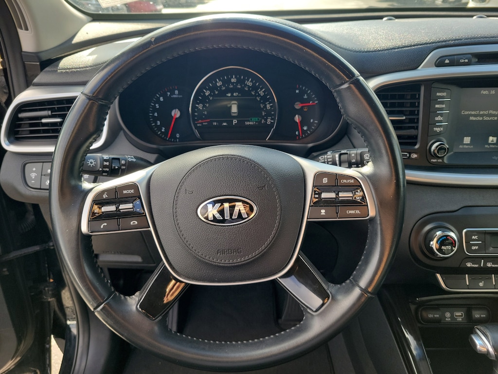 This Vehicle is nicely equipped with the following features: 18" x 7.5" Alloy Wheels, 3.32 Axle Ratio, 3rd row seats: split-bench, 4-Wheel Disc Brakes, 6 Speakers, ABS brakes, Air Conditioning, Alloy wheels, AM/FM radio: SiriusXM, Apple CarPlay & Android Auto, Auto-dimming Rear-View mirror, Automatic temperature control, Brake assist, Bumpers: body-color, Cargo Cover, Carpeted Floor Mats (7-Passenger), Delay-off headlights, Driver door bin, Driver vanity mirror, Dual front impact airbags, Dual front side impact airbags, Electronic Stability Control, Emergency communication system: UVO3, Exterior Parking Camera Rear, Four wheel independent suspension, Front anti-roll bar, Front Bucket Seats, Front Center Armrest, Front dual zone A/C, Front fog lights, Front reading lights, Fully automatic headlights, Garage door transmitter: HomeLink, Heated door mirrors, Heated Front Bucket Seats, Heated front seats, Illuminated entry, Leather Seat Trim, Leather steering wheel, Low tire pressure warning, Occupant sensing airbag, Outside temperature display, Overhead airbag, Overhead console, Panic alarm, Passenger door bin, Passenger vanity mirror, Power door mirrors, Power driver seat, Power Liftgate, Power passenger seat, Power steering, Power windows, Radio data system, Radio: UVO eServices, Rear air conditioning, Rear anti-roll bar, Rear seat center armrest, Rear window defroster, Rear window wiper, Remote keyless entry, Roof rack: rails only, Security system, Speed control, Speed-sensing steering, Split folding rear seat, Spoiler, Steering wheel mounted audio controls, Tachometer, Telescoping steering wheel, Tilt steering wheel, Traction control, Trip computer, Turn signal indicator mirrors, and Variably intermittent wipers. Odometer is 20551 miles below market average! 19/26 City/Highway MPG