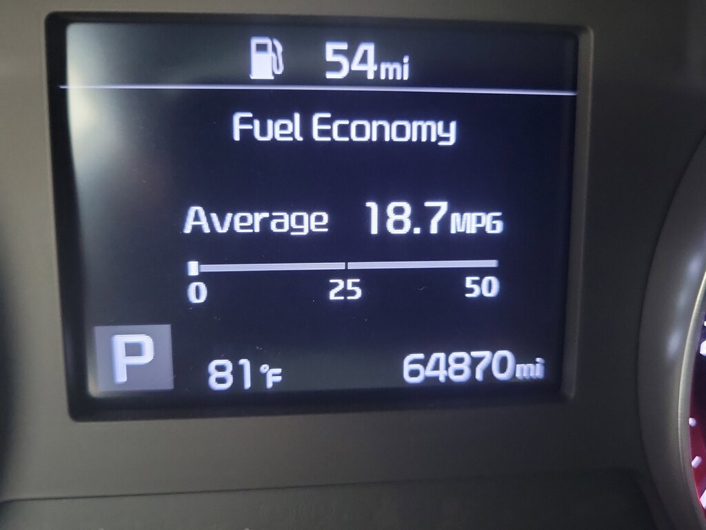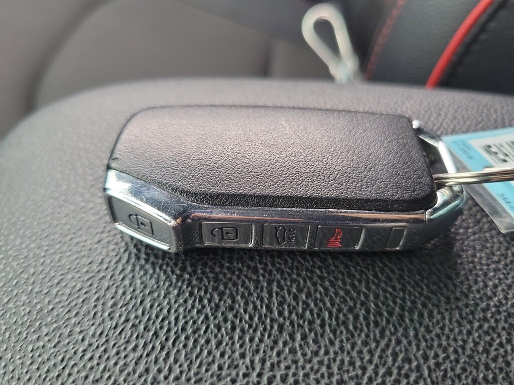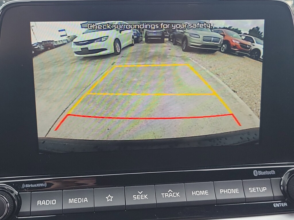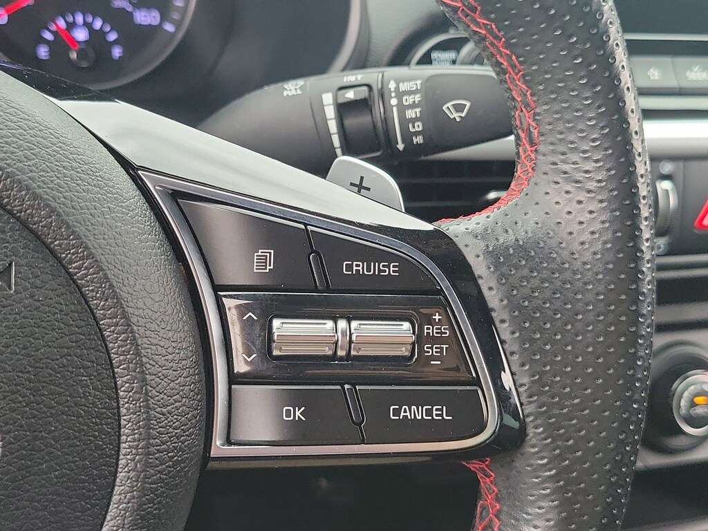 This Vehicle is nicely equipped with the following features: 4-Wheel Disc Brakes, 6 Speakers, ABS brakes, Air Conditioning, Alloy wheels, AM/FM radio: SiriusXM, Apple CarPlay & Android Auto, Auto High-beam Headlights, Brake assist, Bumpers: body-color, Cargo Net, Cargo Tray, Carpeted Floor Mats, Cloth & Leatherette Seat Trim, Delay-off headlights, Driver door bin, Driver vanity mirror, Dual front impact airbags, Dual front side impact airbags, Electronic Stability Control, Emergency communication system: UVO eServices, Exterior Parking Camera Rear, Four wheel independent suspension, Front anti-roll bar, Front Bucket Seats, Front Center Armrest, Front fog lights, Front reading lights, Front Sport Seats, Fully automatic headlights, Heated door mirrors, Illuminated entry, Lane Departure Warning System, Leather Shift Knob, Leather steering wheel, Low tire pressure warning, Occupant sensing airbag, Outside temperature display, Overhead airbag, Overhead console, Panic alarm, Passenger door bin, Passenger vanity mirror, Power door mirrors, Power steering, Power windows, Radio data system, Radio: AM/FM/MP3 Display Audio System, Radio: AM/FM/MP3 harman/kardon Premium Audio System, Rear anti-roll bar, Rear seat center armrest, Rear window defroster, Remote keyless entry, Security system, Speed control, Split folding rear seat, Spoiler, Sport steering wheel, Steering wheel mounted audio controls, Tachometer, Telescoping steering wheel, Tilt steering wheel, Traction control, Trip computer, Turn signal indicator mirrors, Variably intermittent wipers, and Wheels: 18" Machine Finish Alloy. 27/35 City/Highway MPG
