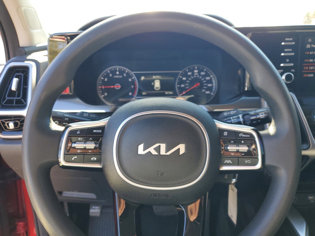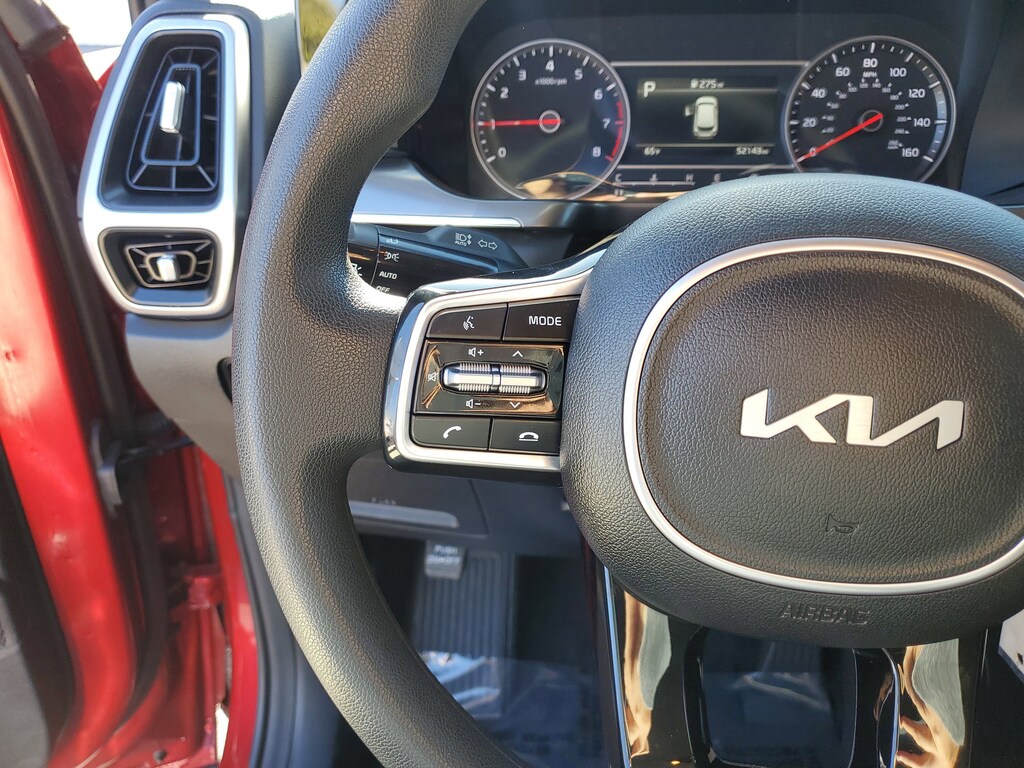 2023 Kia Sorento 2.5L I4 DGI DOHC 16V LEV3-ULEV70 191hp Passion Red Tintcoat This vehicle also comes equipped with: 3.798 Axle Ratio, 3rd row seats: split-bench, 4-Wheel Disc Brakes, 6 Speakers, 7.0J x 17 Alloy Wheels, ABS brakes, Air Conditioning, Alloy wheels, AM/FM radio, Apple CarPlay & Android Auto, Auto High-beam Headlights, Brake assist, Bumpers: body-color, Carpet Floor Mats, Cloth Seat Trim, Delay-off headlights, Driver door bin, Driver vanity mirror, Dual front impact airbags, Dual front side impact airbags, Electronic Stability Control, Exterior Parking Camera Rear, Four wheel independent suspension, Front anti-roll bar, Front Bucket Seats, Front Center Armrest, Front reading lights, Fully automatic headlights, Heated door mirrors, Illuminated entry, Knee airbag, Low tire pressure warning, Occupant sensing airbag, Outside temperature display, Overhead airbag, Overhead console, Panic alarm, Passenger door bin, Passenger vanity mirror, Power door mirrors, Power steering, Power windows, Radio data system, Radio: AM/FM Audio System, Rear anti-roll bar, Rear reading lights, Rear seat center armrest, Rear window defroster, Rear window wiper, Remote keyless entry, Security system, Speed control, Speed-sensing steering, Split folding rear seat, Spoiler, Steering wheel mounted audio controls, Tachometer, Telescoping steering wheel, Tilt steering wheel, Traction control, Trip computer, Turn signal indicator mirrors, and Variably intermittent wipers. FWD 8-Speed Automatic Priced below KBB Fair Purchase Price! 24/29 City/Highway MPG
