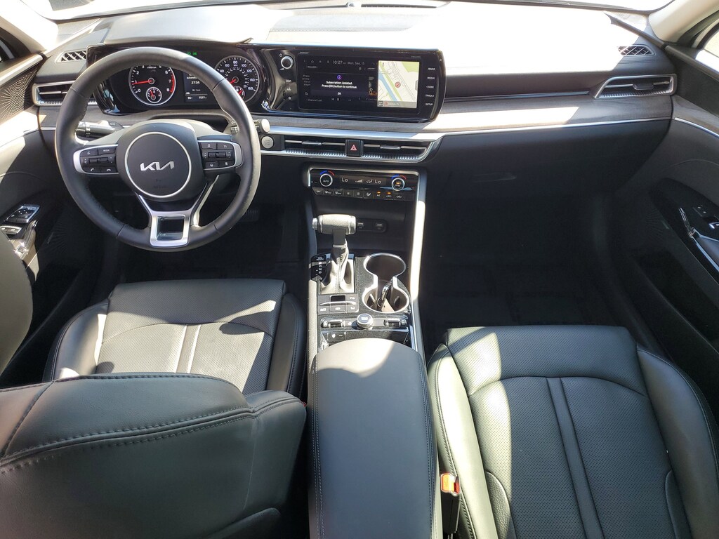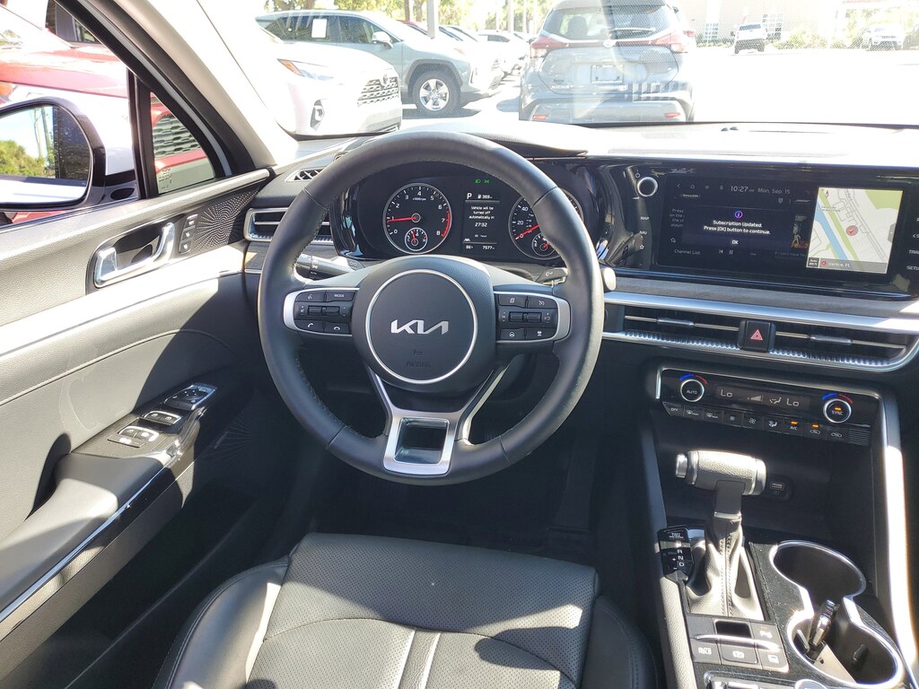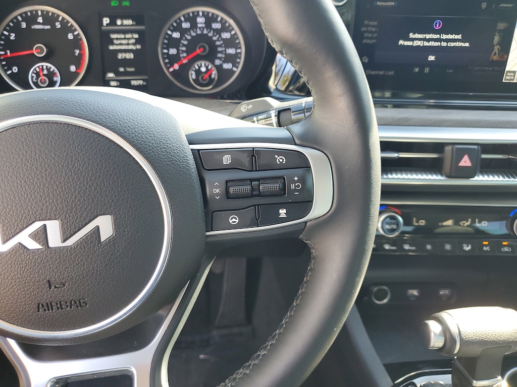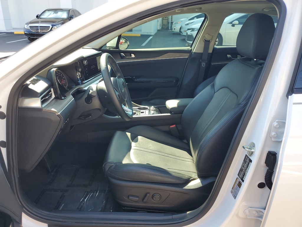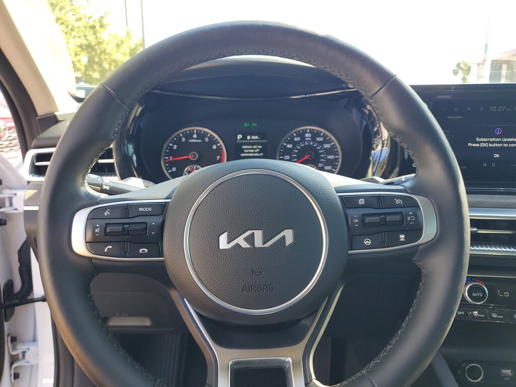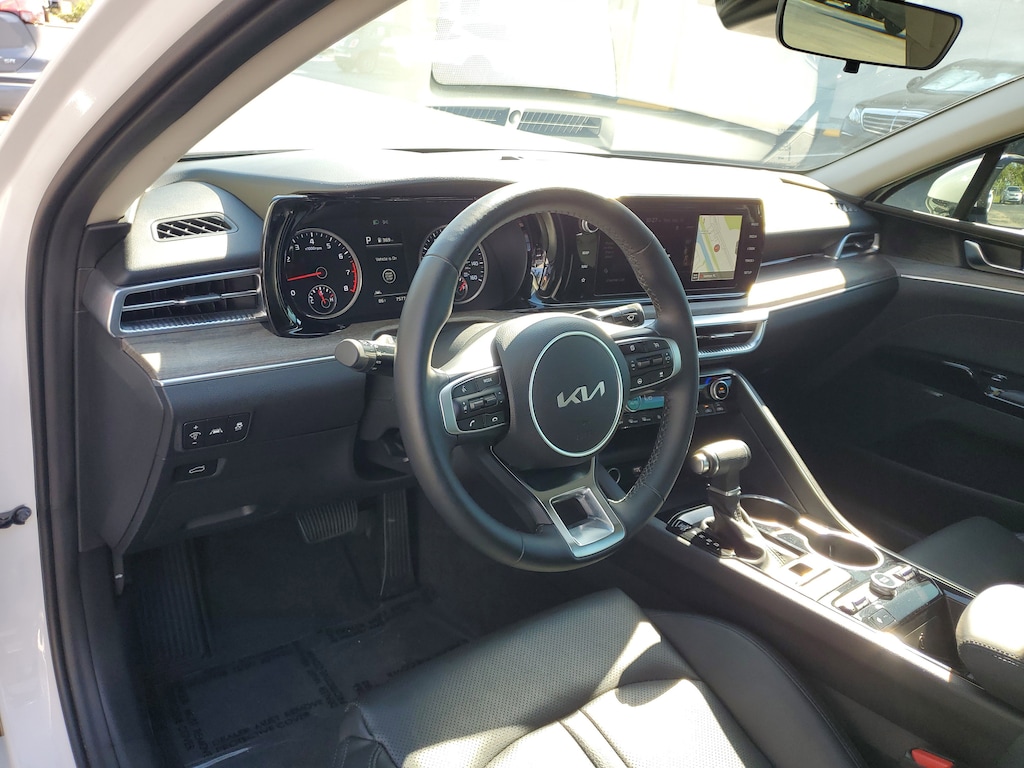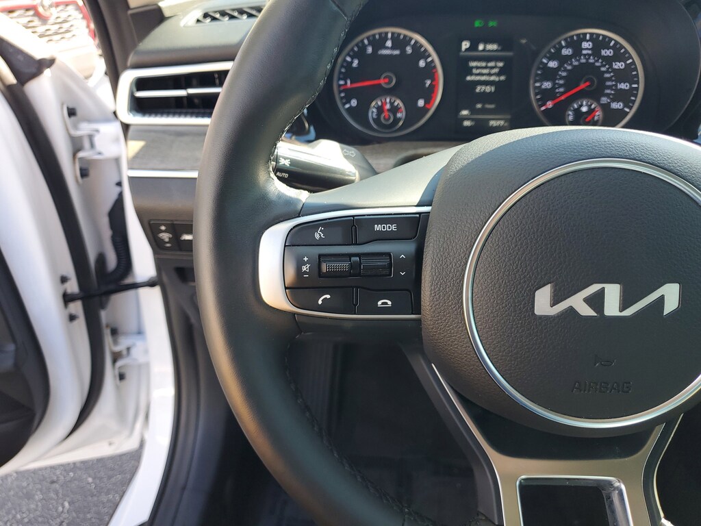 2024 Kia K5 1.6L I4 DGI Turbocharged DOHC 16V LEV3-ULEV70 180hp Glacial White Pearl This vehicle also comes equipped with: EX Premium Package (Active Sound Design, Auto Up/Down Rear Windows, Bose Premium Audio, Forward Collision Avoidance-Assist, Heated Steering Wheel, Highway Driving Assist, LED Rear Combination Lamps, Memory Driver's Seat & Outside Mirrors, Navigation-Based Smart Cruise Control - Curve, Parking Collision Avoidance-Assist - Reverse, Parking Distance Warning - Forward & Reverse, Power Child Lock, Power Folding Outside Mirrors w/LED Turn Signals, Power Front Passenger Seat, Safe Exit Assist w/Lock, Smart Cruise Control w/Stop & Go, and Surround View Monitor), 4-Wheel Disc Brakes, 6 Speakers, ABS brakes, Air Conditioning, Alloy wheels, AM/FM radio: SiriusXM, Apple CarPlay & Android Auto, Auto High-beam Headlights, Automatic temperature control, Brake assist, Bumpers: body-color, Cargo Net, Carpeted Floor Mats, Delay-off headlights, Driver door bin, Driver vanity mirror, Dual front impact airbags, Dual front side impact airbags, Electronic Stability Control, Emergency communication system, Four wheel independent suspension, Front anti-roll bar, Front Bucket Seats, Front Center Armrest, Front dual zone A/C, Front reading lights, Fully automatic headlights, Heated & Ventilated Front Bucket Seats, Heated door mirrors, Heated front seats, Illuminated entry, Knee airbag, Leather steering wheel, Low tire pressure warning, Navigation System, Occupant sensing airbag, Outside temperature display, Overhead airbag, Overhead console, Panic alarm, Passenger door bin, Passenger vanity mirror, Power door mirrors, Power driver seat, Power moonroof, Power steering, Power windows, Radio data system, Radio: AM/FM/MP3 Audio System, Rear anti-roll bar, Rear reading lights, Rear seat center armrest, Rear side impact airbag, Rear window defroster, Remote keyless entry, Security system, Smart Key w/ Push Button and Remote Start, Speed control, Speed-sensing steering, Split folding rear seat, Steering wheel mounted audio controls, SynTex Seat Trim, Tachometer, Telescoping steering wheel, Tilt steering wheel, Traction control, Trip computer, Trunk Cargo Management System, Variably intermittent wipers, Ventilated front seats, Wheel Locks, and Wheels: 18 Gray Machined Finish Alloy. FWD 8-Speed Automatic Priced below KBB Fair Purchase Price! Odometer is 21625 miles below market average! 27/37 City/Highway MPG