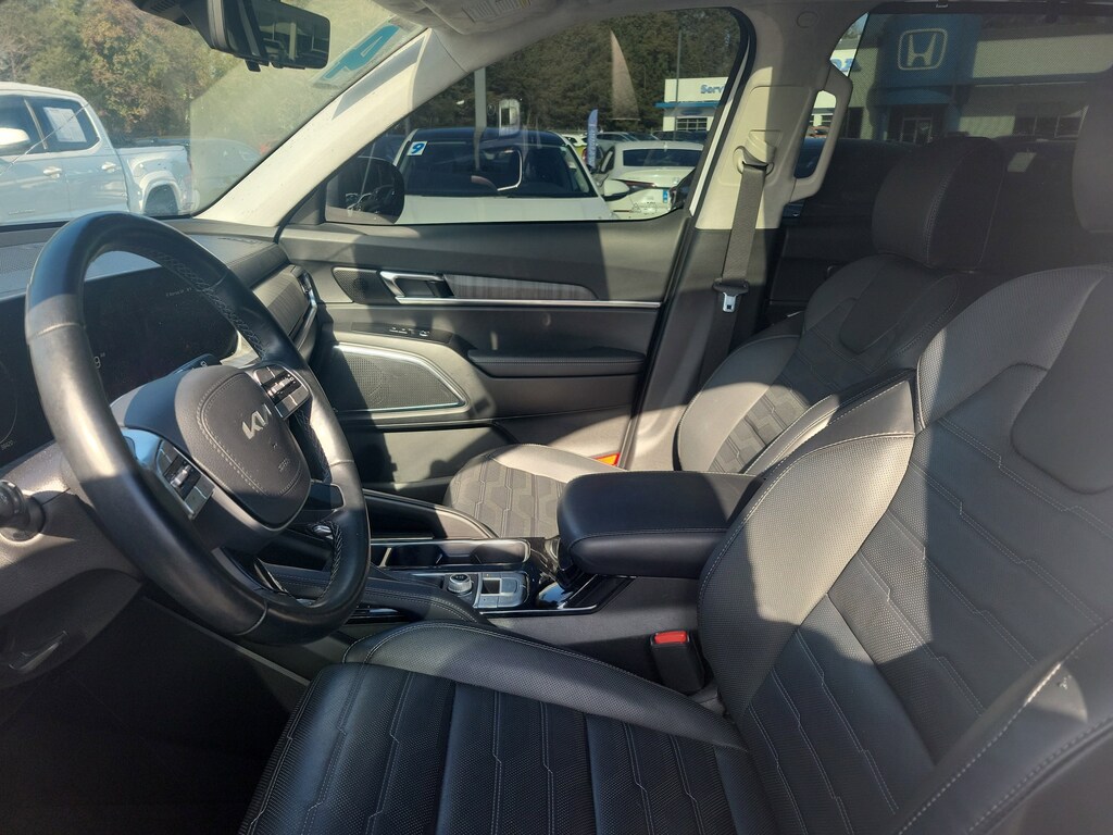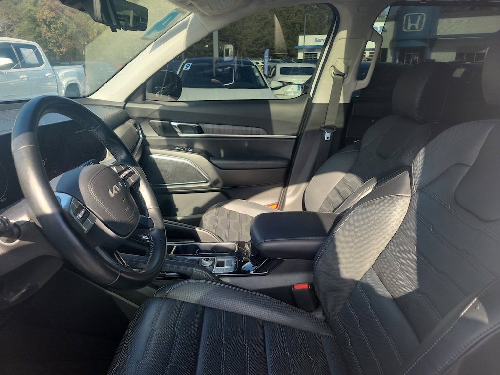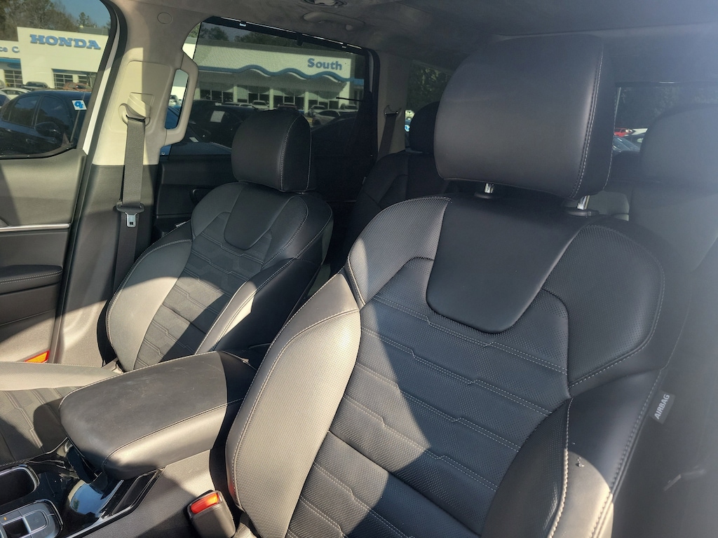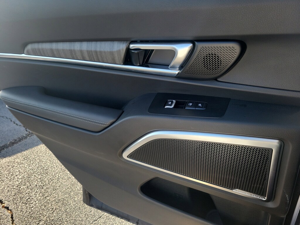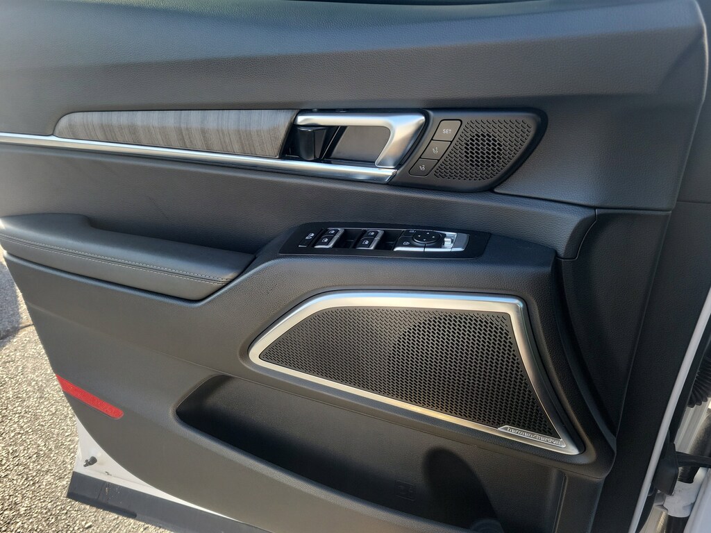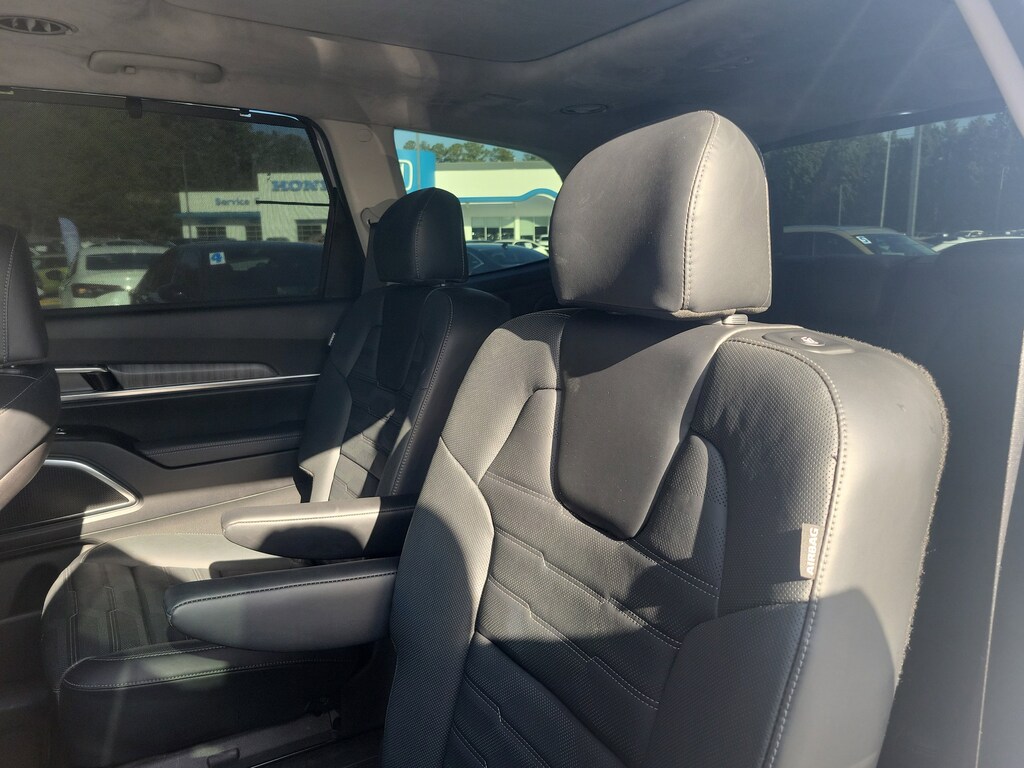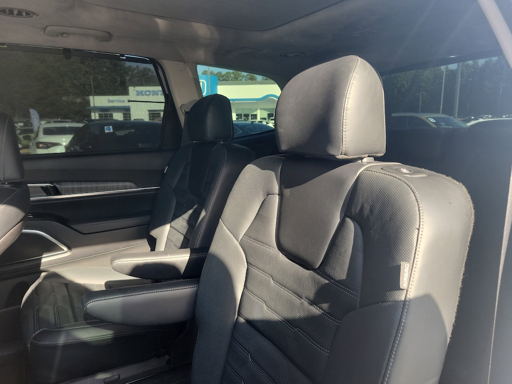 This Vehicle includes the following Options and Features 10 Speakers, 3.648 Axle Ratio, 3rd row seats: split-bench, 4-Wheel Disc Brakes, ABS brakes, Air Conditioning, Alloy wheels, AM/FM radio: SiriusXM, Apple CarPlay & Android Auto, Auto High-beam Headlights, Auto-dimming Rear-View mirror, Automatic temperature control, Brake assist, Bumpers: body-color, Carpet Floor Mats, Compass, Delay-off headlights, Driver door bin, Driver vanity mirror, Dual front impact airbags, Dual front side impact airbags, Electronic Stability Control, Emergency communication system: 911 Connect, Exterior Parking Camera Rear, Four wheel independent suspension, Front anti-roll bar, Front Bucket Seats, Front Center Armrest, Front dual zone A/C, Front fog lights, Front reading lights, Fully automatic headlights, Garage door transmitter: HomeLink, harman/kardon® Speakers, Heads-Up Display, Heated & Ventilated Front Bucket Seats, Heated door mirrors, Heated front seats, Heated rear seats, Heated steering wheel, Illuminated entry, Knee airbag, Leather Shift Knob, Leather steering wheel, Low tire pressure warning, Memory seat, Navigation System, Occupant sensing airbag, Outside temperature display, Overhead airbag, Overhead console, Panic alarm, Passenger door bin, Passenger vanity mirror, Power door mirrors, Power driver seat, Power Liftgate, Power moonroof, Power passenger seat, Power steering, Power windows, Premium Nappa Leather Seat Trim, Radio data system, Radio: AM/FM Harman Kardon Audio System, Rain sensing wipers, Rear air conditioning, Rear anti-roll bar, Rear audio controls, Rear reading lights, Rear side impact airbag, Rear window defroster, Rear window wiper, Reclining 3rd row seat, Remote keyless entry, Roof rack: rails only, Security system, Smart Key w/ Push Button and Remote Start, Speed control, Speed-sensing steering, Split folding rear seat, Spoiler, Steering wheel mounted audio controls, Tachometer, Telescoping steering wheel, Tilt steering wheel, Traction control, Trip computer, Turn signal indicator mirrors, Variably intermittent wipers, Ventilated front seats, Ventilated rear seats, and Wheels: 20" x 7.5" Black Finish.