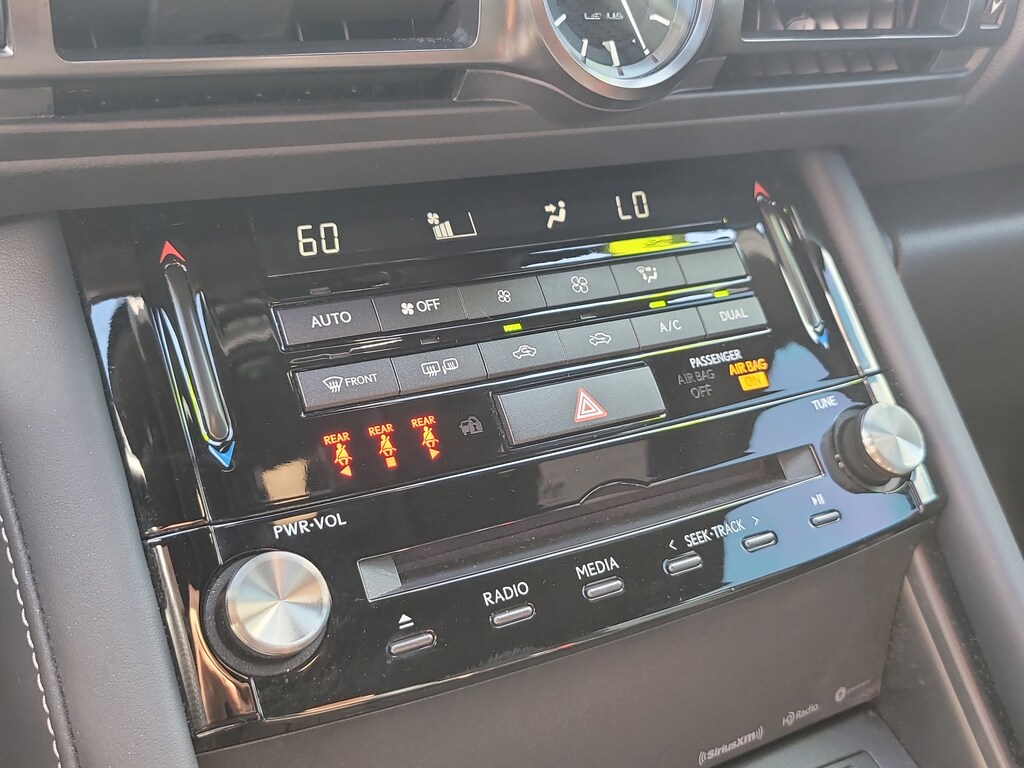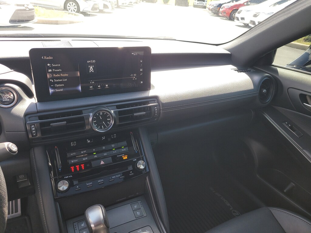 THIS VEHCILE INCLUDES THE FOLLOWING OPTIONS AND FEATURES: 10 Speakers, 19" Wheels, 4-Wheel Disc Brakes, ABS brakes, Air Conditioning, Alloy wheels, AM/FM radio: SiriusXM, Apple CarPlay/Android Auto, Auto High-beam Headlights, Auto-dimming door mirrors, Auto-dimming Rear-View mirror, Automatic temperature control, Brake assist, Bumpers: body-color, CD player, Compass, Delay-off headlights, Driver door bin, Driver vanity mirror, Dual front impact airbags, Dual front side impact airbags, Electronic Stability Control, Emergency communication system: Safety Connect (3-year trial), Exterior Parking Camera Rear, Four wheel independent suspension, Front anti-roll bar, Front Bucket Seats, Front Center Armrest, Front dual zone A/C, Front fog lights, Front reading lights, Fully automatic headlights, Garage door transmitter: HomeLink, Heated & Ventilated F SPORT Seats, Heated door mirrors, Heated front seats, Heated steering wheel, Illuminated entry, Knee airbag, Leather Shift Knob, Low tire pressure warning, Occupant sensing airbag, Outside temperature display, Overhead airbag, Overhead console, Panic alarm, Passenger door bin, Passenger vanity mirror, Perforated NuLuxe Seat Trim, Power door mirrors, Power driver seat, Power passenger seat, Power steering, Power windows, Radio data system, Radio: Multimedia System w/8" Color Touchscreen, Rain sensing wipers, Rear anti-roll bar, Rear reading lights, Rear seat center armrest, Rear side impact airbag, Rear window defroster, Remote keyless entry, Security system, Speed control, Speed-sensing steering, Speed-Sensitive Wipers, Split folding rear seat, Spoiler, Sport steering wheel, Steering wheel mounted audio controls, Tachometer, Telescoping steering wheel, Tilt steering wheel, Traction control, Trip computer, Turn signal indicator mirrors, Variably intermittent wipers, and Ventilated front seats.