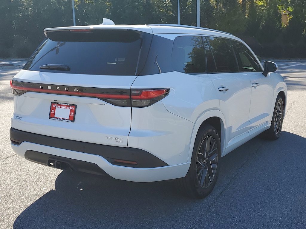 White 2025 Lexus TX 350 Premium 8-Speed Automatic 2.4L I4 Turbocharged ABS brakes, Active Cruise Control, Alloy wheels, Electronic Stability Control, Front dual zone A/C, Heated & Ventilated Front Seats, Heated door mirrors, Heated front seats, Illuminated entry, Low tire pressure warning, Navigation System, Power Liftgate, Power moonroof, Remote keyless entry, Traction control.