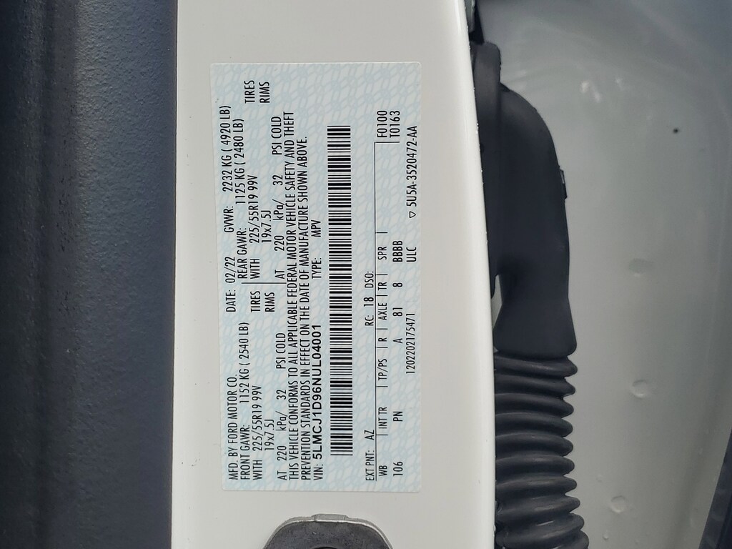 2022 Lincoln Corsair Standard Standard 2.0L I4 AWD 8-Speed Automatic Pristine White Metallic Tri-Coat