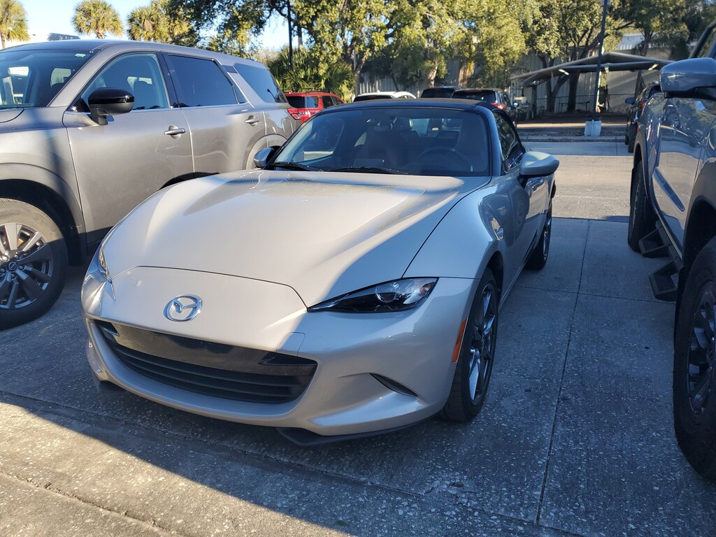 THIS VEHICLE IS EQUIPT WITH THE FOLLOWING FEATURES AND OPTIONS: Teracotta Nappa Leather Charge (Nappa Leather Upholstery w/Light Gray Stitching), 4-Wheel Disc Brakes, 9 Speakers, ABS brakes, Air Conditioning, Alloy wheels, AM/FM radio: SiriusXM, AppLink/Apple CarPlay and Android Auto, Auto High-beam Headlights, Auto-dimming door mirrors, Auto-dimming Rear-View mirror, Automatic temperature control, Brake assist, Bumpers: body-color, Cargo Net, Convertible roof lining, Convertible roof wind blocker, Delay-off headlights, Driver vanity mirror, Dual front impact airbags, Dual front side impact airbags, Electronic Stability Control, Emergency communication system: MAZDA CONNECT, Exterior Parking Camera Rear, First Aid Kit, Four wheel independent suspension, Front anti-roll bar, Front Bucket Seats, Front Center Armrest, Fully automatic headlights, Garage door transmitter: HomeLink, Glass rear window, Heated door mirrors, Heated Front Bucket Seats, Heated front seats, Illuminated entry, Leather Shift Knob, Leather Upholstery w/Light Gray Stitching, Low tire pressure warning, MAZDA CONNECT, Navigation System, Occupant sensing airbag, Outside temperature display, Panic alarm, Passenger vanity mirror, Power door mirrors, Power steering, Power windows, Radio data system, Radio: Bose Audio System w/AudioPilot, Rain sensing wipers, Rear anti-roll bar, Rear window defroster, Remote keyless entry, Roadside Assistance Kit, Speed control, Speed-sensing steering, Sport steering wheel, Steering wheel mounted audio controls, Tachometer, Telescoping steering wheel, Tilt steering wheel, Traction control, Trip computer, Variably intermittent wipers, Wheel Locks, and Wheels: 17 x 7 Dark Silver Aluminum Alloy.