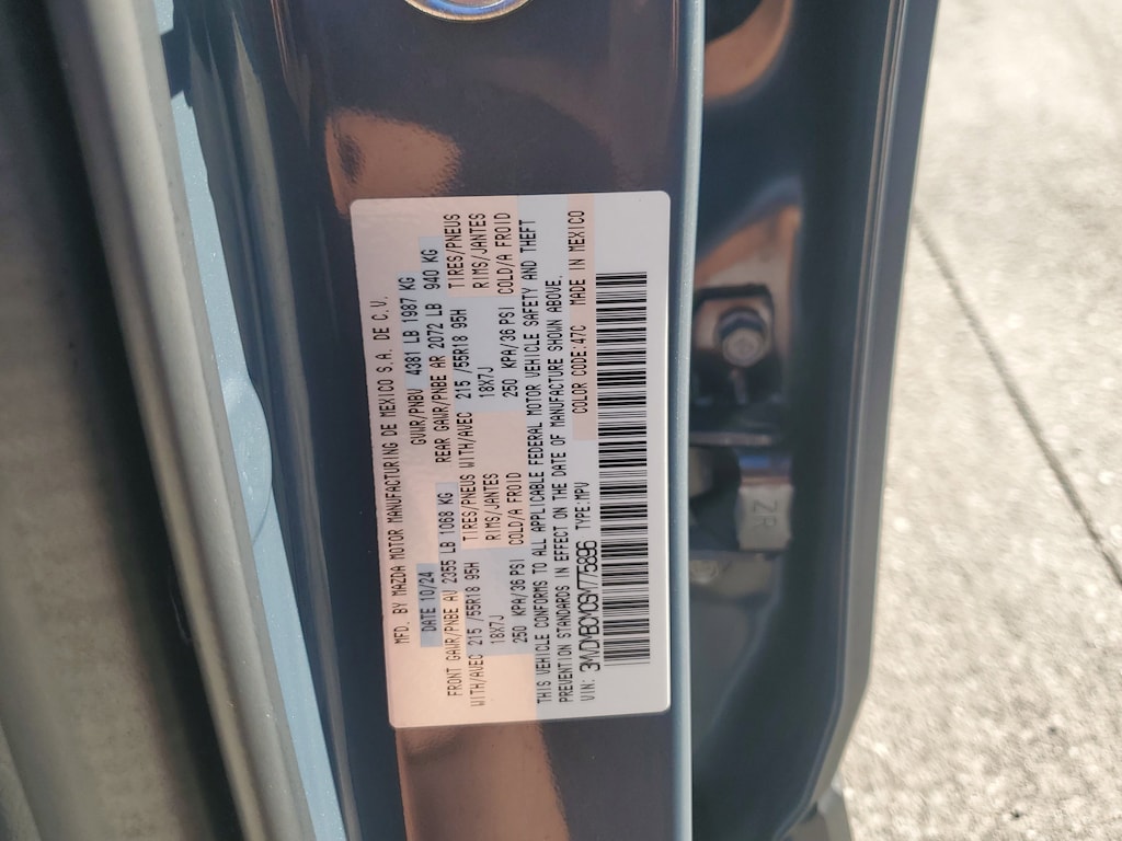 THIS VEHICLE IS EQUIPT WITH THE FOLLOWING FEATURES AND OPTIONS: 4-Wheel Disc Brakes, 8 Speakers, ABS brakes, Air Conditioning, Alloy wheels, AM/FM radio, AppLink/Apple CarPlay and Android Auto, Auto High-beam Headlights, Automatic temperature control, Brake assist, Bumpers: body-color, Compass, Delay-off headlights, Driver door bin, Driver vanity mirror, Dual front impact airbags, Dual front side impact airbags, Electronic Stability Control, Emergency communication system: Mazda Connected Services (3-year trial subscription included), Exterior Parking Camera Rear, Front anti-roll bar, Front Bucket Seats, Front Center Armrest, Front dual zone A/C, Front reading lights, Front wheel independent suspension, Fully automatic headlights, Heated door mirrors, Heated Front Bucket Seats, Heated front seats, Illuminated entry, Knee airbag, Leather Seat Trim, Leather Shift Knob, Leather steering wheel, Low tire pressure warning, MAZDA CONNECT Infotainment System, Memory seat, Occupant sensing airbag, Outside temperature display, Overhead airbag, Overhead console, Panic alarm, Passenger door bin, Passenger vanity mirror, Power door mirrors, Power driver seat, Power moonroof, Power steering, Power windows, Radio data system, Radio: AM/FM/HD Audio System, Rain sensing wipers, Rear seat center armrest, Rear side impact airbag, Rear window defroster, Rear window wiper, Remote keyless entry, Speed control, Speed-sensing steering, Split folding rear seat, Spoiler, Steering wheel mounted audio controls, Tachometer, Telescoping steering wheel, Tilt steering wheel, Traction control, Trip computer, Turn signal indicator mirrors, Variably intermittent wipers, and Wheels: 18 x 7J Aluminum Alloy.