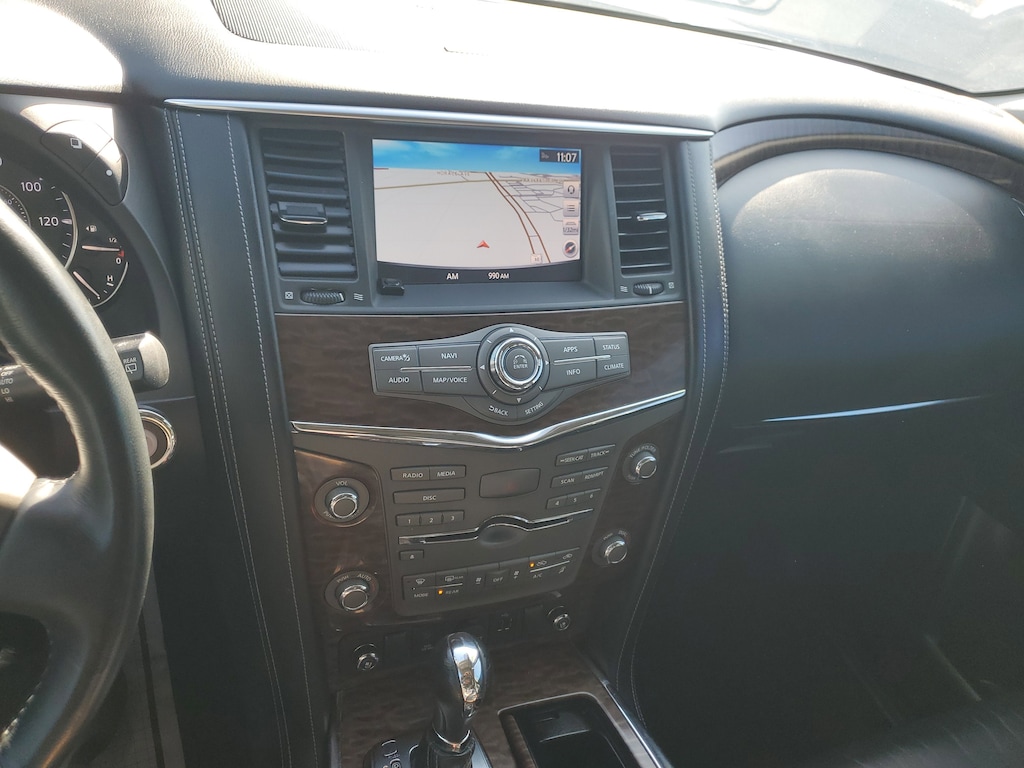 THIS VEHICLE IS EQUIPT WITH THE FOLLOWING FEATURES AND OPTIONS: Captain Seat Package (Second Row Captain's Chairs and Second Row Center Console w/ Padded Armrest), Carpeted Floor Mats w/ Captain Seat Package, 13 Speakers, 2.937 Axle Ratio, 3rd row seats: split-bench, 4-Wheel Disc Brakes, A/V remote, ABS brakes, Air Conditioning, Alloy wheels, AM/FM radio: SiriusXM, Anti-whiplash front head restraints, Auto tilt-away steering wheel, Auto-dimming door mirrors, Auto-dimming Rear-View mirror, Auto-leveling suspension, Automatic temperature control, Brake assist, Bumpers: body-color, CD player, Delay-off headlights, Driver door bin, Driver vanity mirror, Dual front impact airbags, Dual front side impact airbags, Electronic Stability Control, Emergency communication system: NissanConnect Services, Four wheel independent suspension, Front anti-roll bar, Front Bucket Seats, Front Center Armrest, Front dual zone A/C, Front fog lights, Front reading lights, Fully automatic headlights, Garage door transmitter: HomeLink, Headphones, Heated & Cooled Front Bucket Seats w/Driver Memory, Heated door mirrors, Heated front seats, Heated rear seats, Heated steering wheel, Illuminated entry, Illuminated Kick Plates, Lane Departure Warning System, Leather Shift Knob, Leather-Appointed Seat Trim, Low tire pressure warning, Memory seat, Navigation System, Occupant sensing airbag, Outside temperature display, Overhead airbag, Overhead console, Panic alarm, Passenger door bin, Passenger vanity mirror, Power door mirrors, Power driver seat, Power Liftgate, Power moonroof, Power passenger seat, Power steering, Power windows, Radio data system, Radio: Bose AM/FM/SXM/CD/MP3/HD Radio, Rain sensing wipers, Rear air conditioning, Rear anti-roll bar, Rear reading lights, Rear seat center armrest, Rear window defroster, Rear window wiper, Reclining 3rd row seat, Remote keyless entry, Roof rack: rails only, Roof Rail Cross Bars, Security system, Speed control, Speed-sensing steering, Speed-Sensitive Wipers, Split folding rear seat, Spoiler, Steering wheel memory, Steering wheel mounted audio controls, Tachometer, Telescoping steering wheel, Tilt steering wheel, Traction control, Trip computer, Turn signal indicator mirrors, Variably intermittent wipers, Ventilated front seats, Voltmeter, and Wheels: 20 Machine-Faced Chrome w/Tinted CC.