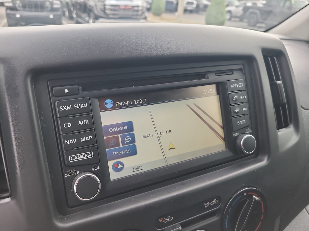THIS VEHCILE INCLUDES THE FOLLOWING OPTIONS AND FEATURES: Back Door Glass Package, Navigation Package (Radio: NissanConnect w/Navigation), 2 Speakers, 5.407 Axle Ratio, ABS brakes, Air Conditioning, AM/FM radio, AM/FM/CD Radio, Anti-whiplash front head restraints, Brake assist, Bumpers: body-color, CD player, Cloth Seat Trim, Driver door bin, Driver's Seat Mounted Armrest, Dual front impact airbags, Dual front side impact airbags, Electronic Stability Control, Front anti-roll bar, Front Bucket Seats, Front reading lights, Front wheel independent suspension, Heated door mirrors, Illuminated entry, Low tire pressure warning, Occupant sensing airbag, Outside temperature display, Overhead airbag, Panic alarm, Passenger door bin, Power door mirrors, Power steering, Power windows, Radio data system, Rear Sonar System, Remote keyless entry, Speed control, Speed-sensing steering, Tachometer, Traction control, Trip computer, Variably intermittent wipers, and Wheels: 15" x 5.5 JJ Steel w/Full Covers.