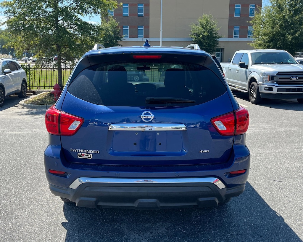 This vehicle comes equipped with : 4WD, 3rd row seats: bench, 4-Wheel Disc Brakes, 5.25 Axle Ratio, 6 Speakers, 6-Speaker Audio System, ABS brakes, Air Conditioning, Alloy wheels, AM/FM radio: SiriusXM, Automatic temperature control, Black Mold-in-Color Splash Guards, Brake assist, Bumpers: body-color, Carpeted Floor Mats (4-pc Set), CD player, Cloth Seating Surfaces, Delay-off headlights, Driver door bin, Driver vanity mirror, Dual front impact airbags, Dual front side impact airbags, Electronic Stability Control, Four wheel independent suspension, Front anti-roll bar, Front Bucket Seats, Front Center Armrest, Front dual zone A/C, Front reading lights, Illuminated entry, Low tire pressure warning, Occupant sensing airbag, Outside temperature display, Overhead airbag, Overhead console, Panic alarm, Passenger door bin, Passenger vanity mirror, Power door mirrors, Power steering, Power windows, Radio data system, Radio: AM/FM/CD Audio System w/NissanConnect, Rear air conditioning, Rear anti-roll bar, Rear Parking Sensors, Rear reading lights, Rear seat center armrest, Rear window defroster, Rear window wiper, Reclining 3rd row seat, Remote keyless entry, Roof rack: rails only, Security system, Speed control, Speed-sensing steering, Split folding rear seat, Spoiler, Steering wheel mounted audio controls, Tachometer, Telescoping steering wheel, Tilt steering wheel, Traction control, Trip computer, Turn signal indicator mirrors, Variably intermittent wipers, and Wheels: 18" x 7.5 J Machined Aluminum-Alloy.