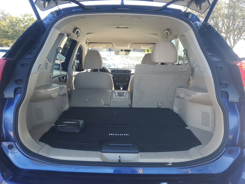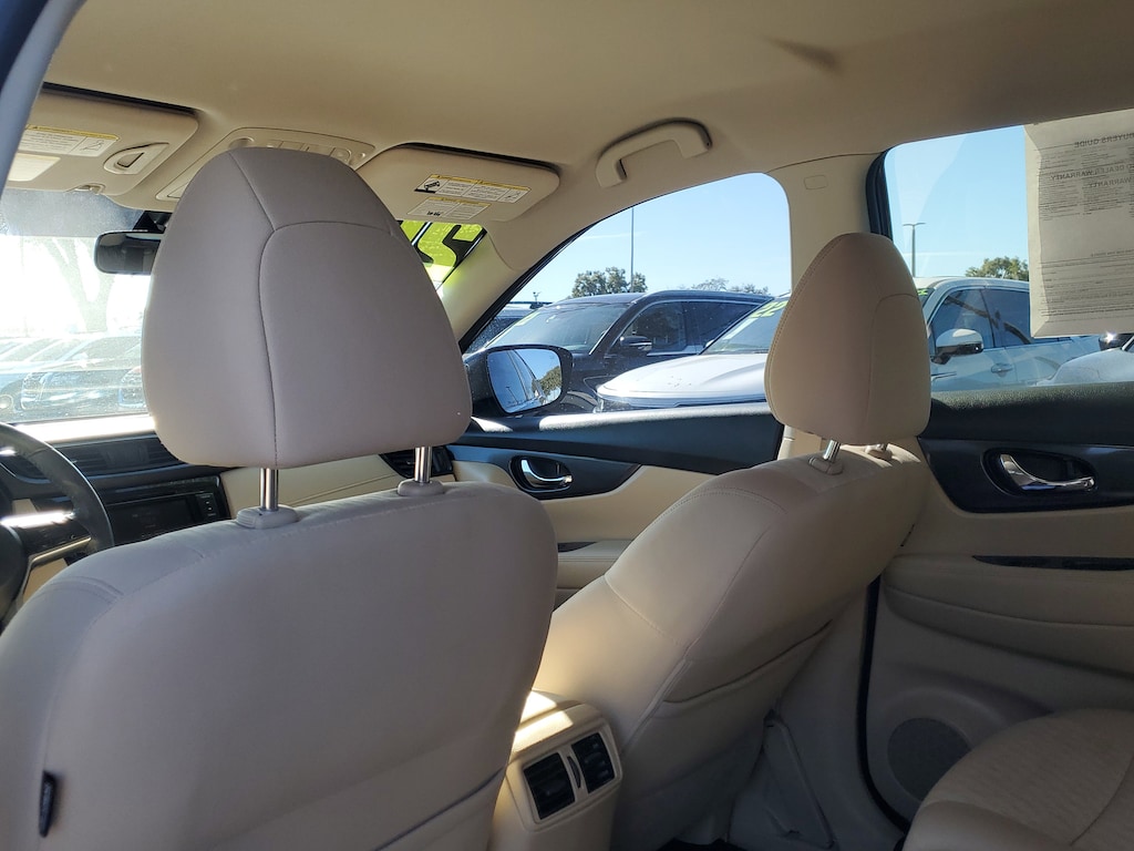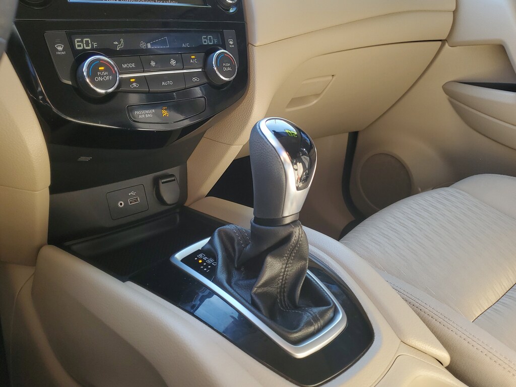 THIS VEHICLE IS EQUIPT WITH THE FOLLOWING FEATURES AND OPTIONS: 17 Aluminum Alloy Wheels, 4-Wheel Disc Brakes, 6 Speakers, 6.386 Axle Ratio, ABS brakes, Air Conditioning, Alloy wheels, AM/FM radio: SiriusXM, Anti-whiplash front head restraints, Auto High-beam Headlights, Automatic temperature control, Blind Spot Warning, Brake assist, Bumpers: body-color, CD player, Cloth Seat Trim, Delay-off headlights, Driver door bin, Driver vanity mirror, Dual front impact airbags, Dual front side impact airbags, Electronic Stability Control, First Aid Kit, Floor Mats & 2-PC Cargo Area Protector, Four wheel independent suspension, Front anti-roll bar, Front Bucket Seats, Front Center Armrest w/Storage, Front dual zone A/C, Front reading lights, Fully automatic headlights, Heated door mirrors, Heated Front Bucket Seats, Heated front seats, Illuminated entry, Lane Departure Warning System, Leather Shift Knob, Low tire pressure warning, NissanConnect featuring Apple CarPlay and Android Auto, Occupant sensing airbag, Outside temperature display, Overhead airbag, Overhead console, Panic alarm, Passenger door bin, Passenger vanity mirror, Power door mirrors, Power driver seat, Power Liftgate, Power steering, Power windows, Radio data system, Radio: AM/FM/CD/AUX, Radio: AM/FM/CD/AUX NissanConnect w/Navigation, Rear anti-roll bar, Rear Parking Sensors, Rear seat center armrest, Rear window defroster, Rear window wiper, Remote keyless entry, Roof rack: rails only, Security system, Speed control, Speed-sensing steering, Split folding rear seat, Spoiler, Steering wheel mounted audio controls, Tachometer, Telescoping steering wheel, Tilt steering wheel, Traction control, Trip computer, Turn signal indicator mirrors, and Variably intermittent wipers.