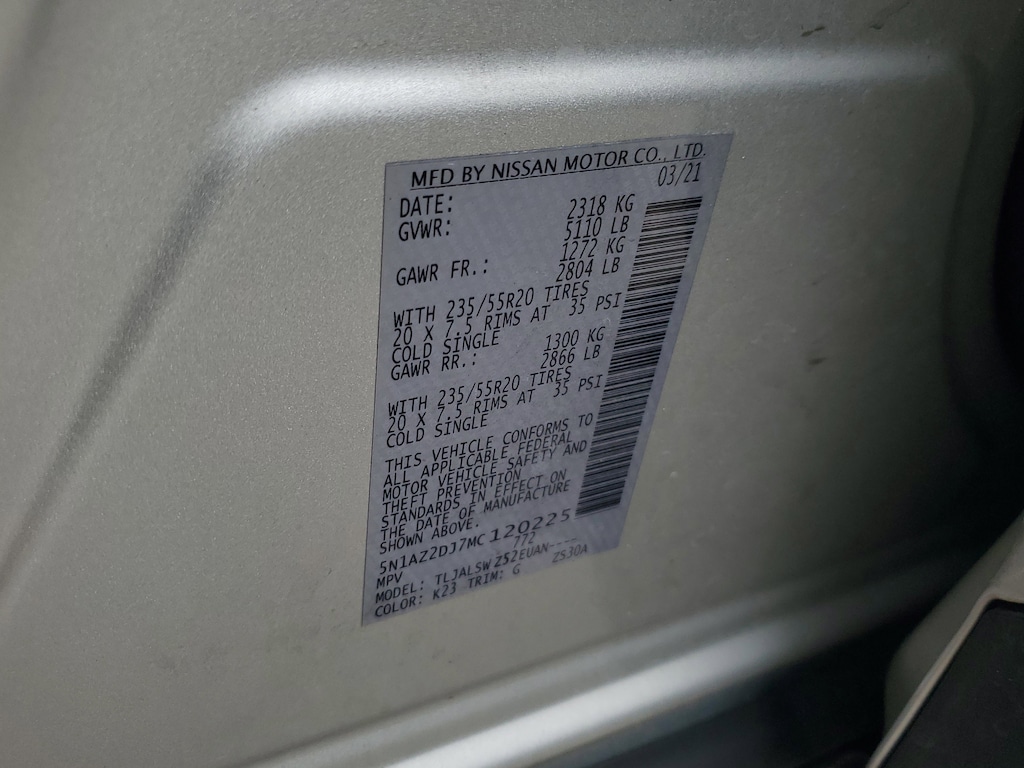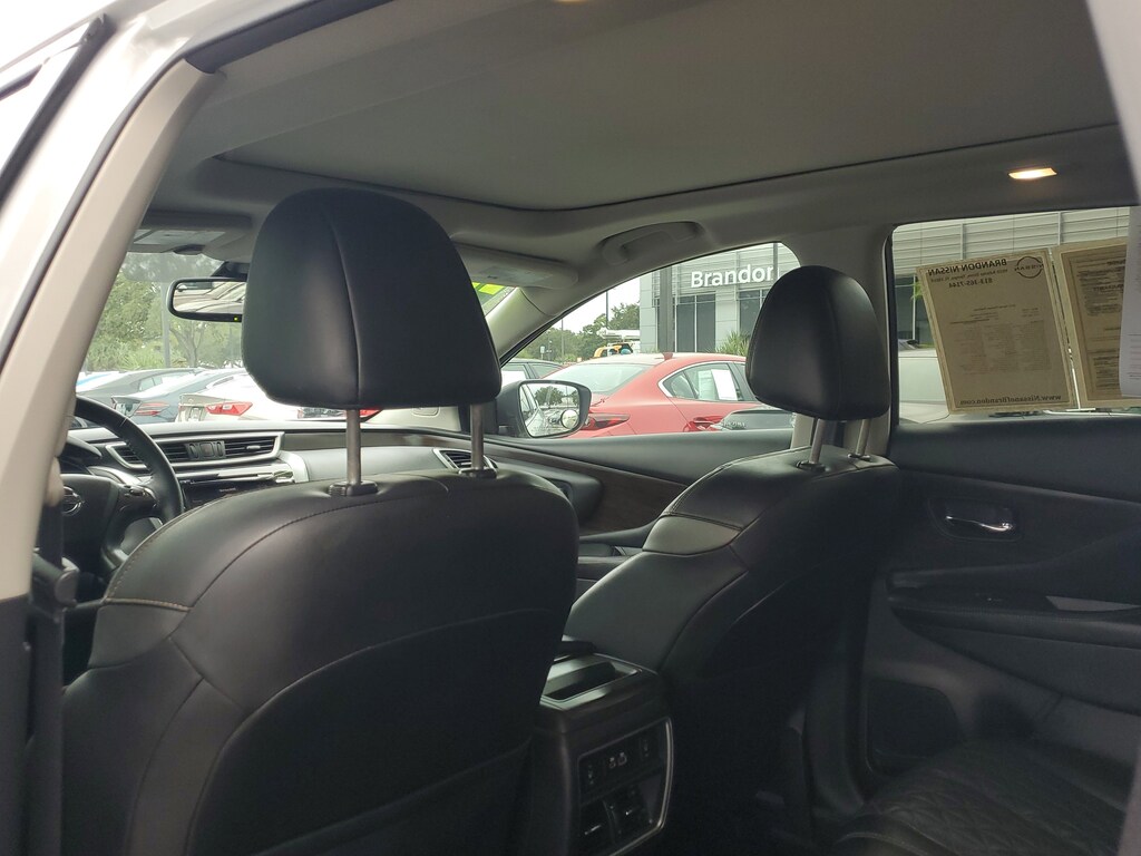 THIS VEHICLE IS EQUIPT WITH THE FOLLOWING FEATURES AND OPTIONS: Cargo Package (Cargo Area Protector, Cargo Net, First Aid Kit, and Retractable Cargo Cover), 11 Speakers, 4-Wheel Disc Brakes, 4.667 Axle Ratio, ABS brakes, Air Conditioning, Alloy wheels, AM/FM radio: SiriusXM, AM/FM/CD/MP3/WMA Audio System, Auto High-beam Headlights, Auto tilt-away steering wheel, Auto-dimming Rear-View mirror, Automatic temperature control, Blind Spot Warning, Brake assist, Bumpers: body-color, Carpeted Floor Mats & Carpeted Cargo Mat, CD player, Child-Seat-Sensing Airbag, Delay-off headlights, Driver door bin, Driver vanity mirror, Dual front impact airbags, Dual front side impact airbags, Electronic Stability Control, Emergency communication system: NissanConnect Services (first 6 months included), Exterior Parking Camera Rear, Four wheel independent suspension, Front anti-roll bar, Front Bucket Seats, Front Center Armrest, Front dual zone A/C, Front fog lights, Front reading lights, Fully automatic headlights, Garage door transmitter: HomeLink, Heated & Ventilated Front Bucket Seats, Heated door mirrors, Heated front seats, Heated rear seats, Heated steering wheel, Illuminated entry, Illuminated Kick Plates, Illuminated Kick Plates (PIO), Knee airbag, Low tire pressure warning, Memory seat, Navigation system: NissanConnect Navigation, NissanConnect featuring Apple CarPlay and Android Auto, NissanConnect Services Powered By SiriusXM, Occupant sensing airbag, Outside temperature display, Overhead airbag, Overhead console, Panic alarm, Passenger door bin, Passenger vanity mirror, Power door mirrors, Power driver seat, Power Liftgate, Power moonroof, Power passenger seat, Power steering, Power windows, Radio data system, Rear anti-roll bar, Rear Bumper Protector, Rear reading lights, Rear seat center armrest, Rear side impact airbag, Rear window defroster, Rear window wiper, Remote keyless entry, Roof rack: rails only, Security system, Semi-Aniline Leather-Appointed Seat Trim, Speed control, Speed-sensing steering, Speed-Sensitive Wipers, Splash Guards, Split folding rear seat, Spoiler, Steering wheel memory, Steering wheel mounted audio controls, Tachometer, Telescoping steering wheel, Tilt steering wheel, Traction control, Trip computer, Turn signal indicator mirrors, Variably intermittent wipers, Ventilated front seats, and Wheels: 20 Dark Hyper Silver.