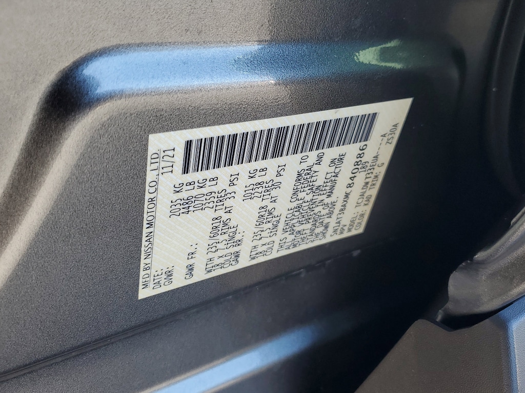 THIS VEHICLE IS EQUIPT WITH THE FOLLOWING FEATURES AND OPTIONS: 18 Aluminum Alloy Wheels, 4-Wheel Disc Brakes, 5.604 Axle Ratio, 6 Speakers, ABS brakes, Air Conditioning, Alloy wheels, AM/FM Radio, AM/FM radio, Auto High-beam Headlights, Automatic temperature control, Black Splash Guards (Set of 4), Brake assist, Bumpers: body-color, Chrome Rear Bumper Protector, Cloth Seat Trim, Delay-off headlights, Driver door bin, Driver vanity mirror, Dual front impact airbags, Dual front side impact airbags, Electronic Stability Control, Emergency communication system: NissanConnect Services, First Aid Kit, Floor Mats w/1-Piece Cargo Area Protector, Four wheel independent suspension, Front anti-roll bar, Front Bucket Seats, Front Center Armrest, Front dual zone A/C, Front reading lights, Fully automatic headlights, Heated door mirrors, Illuminated entry, Knee airbag, Low tire pressure warning, NissanConnect featuring Apple CarPlay and Android Auto, Occupant sensing airbag, Outside temperature display, Overhead airbag, Overhead console, Panic alarm, Passenger door bin, Passenger vanity mirror, Power door mirrors, Power driver seat, Power steering, Power windows, Radio data system, Rear anti-roll bar, Rear Parking Sensors, Rear seat center armrest, Rear side impact airbag, Rear window defroster, Rear window wiper, Remote keyless entry, Security system, Speed control, Speed-Sensitive Wipers, Split folding rear seat, Spoiler, Steering wheel mounted audio controls, Tachometer, Telescoping steering wheel, Tilt steering wheel, Traction control, Trip computer, Turn signal indicator mirrors, and Variably intermittent wipers.