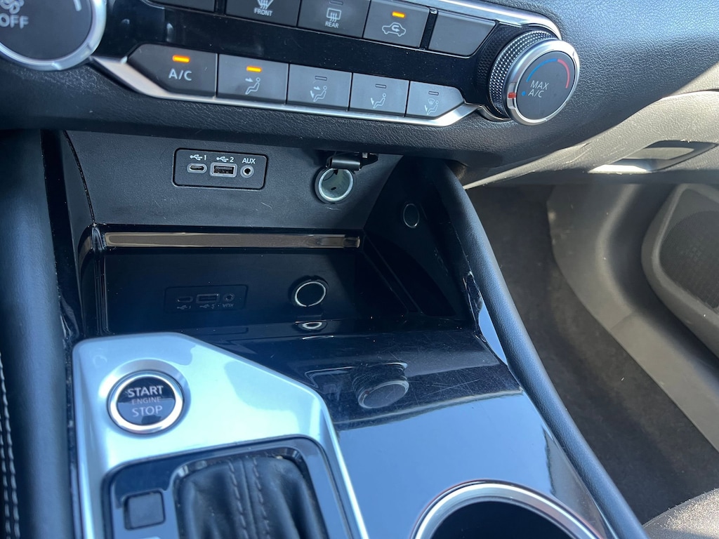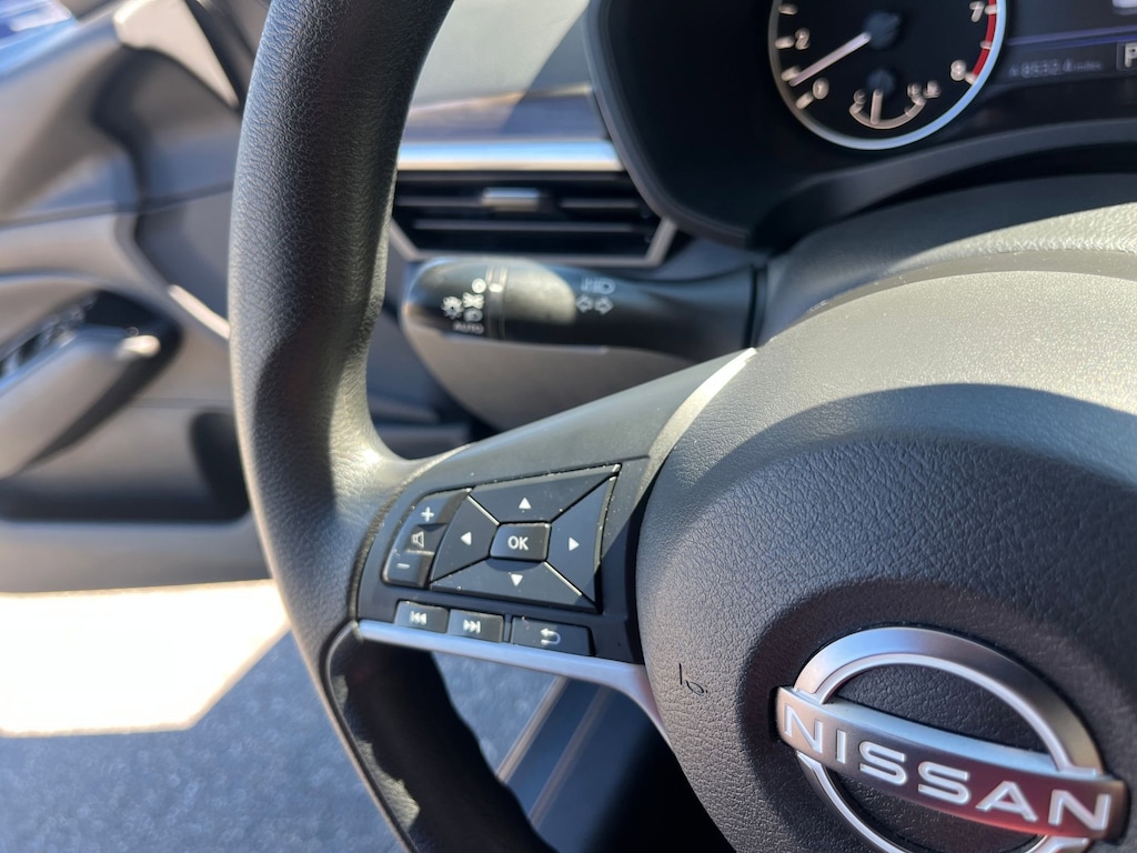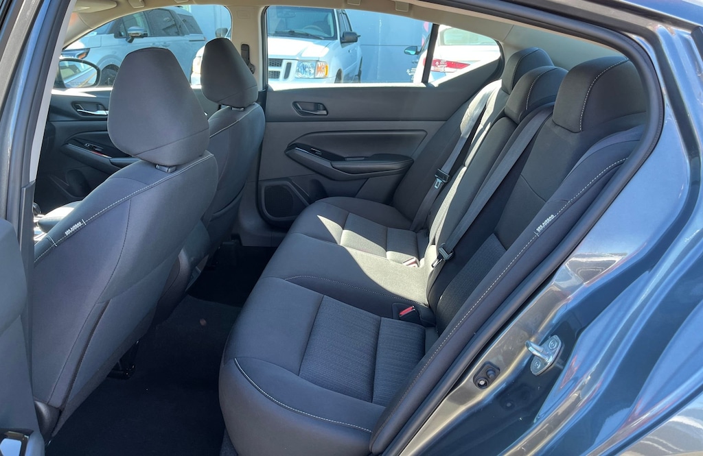 This vehicle comes equipped with : CVT with Xtronic, 17" Machined Alloy Wheels, 4-Wheel Disc Brakes, 6 Speakers, ABS brakes, Air Conditioning, Alloy wheels, AM/FM radio: SiriusXM, Auto High-beam Headlights, Blind Spot Warning, Brake assist, Bumpers: body-color, Cloth Seat Trim, Delay-off headlights, Driver door bin, Driver vanity mirror, Dual front impact airbags, Dual front side impact airbags, Electronic Stability Control, Four wheel independent suspension, Front anti-roll bar, Front Bucket Seats, Front Center Armrest, Front reading lights, Fully automatic headlights, Illuminated entry, Knee airbag, Low tire pressure warning, NissanConnect featuring Apple CarPlay and Android Auto, Occupant sensing airbag, Outside temperature display, Overhead airbag, Overhead console, Panic alarm, Passenger door bin, Passenger vanity mirror, Power door mirrors, Power driver seat, Power steering, Power windows, Radio data system, Radio: AM/FM Audio System, Rear anti-roll bar, Rear Parking Sensors, Rear reading lights, Rear seat center armrest, Rear side impact airbag, Rear window defroster, Remote keyless entry, Security system, Speed control, Speed-sensing steering, Speed-Sensitive Wipers, Split folding rear seat, Steering wheel mounted audio controls, Tachometer, Telescoping steering wheel, Tilt steering wheel, Traction control, Trip computer, and Variably intermittent wipers.