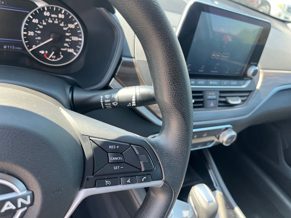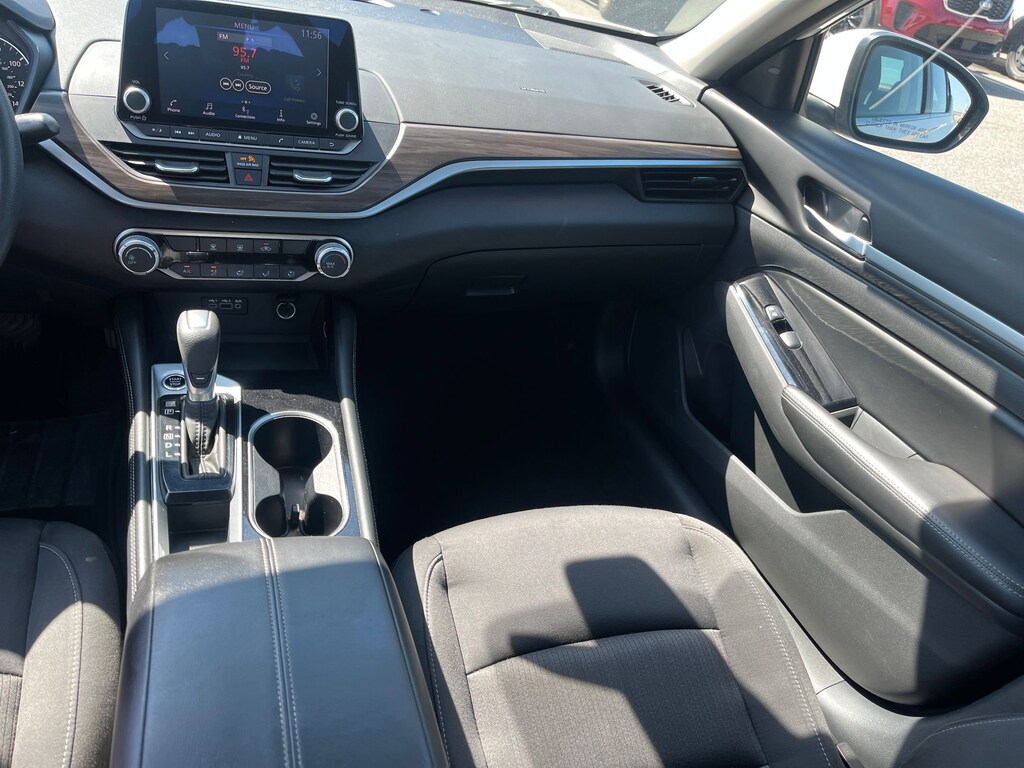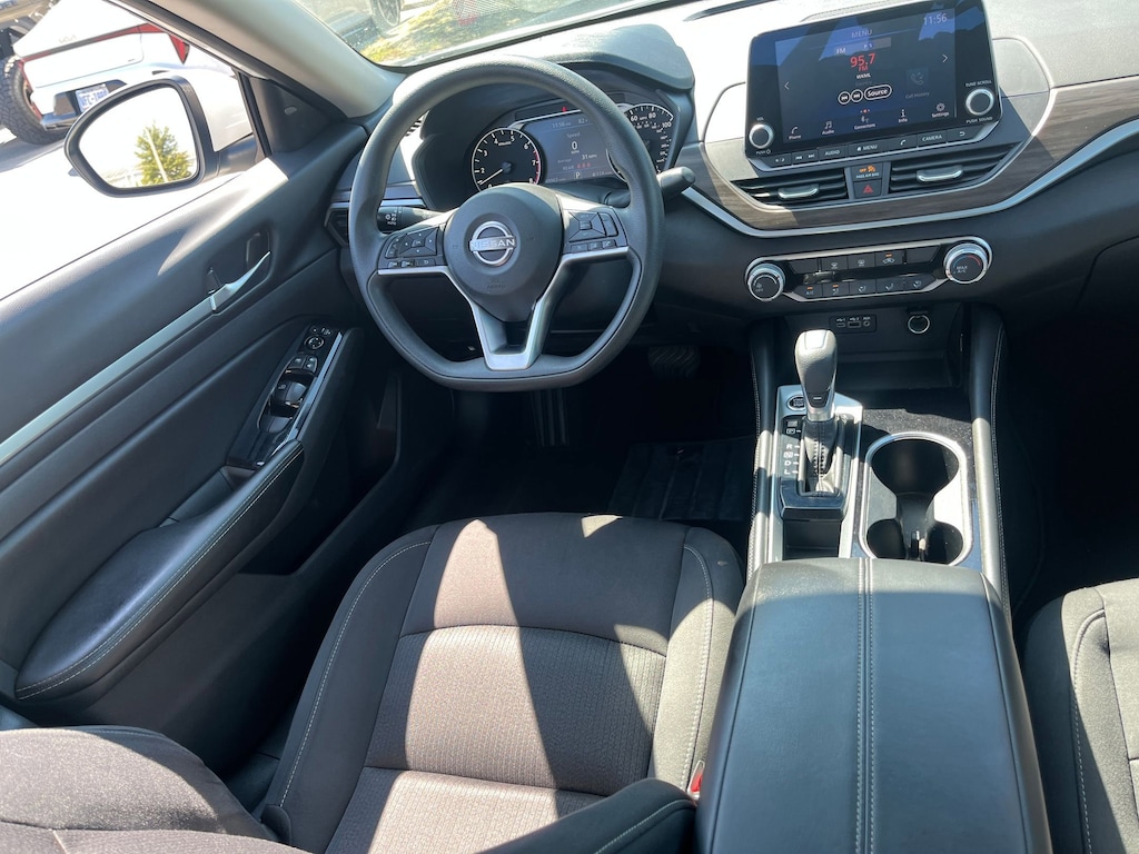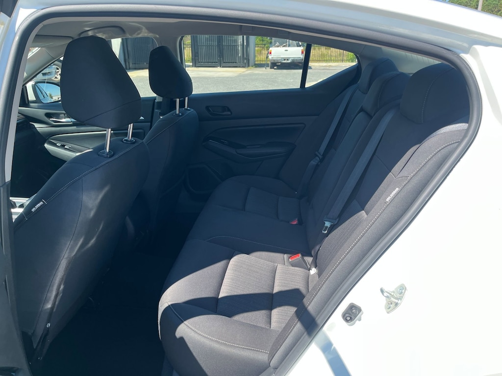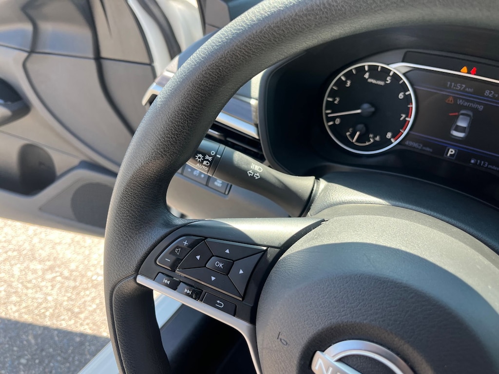 This vehicle comes equipped with : CVT with Xtronic, 17" Machined Alloy Wheels, 4-Wheel Disc Brakes, 6 Speakers, ABS brakes, Air Conditioning, Alloy wheels, AM/FM radio: SiriusXM, Auto High-beam Headlights, Blind Spot Warning, Brake assist, Bumpers: body-color, Cloth Seat Trim, Delay-off headlights, Driver door bin, Driver vanity mirror, Dual front impact airbags, Dual front side impact airbags, Electronic Stability Control, Four wheel independent suspension, Front anti-roll bar, Front Bucket Seats, Front Center Armrest, Front reading lights, Fully automatic headlights, Illuminated entry, Knee airbag, Low tire pressure warning, NissanConnect featuring Apple CarPlay and Android Auto, Occupant sensing airbag, Outside temperature display, Overhead airbag, Overhead console, Panic alarm, Passenger door bin, Passenger vanity mirror, Power door mirrors, Power driver seat, Power steering, Power windows, Radio data system, Radio: AM/FM Audio System, Rear anti-roll bar, Rear Parking Sensors, Rear reading lights, Rear seat center armrest, Rear side impact airbag, Rear window defroster, Remote keyless entry, Security system, Speed control, Speed-sensing steering, Speed-Sensitive Wipers, Split folding rear seat, Steering wheel mounted audio controls, Tachometer, Telescoping steering wheel, Tilt steering wheel, Traction control, Trip computer, and Variably intermittent wipers.