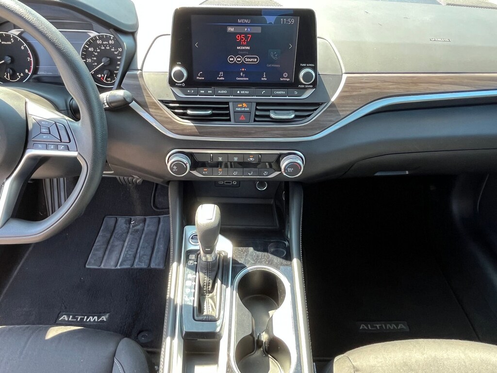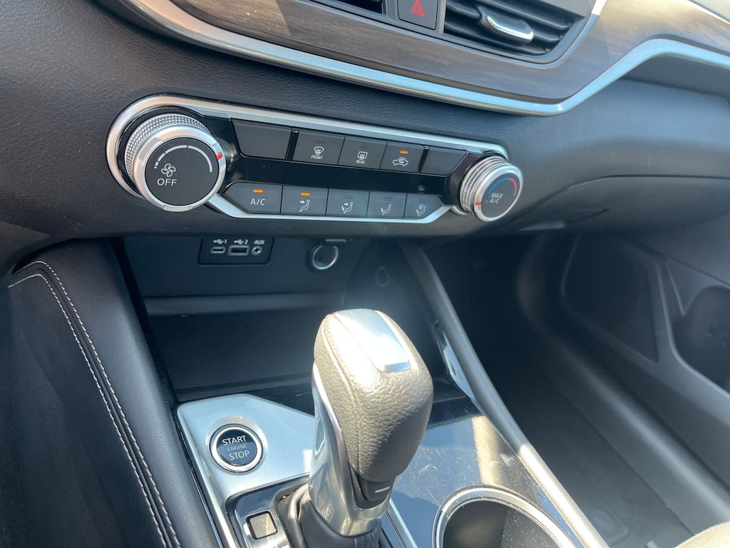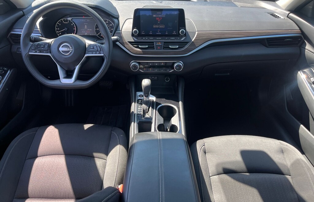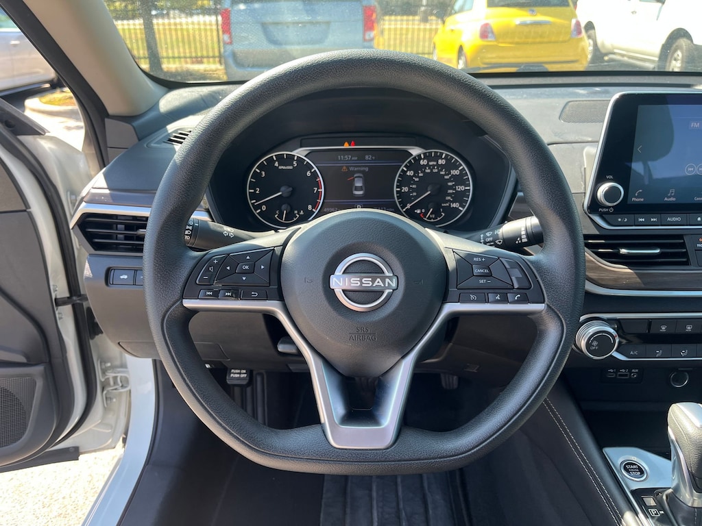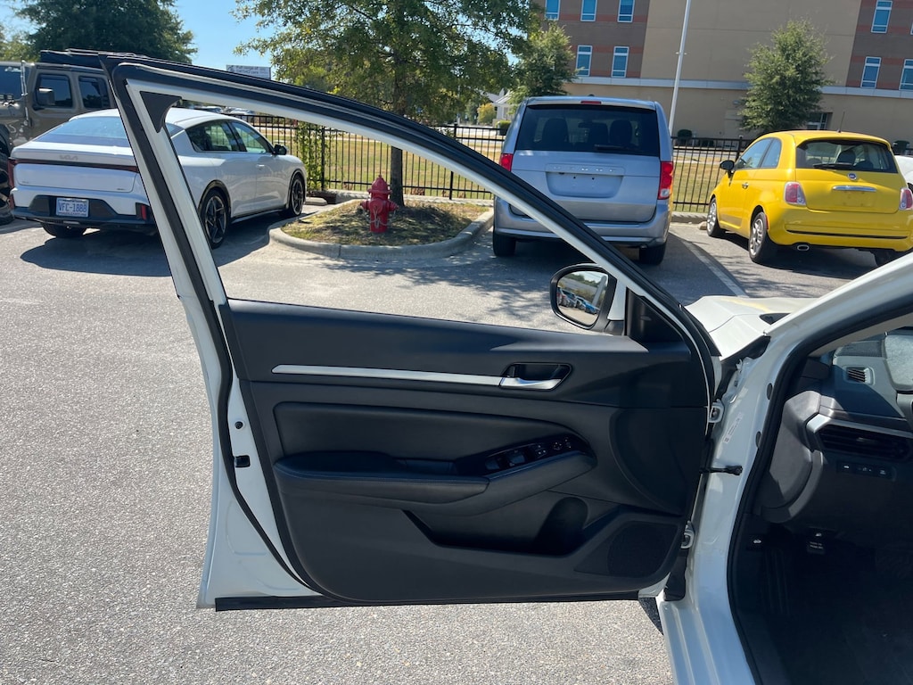 This vehicle comes equipped with : CVT with Xtronic, 17" Machined Alloy Wheels, 4-Wheel Disc Brakes, 6 Speakers, ABS brakes, Air Conditioning, Alloy wheels, AM/FM radio: SiriusXM, Auto High-beam Headlights, Blind Spot Warning, Brake assist, Bumpers: body-color, Cloth Seat Trim, Delay-off headlights, Driver door bin, Driver vanity mirror, Dual front impact airbags, Dual front side impact airbags, Electronic Stability Control, Four wheel independent suspension, Front anti-roll bar, Front Bucket Seats, Front Center Armrest, Front reading lights, Fully automatic headlights, Illuminated entry, Knee airbag, Low tire pressure warning, NissanConnect featuring Apple CarPlay and Android Auto, Occupant sensing airbag, Outside temperature display, Overhead airbag, Overhead console, Panic alarm, Passenger door bin, Passenger vanity mirror, Power door mirrors, Power driver seat, Power steering, Power windows, Radio data system, Radio: AM/FM Audio System, Rear anti-roll bar, Rear Parking Sensors, Rear reading lights, Rear seat center armrest, Rear side impact airbag, Rear window defroster, Remote keyless entry, Security system, Speed control, Speed-sensing steering, Speed-Sensitive Wipers, Split folding rear seat, Steering wheel mounted audio controls, Tachometer, Telescoping steering wheel, Tilt steering wheel, Traction control, Trip computer, and Variably intermittent wipers.