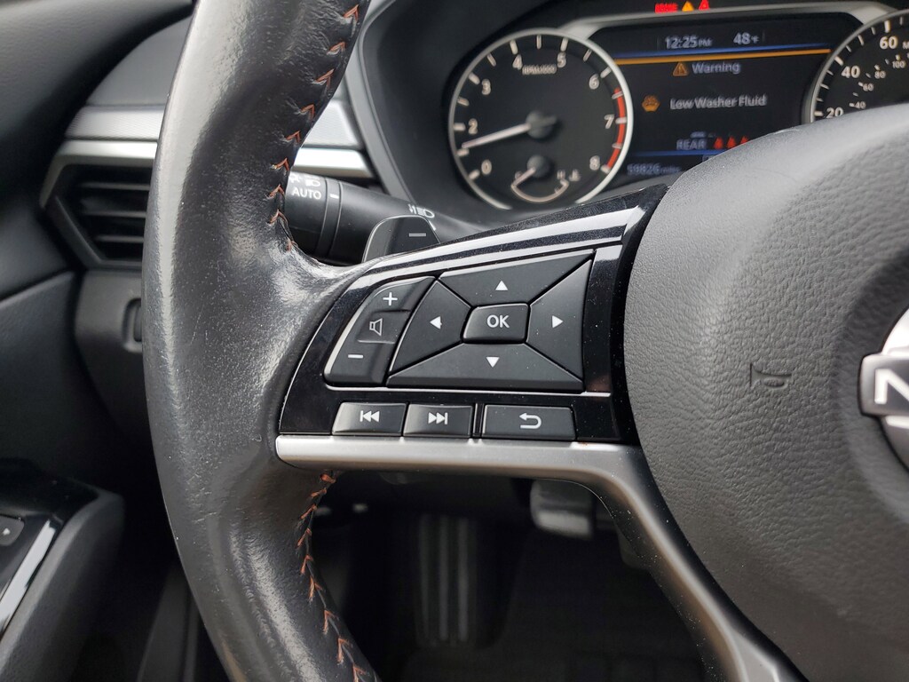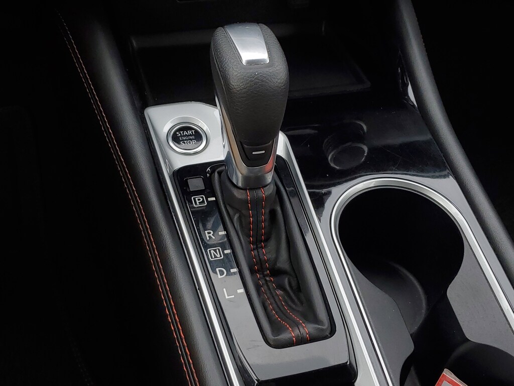 This Vehicle is nicely equipped with the following features: CVT with Xtronic, 6 Speakers, AM/FM radio: SiriusXM, Blind Spot Warning, Brake assist, Four wheel independent suspension, Front Bucket Seats, Front Center Armrest, Front Sport Bucket Seats, Low tire pressure warning, Occupant sensing airbag, Overhead airbag, Power driver seat, Power steering, Power windows, Radio data system, Radio: AM/FM Audio System, Rear anti-roll bar, Rear side impact airbag, Remote keyless entry, Split folding rear seat, Sport Seat Trim, Steering wheel mounted audio controls, 4-Wheel Disc Brakes, ABS brakes, Air Conditioning, Alloy wheels, Auto High-beam Headlights, Bumpers: body-color, Delay-off headlights, Driver door bin, Driver vanity mirror, Dual front impact airbags, Dual front side impact airbags, Electronic Stability Control, Front anti-roll bar, Front reading lights, Fully automatic headlights, Illuminated entry, Knee airbag, Leather Shift Knob, NissanConnect featuring Apple CarPlay and Android Auto, Outside temperature display, Overhead console, Panic alarm, Passenger door bin, Passenger vanity mirror, Power door mirrors, Rear Parking Sensors, Rear reading lights, Rear seat center armrest, Rear window defroster, Security system, Speed control, Speed-sensing steering, Speed-Sensitive Wipers, SR Floor Mats/Trunk Mat/Hideaway Nets, Tachometer, Telescoping steering wheel, Tilt steering wheel, Traction control, Trip computer, Variably intermittent wipers, and Wheels: 19 Sport Alloy.
