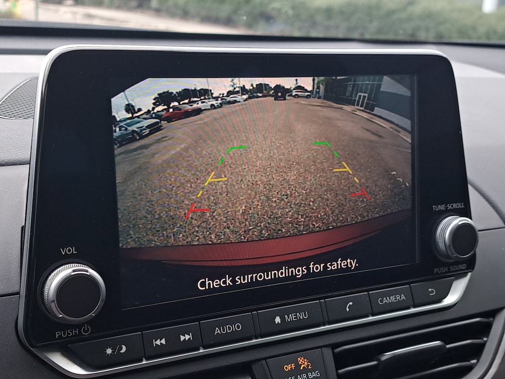 This Vehicle comes equipped with: CVT with Xtronic, 17" Machined Alloy Wheels, 4-Wheel Disc Brakes, 6 Speakers, ABS brakes, Air Conditioning, Alloy wheels, AM/FM radio: SiriusXM, Auto High-beam Headlights, Blind Spot Warning, Brake assist, Bumpers: body-color, Cloth Seat Trim, Delay-off headlights, Driver door bin, Driver vanity mirror, Dual front impact airbags, Dual front side impact airbags, Electronic Stability Control, Four wheel independent suspension, Front anti-roll bar, Front Bucket Seats, Front Center Armrest, Front reading lights, Fully automatic headlights, Illuminated entry, Knee airbag, Low tire pressure warning, NissanConnect featuring Apple CarPlay and Android Auto, Occupant sensing airbag, Outside temperature display, Overhead airbag, Overhead console, Panic alarm, Passenger door bin, Passenger vanity mirror, Power door mirrors, Power driver seat, Power steering, Power windows, Radio data system, Radio: AM/FM Audio System, Rear anti-roll bar, Rear Parking Sensors, Rear reading lights, Rear seat center armrest, Rear side impact airbag, Rear window defroster, Remote keyless entry, Security system, Speed control, Speed-sensing steering, Speed-Sensitive Wipers, Split folding rear seat, Steering wheel mounted audio controls, Tachometer, Telescoping steering wheel, Tilt steering wheel, Traction control, Trip computer, and Variably intermittent wipers.