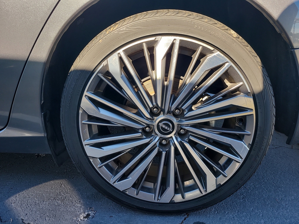 This Vehicle is nicely equipped with the following features: CVT with Xtronic, 19" Unique Alloy Wheels, 4-Wheel Disc Brakes, 9 Speakers, ABS brakes, Air Conditioning, Alloy wheels, AM/FM radio: SiriusXM, Auto High-beam Headlights, Automatic temperature control, Blind Spot Warning, Brake assist, Bumpers: body-color, Compass, Delay-off headlights, Driver door bin, Driver vanity mirror, Dual front impact airbags, Dual front side impact airbags, Electronic Stability Control, Emergency communication system: NissanConnect Services, Four wheel independent suspension, Front anti-roll bar, Front Bucket Seats, Front Center Armrest, Front dual zone A/C, Front reading lights, Fully automatic headlights, Heated door mirrors, Heated Front Bucket Seats, Heated front seats, Heated steering wheel, Illuminated entry, Knee airbag, Leather Shift Knob, Leather-Appointed Seat Trim, Low tire pressure warning, Navigation System, Occupant sensing airbag, Outside temperature display, Overhead airbag, Overhead console, Panic alarm, Passenger door bin, Passenger vanity mirror, Power door mirrors, Power driver seat, Power moonroof, Power passenger seat, Power steering, Power windows, Radio data system, Radio: AM/FM w/Bose Premium Sound System, Rear anti-roll bar, Rear Parking Sensors, Rear reading lights, Rear seat center armrest, Rear side impact airbag, Rear window defroster, Remote keyless entry, Security system, Speed control, Speed-sensing steering, Speed-Sensitive Wipers, Split folding rear seat, Steering wheel mounted audio controls, Tachometer, Telescoping steering wheel, Tilt steering wheel, Traction control, Trip computer, Turn signal indicator mirrors, and Variably intermittent wipers. 27/37 City/Highway MPG
