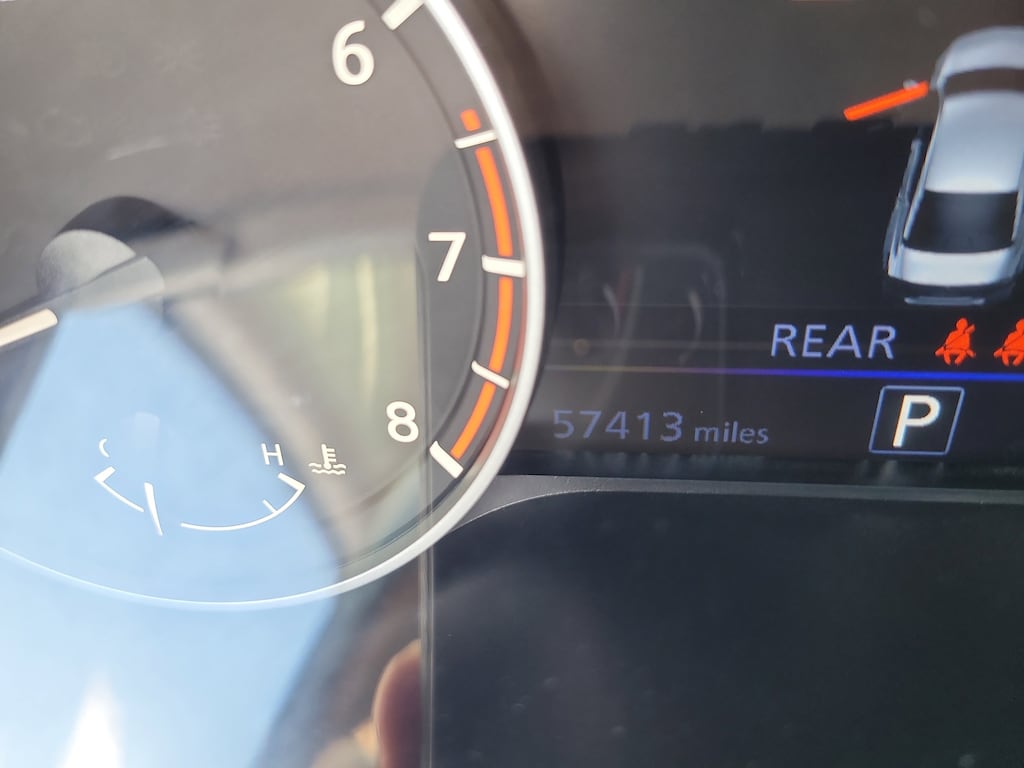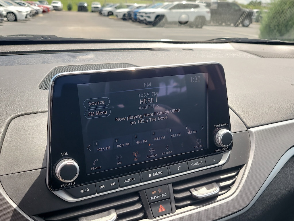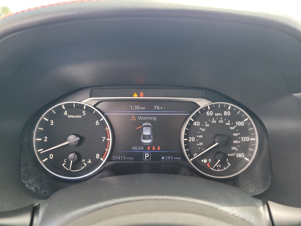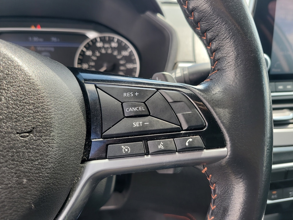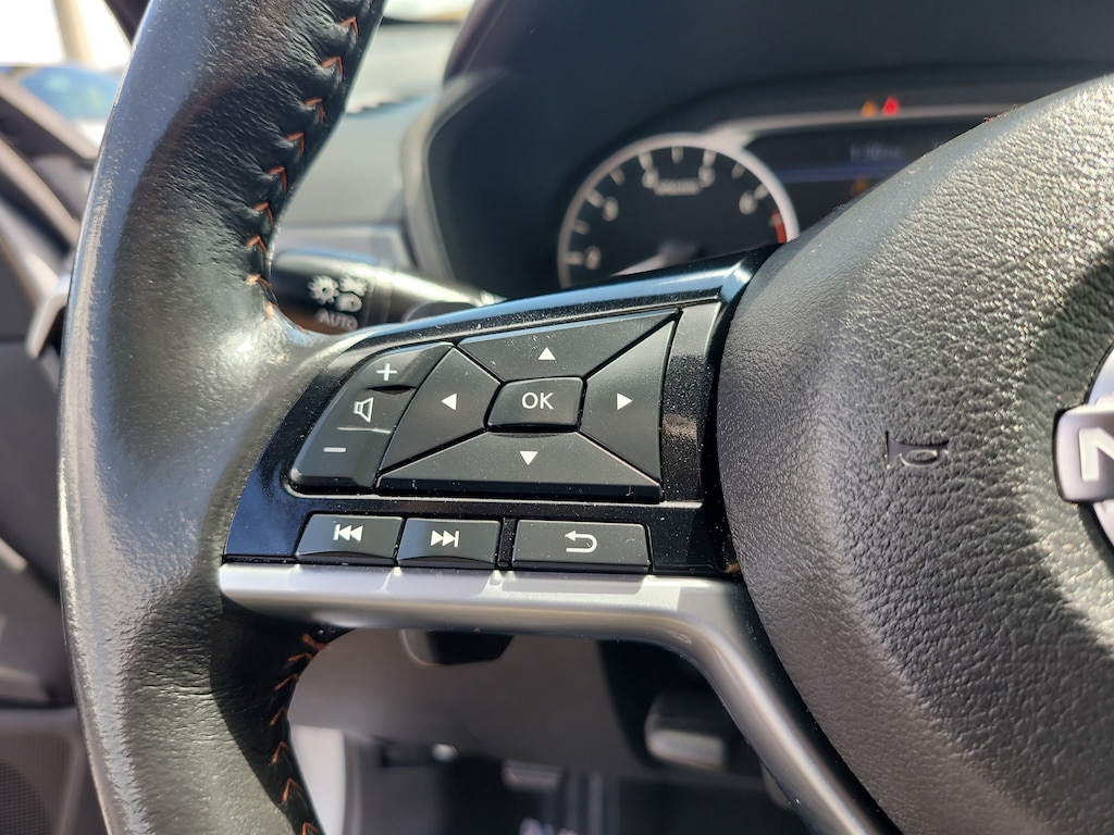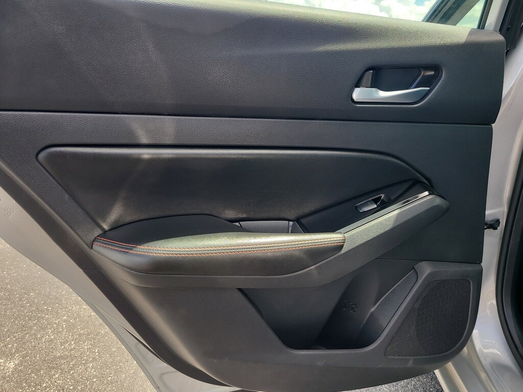 THIS VEHCILE INCLUDES THE FOLLOWING OPTIONS AND FEATURES: 4-Wheel Disc Brakes, 6 Speakers, ABS brakes, Air Conditioning, Alloy wheels, AM/FM radio: SiriusXM, Auto High-beam Headlights, Blind Spot Warning, Brake assist, Bumpers: body-color, Delay-off headlights, Driver door bin, Driver vanity mirror, Dual front impact airbags, Dual front side impact airbags, Electronic Stability Control, Four wheel independent suspension, Front anti-roll bar, Front Bucket Seats, Front Center Armrest, Front reading lights, Front Sport Bucket Seats, Fully automatic headlights, Illuminated entry, Knee airbag, Leather Shift Knob, Low tire pressure warning, NissanConnect featuring Apple CarPlay and Android Auto, Occupant sensing airbag, Outside temperature display, Overhead airbag, Overhead console, Panic alarm, Passenger door bin, Passenger vanity mirror, Power door mirrors, Power driver seat, Power steering, Power windows, Radio data system, Radio: AM/FM Audio System, Rear anti-roll bar, Rear Parking Sensors, Rear reading lights, Rear seat center armrest, Rear side impact airbag, Rear window defroster, Remote keyless entry, Security system, Speed control, Speed-sensing steering, Speed-Sensitive Wipers, Split folding rear seat, Sport Seat Trim, Steering wheel mounted audio controls, Tachometer, Telescoping steering wheel, Tilt steering wheel, Traction control, Trip computer, Variably intermittent wipers, and Wheels: 19" Sport Alloy.