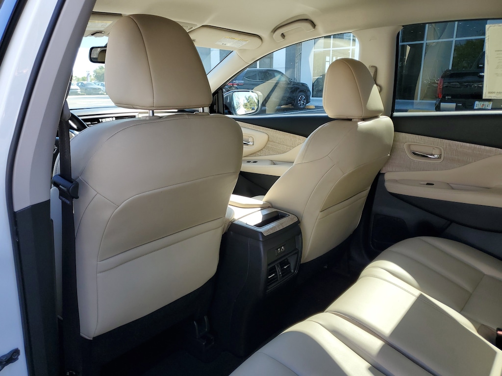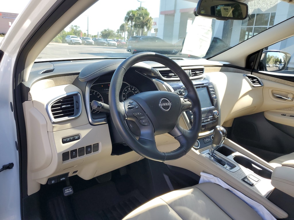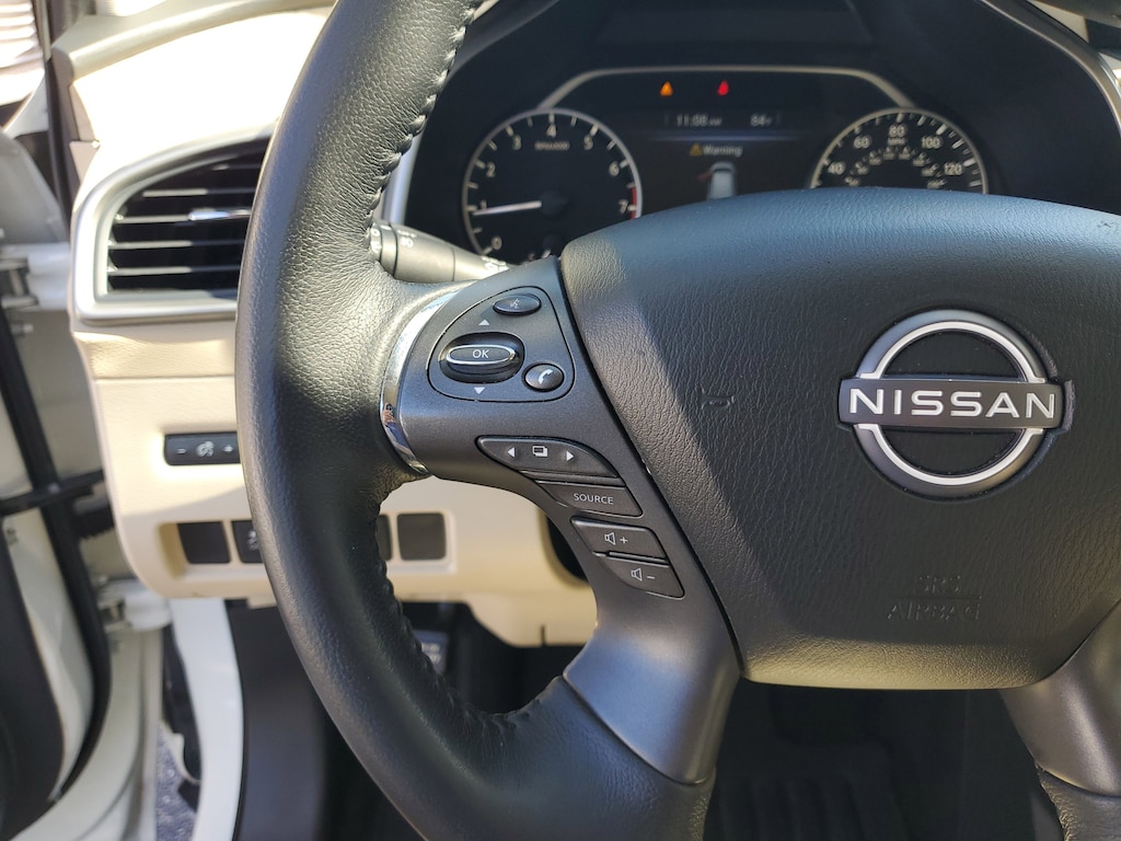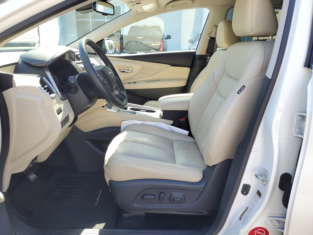 2023 Nissan Murano 3.5L V6 DOHC 24V Pearl White Tricoat CVT with Xtronic. This vehicle also comes equipped with: CVT with Xtronic, 4-Wheel Disc Brakes, 4.667 Axle Ratio, 6 Speakers, ABS brakes, Air Conditioning, Alloy wheels, AM/FM radio: SiriusXM, AM/FM/CD/MP3/WMA Audio System, Auto High-beam Headlights, Auto-dimming Rear-View mirror, Automatic temperature control, Blind Spot Warning, Brake assist, Bumpers: body-color, Carpeted Floor Mats & Carpeted Cargo Mat, CD player, Child-Seat-Sensing Airbag, Delay-off headlights, Driver door bin, Driver vanity mirror, Dual front impact airbags, Dual front side impact airbags, Electronic Stability Control, Four wheel independent suspension, Front anti-roll bar, Front Bucket Seats, Front Center Armrest, Front dual zone A/C, Front fog lights, Front reading lights, Fully automatic headlights, Heated door mirrors, Heated Front Bucket Seats, Heated front seats, Illuminated entry, Knee airbag, Leatherette-Appointed Seat Trim, Low tire pressure warning, NissanConnect featuring Apple CarPlay and Android Auto, Occupant sensing airbag, Outside temperature display, Overhead airbag, Overhead console, Panic alarm, Passenger door bin, Passenger vanity mirror, Power door mirrors, Power driver seat, Power passenger seat, Power steering, Power windows, Radio data system, Rear anti-roll bar, Rear reading lights, Rear seat center armrest, Rear side impact airbag, Rear window defroster, Rear window wiper, Remote keyless entry, Security system, Speed control, Speed-sensing steering, Speed-Sensitive Wipers, Split folding rear seat, Spoiler, Steering wheel mounted audio controls, Tachometer, Telescoping steering wheel, Tilt steering wheel, Traction control, Trip computer, Turn signal indicator mirrors, Variably intermittent wipers, and Wheels: 18 Machined Aluminum-Alloy. FWD CVT with Xtronic Priced below KBB Fair Purchase Price! 20/28 City/Highway MPG