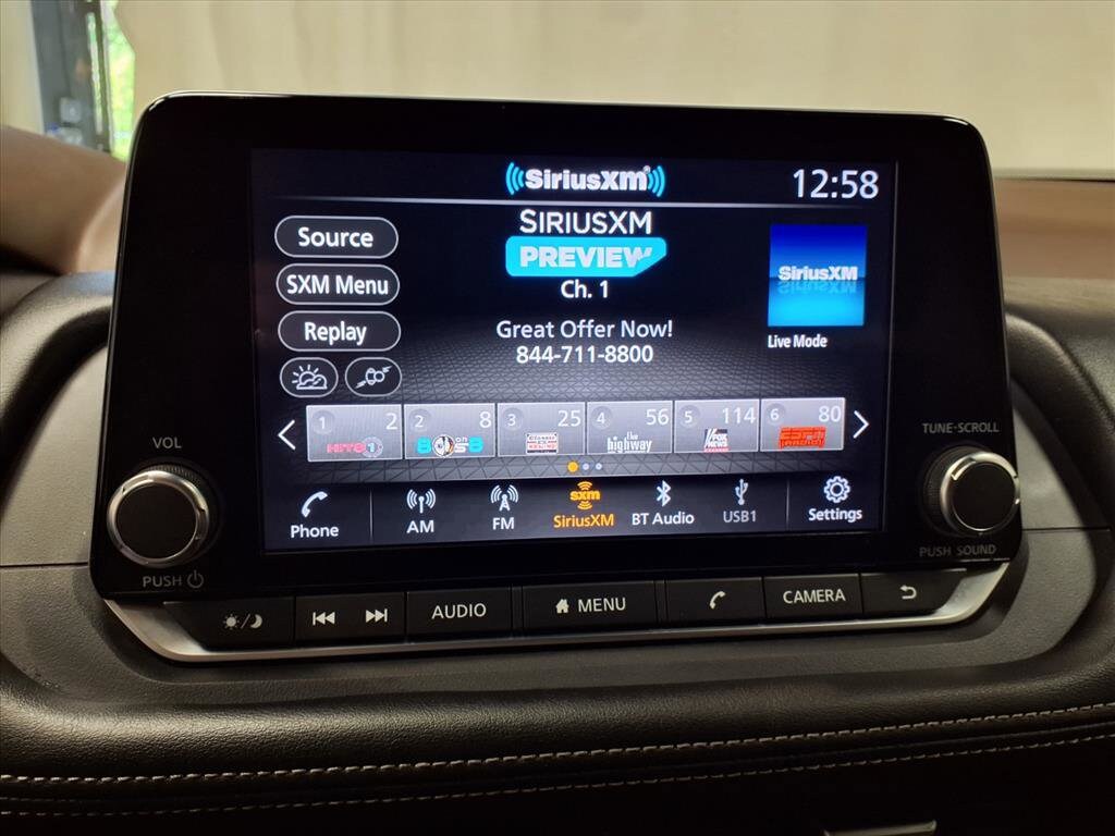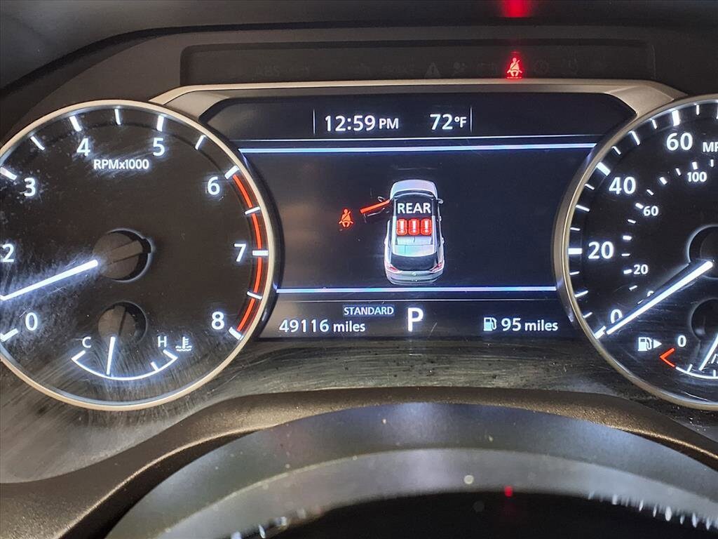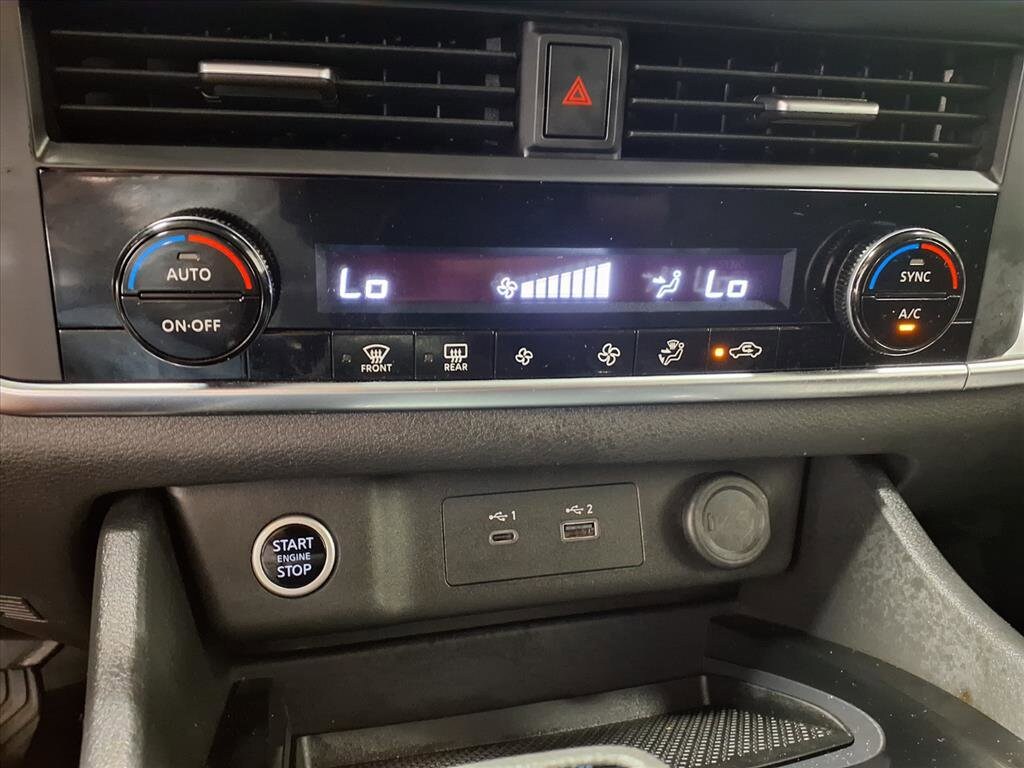 This vehicle comes equipped with: 18 Aluminum Alloy Wheels, 4-Wheel Disc Brakes, 5.604 Axle Ratio, 6 Speakers, ABS brakes, Air Conditioning, Alloy wheels, AM/FM Radio, AM/FM radio: SiriusXM, Auto High-beam Headlights, Automatic temperature control, Brake assist, Bumpers: body-color, Cloth Seat Trim, Delay-off headlights, Driver door bin, Driver vanity mirror, Dual front impact airbags, Dual front side impact airbags, Electronic Stability Control, Emergency communication system: NissanConnect Services, Four wheel independent suspension, Front anti-roll bar, Front Bucket Seats, Front Center Armrest, Front dual zone A/C, Front reading lights, Fully automatic headlights, Heated door mirrors, Illuminated entry, Knee airbag, Low tire pressure warning, NissanConnect featuring Apple CarPlay and Android Auto, Occupant sensing airbag, Outside temperature display, Overhead airbag, Overhead console, Panic alarm, Passenger door bin, Passenger vanity mirror, Power door mirrors, Power driver seat, Power steering, Power windows, Radio data system, Rear anti-roll bar, Rear Parking Sensors, Rear seat center armrest, Rear side impact airbag, Rear window defroster, Rear window wiper, Remote keyless entry, Speed control, Speed-Sensitive Wipers, Split folding rear seat, Spoiler, Steering wheel mounted audio controls, Tachometer, Telescoping steering wheel, Tilt steering wheel, Traction control, Trip computer, and Variably intermittent wipers.