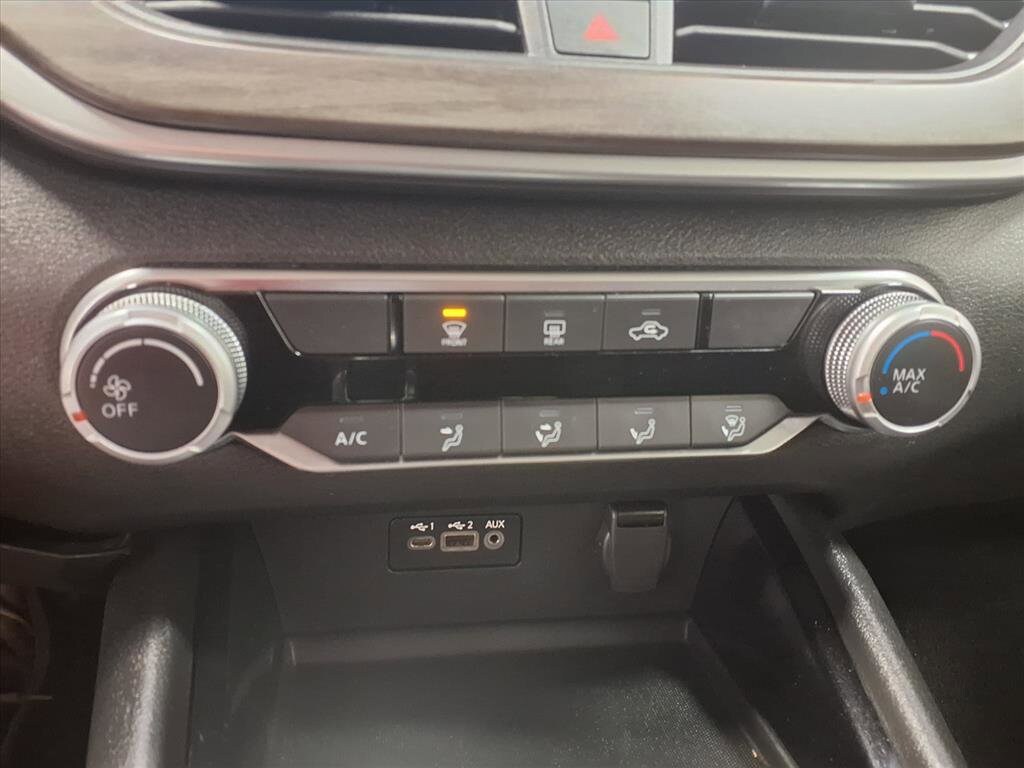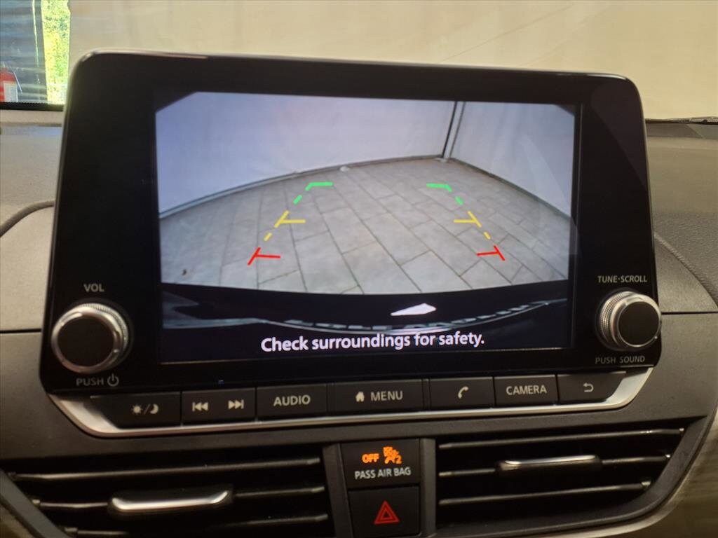 This vehicle comes equipped with: CVT with Xtronic, 17 Alloy Wheels, 4-Wheel Disc Brakes, 6 Speakers, ABS brakes, Air Conditioning, Alloy wheels, AM/FM radio: SiriusXM, Auto High-beam Headlights, Blind Spot Warning, Brake assist, Bumpers: body-color, Cloth Seat Trim, Delay-off headlights, Driver door bin, Driver vanity mirror, Dual front impact airbags, Dual front side impact airbags, Electronic Stability Control, Floor Mats/Trunk Mat/Hideaway Net, Four wheel independent suspension, Front anti-roll bar, Front Bucket Seats, Front Center Armrest, Front reading lights, Fully automatic headlights, Illuminated entry, Knee airbag, Low tire pressure warning, NissanConnect featuring Apple CarPlay, Occupant sensing airbag, Outside temperature display, Overhead airbag, Overhead console, Panic alarm, Passenger door bin, Passenger vanity mirror, Power door mirrors, Power driver seat, Power steering, Power windows, Radio data system, Radio: AM/FM Audio System, Rear anti-roll bar, Rear Parking Sensors, Rear reading lights, Rear seat center armrest, Rear side impact airbag, Rear window defroster, Remote keyless entry, Security system, Speed control, Speed-sensing steering, Speed-Sensitive Wipers, Split folding rear seat, Steering wheel mounted audio controls, Tachometer, Telescoping steering wheel, Tilt steering wheel, Traction control, Trip computer, and Variably intermittent wipers.