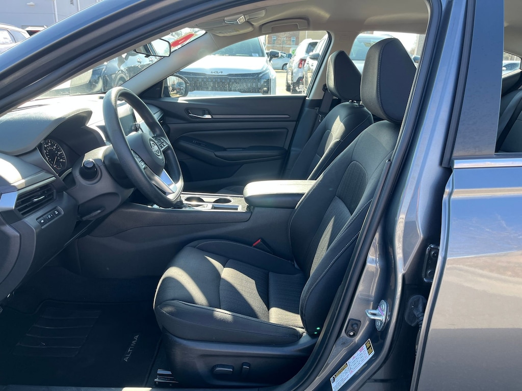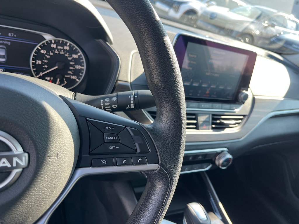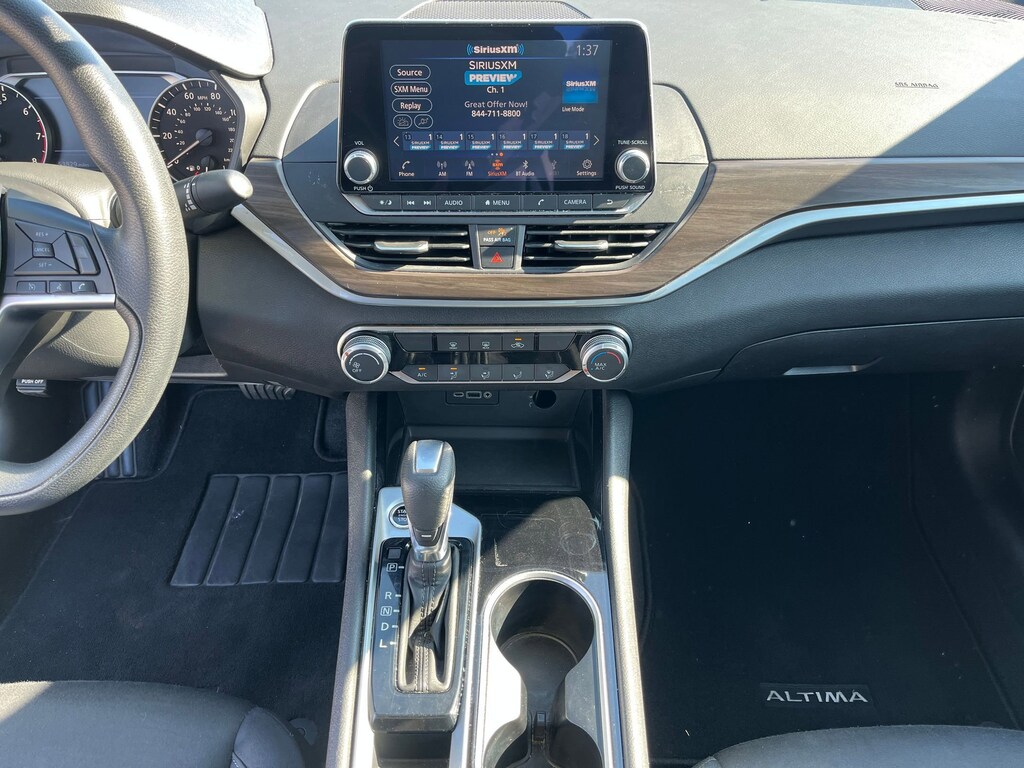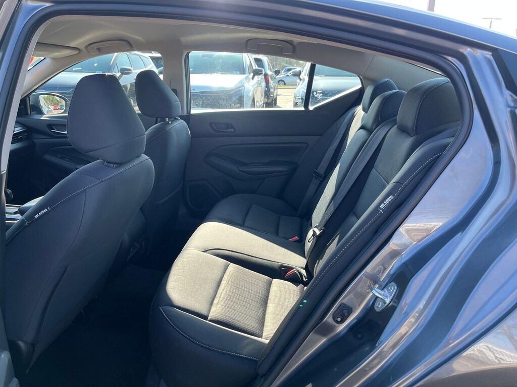 This vehicle comes equipped with : CVT with Xtronic, 17" Alloy Wheels, 4-Wheel Disc Brakes, 6 Speakers, ABS brakes, Air Conditioning, Alloy wheels, AM/FM radio: SiriusXM, Auto High-beam Headlights, Blind Spot Warning, Brake assist, Bumpers: body-color, Cloth Seat Trim, Delay-off headlights, Driver door bin, Driver vanity mirror, Dual front impact airbags, Dual front side impact airbags, Electronic Stability Control, Floor Mats/Trunk Mat/Hideaway Net, Four wheel independent suspension, Front anti-roll bar, Front Bucket Seats, Front Center Armrest, Front reading lights, Fully automatic headlights, Illuminated entry, Knee airbag, Low tire pressure warning, NissanConnect featuring Apple CarPlay, Occupant sensing airbag, Outside temperature display, Overhead airbag, Overhead console, Panic alarm, Passenger door bin, Passenger vanity mirror, Power door mirrors, Power driver seat, Power steering, Power windows, Radio data system, Radio: AM/FM Audio System, Rear anti-roll bar, Rear Parking Sensors, Rear reading lights, Rear seat center armrest, Rear side impact airbag, Rear window defroster, Remote keyless entry, Security system, Speed control, Speed-sensing steering, Speed-Sensitive Wipers, Split folding rear seat, Steering wheel mounted audio controls, Tachometer, Telescoping steering wheel, Tilt steering wheel, Traction control, Trip computer, and Variably intermittent wipers.