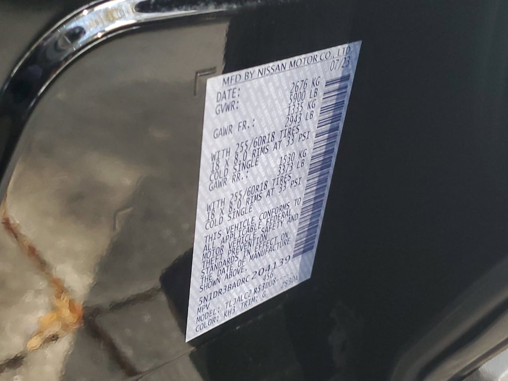 THIS VEHICLE IS EQUIPT WITH THE FOLLOWING FEATURES AND OPTIONS: 3rd row seats: bench, 4-Wheel Disc Brakes, 6 Speakers, ABS brakes, Air Conditioning, Alloy wheels, AM/FM radio: SiriusXM, Auto High-beam Headlights, Automatic temperature control, Axle Ratio: 4.334, Bench Seat Carpeted Floor Mats (Set of 4), Black Splash Guards (Set of 4), Brake assist, Bumpers: body-color, Cloth Seating Surfaces, Cross Bars, Delay-off headlights, Driver door bin, Driver vanity mirror, Dual front impact airbags, Dual front side impact airbags, Electronic Stability Control, Emergency communication system, Four wheel independent suspension, Front anti-roll bar, Front Bucket Seats, Front Center Armrest, Front dual zone A/C, Front reading lights, Fully automatic headlights, Heated door mirrors, Heated Front Bucket Seats, Heated front seats, Illuminated entry, Knee airbag, Leather steering wheel, Low tire pressure warning, NissanConnect featuring Apple CarPlay and Android Auto, Occupant sensing airbag, Outside temperature display, Overhead airbag, Overhead console, Panic alarm, Passenger door bin, Passenger vanity mirror, Power door mirrors, Power driver seat, Power steering, Power windows, Radio data system, Radio: AM/FM Audio System w/NissanConnect, Rear air conditioning, Rear anti-roll bar, Rear Parking Sensors, Rear reading lights, Rear seat center armrest, Rear side impact airbag, Rear window defroster, Rear window wiper, Reclining 3rd row seat, Remote keyless entry, Security system, Speed control, Speed-sensing steering, Split folding rear seat, Spoiler, Steering wheel mounted audio controls, Tachometer, Telescoping steering wheel, Tilt steering wheel, Traction control, Trip computer, Turn signal indicator mirrors, Variably intermittent wipers, and Wheels: 18 x 8J Painted Alloy.
