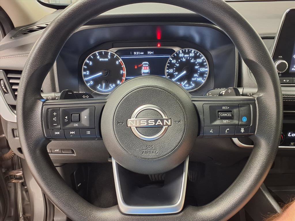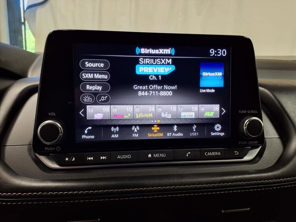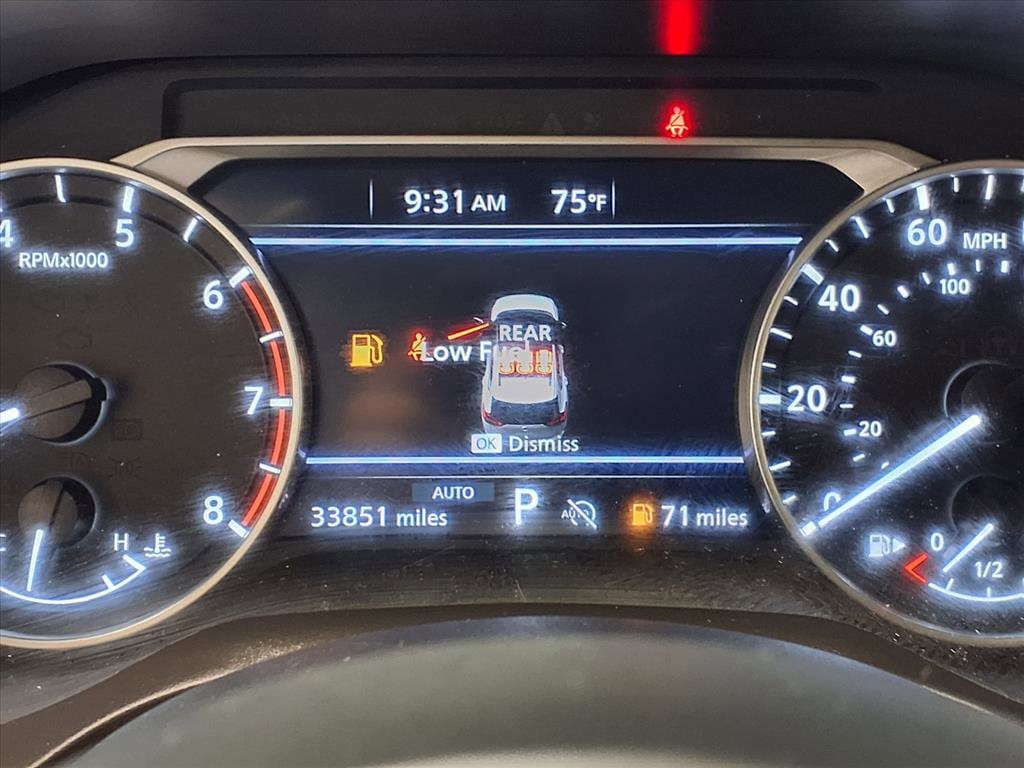 This vehicle comes equipped with: AWD, 4-Wheel Disc Brakes, 5.676 Axle Ratio, 6 Speakers, ABS brakes, Air Conditioning, Alloy wheels, AM/FM radio: SiriusXM, Auto High-beam Headlights, Automatic temperature control, Brake assist, Bumpers: body-color, Cloth Seat Trim w/Patterned Inserts, Delay-off headlights, Driver door bin, Driver vanity mirror, Dual front impact airbags, Dual front side impact airbags, Electronic Stability Control, Emergency communication system: NissanConnect Services, Four wheel independent suspension, Front anti-roll bar, Front Bucket Seats, Front Center Armrest, Front dual zone A/C, Front reading lights, Fully automatic headlights, Heated door mirrors, Illuminated entry, Knee airbag, Low tire pressure warning, NissanConnect featuring Apple CarPlay and Android Auto, Occupant sensing airbag, Outside temperature display, Overhead airbag, Overhead console, Panic alarm, Passenger door bin, Passenger vanity mirror, Power door mirrors, Power driver seat, Power Liftgate, Power steering, Power windows, Radio data system, Radio: AM/FM NissanConnect, Rear anti-roll bar, Rear Parking Sensors, Rear seat center armrest, Rear side impact airbag, Rear window defroster, Rear window wiper, Remote keyless entry, Speed control, Speed-Sensitive Wipers, Split folding rear seat, Spoiler, Steering wheel mounted audio controls, Tachometer, Telescoping steering wheel, Tilt steering wheel, Traction control, Trip computer, Variably intermittent wipers, and Wheels: 18 Dark Painted Machine Finished Alloy.
