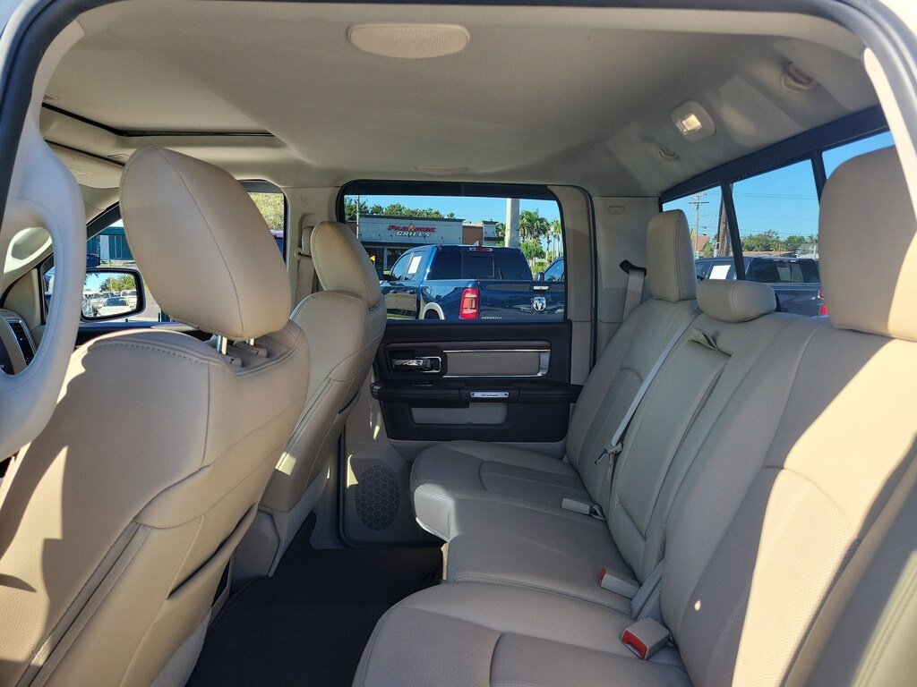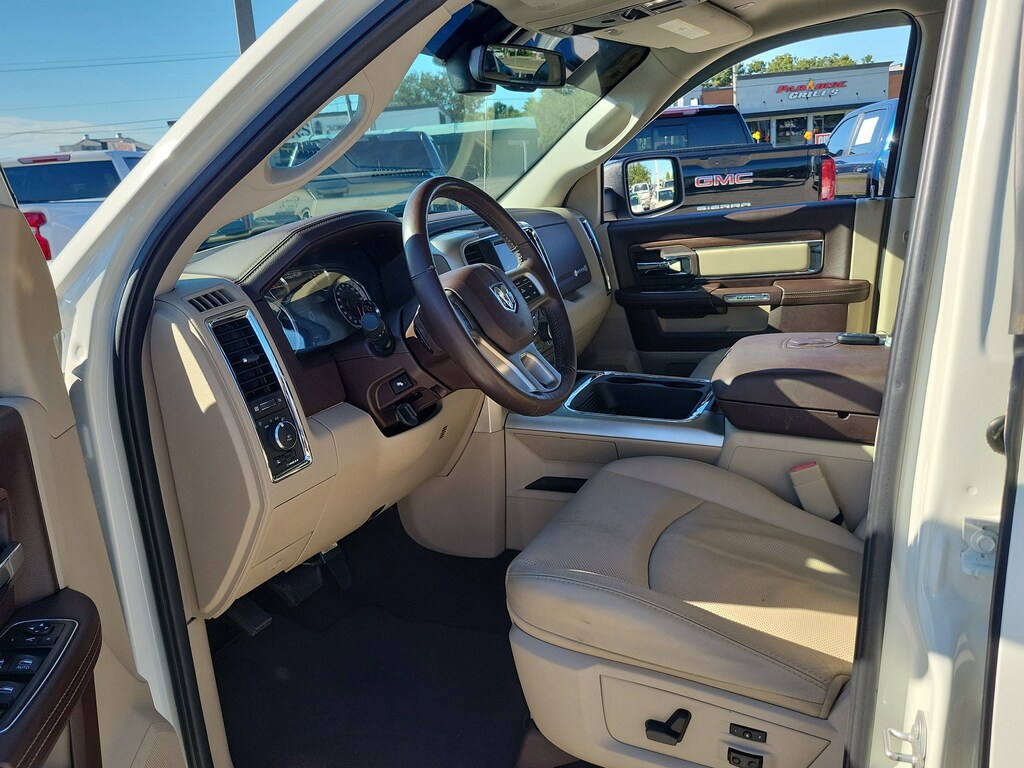 THIS VEHCILE INCLUDES THE FOLLOWING OPTIONS AND FEATURES: Cold Weather Group (Engine Block Heater and Winter Front Grille Cover), Convenience Group (Auto High Beam Headlamp Control, Keyless Enter-N-Go, Rain Sensitive Windshield Wipers, and Remote Proximity Keyless Entry), Quick Order Package 28H Laramie, 1-Yr SiriusXM Guardian Trial, 115V Auxiliary Power Outlet, 20" x 9" Chrome Clad Aluminum Wheels, 4-Wheel Disc Brakes, 5-Year SiriusXM Traffic Service, 5-Year SiriusXM Travel Link Service, 6 Speakers, 8.4" Touchscreen Display, 9 Alpine Speakers w/Subwoofer (DISC), ABS brakes, Active Grille Shutters, Adjustable pedals, Air Conditioning, Alloy wheels, AM/FM radio: SiriusXM, Apple CarPlay, Apple CarPlay/Android Auto, Audio Jack Input for Mobile Devices, Audio memory, Auto-dimming door mirrors, Auto-dimming Rear-View mirror, Automatic temperature control, Brake assist, Bumpers: chrome, Center Hub, Compass, Delay-off headlights, Driver door bin, Driver vanity mirror, Dual front impact airbags, Dual front side impact airbags, Electronic Shift, Electronic Stability Control, Emergency communication system: SiriusXM Guardian, Folding Flat Load Floor Storage, Front anti-roll bar, Front Center Armrest w/Storage, Front dual zone A/C, Front fog lights, Front reading lights, Front wheel independent suspension, Fully automatic headlights, Garage door transmitter, Google Android Auto, GPS Antenna Input, GPS Navigation, HD Radio, Heated door mirrors, Heated Front Seats, Heated front seats, Heated steering wheel, High Back Seats, Illuminated entry, Integrated Voice Command w/Bluetooth, Leather steering wheel, Leather Trim 40/20/40 Bench Seat, LED Bed Lighting, Low tire pressure warning, Media Hub (2 USB, AUX), Memory seat, Occupant sensing airbag, Outside temperature display, Overhead airbag, Overhead console, Panic alarm, ParkSense Front/Rear Park Assist System, ParkView Rear Back-Up Camera, Passenger door bin, Passenger vanity mirror, Pedal memory, Power 10-Way Memory Driver & 6-Way Passenger Seats, Power door mirrors, Power driver seat, Power passenger seat, Power steering, Power Sunroof, Power windows, Radio data system, Radio: Uconnect 4C Nav w/8.4" Display, Radio: Uconnect 4C w/8.4" Display, Rear 60/40 Split Folding Seat, Rear anti-roll bar, Rear seat center armrest, Rear step bumper, Remote keyless entry, Remote Start System, Remote USB Port, Security system, SiriusXM Satellite Radio, SiriusXM Traffic Plus, SiriusXM Travel Link, Speed control, Split folding rear seat, Steering wheel mounted audio controls, Tachometer, Tilt steering wheel, Tip Start, Traction control, Trailer Brake Control, Trip computer, Turn signal indicator mirrors, USB Host Flip, Variably intermittent wipers, Ventilated Front Seats, Ventilated front seats, and Voltmeter.