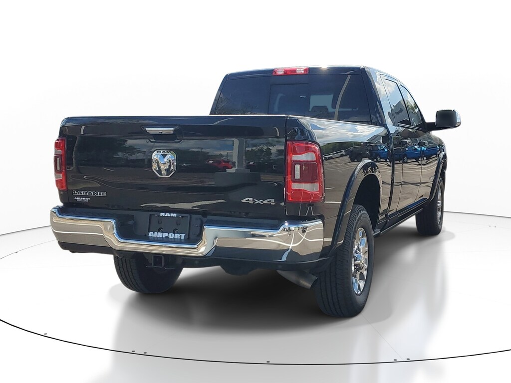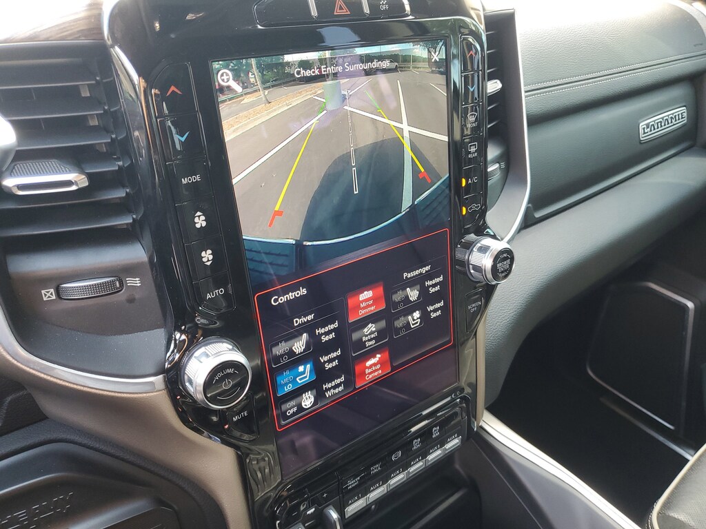 This Vehicle comes equipped with: Bed Utility Group (Deployable Bed Step, LED Bed Lighting, and Spray In Bedliner), Cold Weather Group (Engine Block Heater and Winter Front Grille Cover), Laramie Level 2 Equipment Group (1-Year SiriusXM Guardian Trial, 17 Speaker harman kardon Premium Sound, 5-Year SiriusXM Traffic Service, 5-Year SiriusXM Travel Link Service, 8.4" Touchscreen Display, Apple CarPlay, Auto High Beam Headlamp Control, Blind Spot & Cross Path Detection, Disassociated Touchscreen Display, Exterior Mirrors w/Memory, Foam Bottle Insert (Door Trim Panel), For Details Visit DriveUconnect.com, Google Android Auto, GPS Antenna Input, GPS Navigation, HD Radio, Heated Second Row Seats, Integrated Center Stack Radio, Integrated Voice Command w/Bluetooth, Media Hub w/2 Charge Only USBs, Mirror-Mounted Aux Reverse Lamps, Power Adjustable Convex Aux Mirrors, Power Adjustable Pedals w/Memory, Power Chrome Tow Mirrors w/Convex Spotter & Memory, Radio: Uconnect 4C Nav w/8.4" Display, Radio/Driver Seat/Mirrors/Pedals Memory, Rain Sensitive Windshield Wipers, Remote Tailgate Release, SiriusXM Satellite Radio, SiriusXM Traffic Plus, SiriusXM Travel Link, USB Host Flip, and Ventilated Front Seats), Quick Order Package 21H Laramie, #1 Seat Foam Cushion, 10 Speakers, 115V Auxiliary Rear Power Outlet, 12" Touchscreen Display, 2 Way Rear Headrest Seat, 220 Amp Alternator, 3.73 Axle Ratio, 4 Way Front Headrests, 4-Wheel Disc Brakes, 5th Wheel/Gooseneck Towing Prep Group, ABS brakes, Active Noise Control System, Adjustable pedals, Air Conditioning, Air Suspension Decal, Alloy wheels, AM/FM radio: SiriusXM, Apple CarPlay/Android Auto, Auto Level Rear Air Suspension, Auto-dimming Rear-View mirror, Automatic temperature control, Brake assist, Bumpers: chrome, Center Hub, Compass, Delay-off headlights, Driver door bin, Driver vanity mirror, Dual front impact airbags, Dual front side impact airbags, Electronic Stability Control, Electronically Controlled Throttle, Front anti-roll bar, Front Bumper Sight Shields, Front Center Armrest w/Storage, Front dual zone A/C, Front fog lights, Front reading lights, Front Seat Back Map Pockets, Fully automatic headlights, Garage door transmitter, Heated door mirrors, Heated Front Seats, Heated front seats, Heated Steering Wheel, Heated steering wheel, High Back Seats, I/P Mounted Auxiliary Switches, Illuminated entry, Leather steering wheel, Leather Trim 40/20/40 Bench Seat, Low tire pressure warning, Occupant sensing airbag, Outside temperature display, Overhead airbag, Overhead console, Panic alarm, ParkView Rear Back-Up Camera, Passenger door bin, Passenger vanity mirror, Power 8-Way Adjustable Passenger Seat, Power Adjust 8-Way Driver Seat, Power Deployable Running Boards, Power door mirrors, Power driver seat, Power passenger seat, Power steering, Power windows, Radio data system, Radio: Uconnect 12.0 w/Navigation, Radio: Uconnect 4 w/8.4" Display, Rear 60/40 Folding Seat, Rear reading lights, Rear seat center armrest, Rear step bumper, Rear Wheelhouse Liners, Rear window defroster, Remote keyless entry, Security system, SiriusXM w/360L, Speed control, Split folding rear seat, Steering wheel mounted audio controls, Tachometer, Tilt steering wheel, Tip Start, Traction control, Trailer Tire Pressure Monitoring System, Trip computer, Turn signal indicator mirrors, Variably intermittent wipers, Voltmeter, and Wheels: 18" x 8.0" Polished AluminuM.