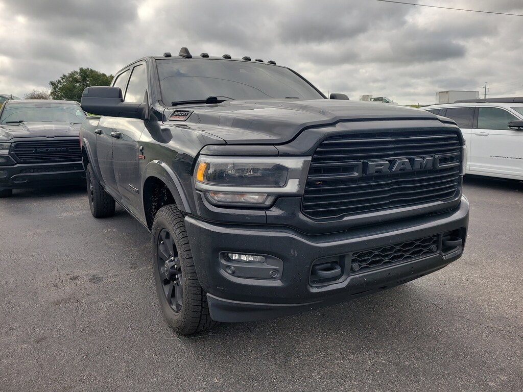 THIS VEHCILE INCLUDES THE FOLLOWING OPTIONS AND FEATURES: Laramie Level 2 Equipment Group (1-Year SiriusXM Guardian Trial, 17 Speaker harman kardon Premium Sound, 2nd Row In Floor Storage Bins, 5-Year SiriusXM Traffic Service, 5-Year SiriusXM Travel Link Service, 8.4 Touchscreen Display, Apple CarPlay, Auto High Beam Headlamp Control, Blind Spot & Cross Path Detection, Disassociated Touchscreen Display, Exterior Mirrors w/Memory, Foam Bottle Insert (Door Trim Panel), For Details Visit DriveUconnect.com, Google Android Auto, GPS Antenna Input, GPS Navigation, HD Radio, Heated Second Row Seats, Integrated Center Stack Radio, Integrated Voice Command w/Bluetooth, Media Hub w/2 Charge Only USBs, Mirror-Mounted Aux Reverse Lamps, Power Adjustable Convex Aux Mirrors, Power Adjustable Pedals w/Memory, Power Chrome Tow Mirrors w/Convex Spotter & Memory, Radio: Uconnect 4C Nav w/8.4 Display, Radio/Driver Seat/Mirrors/Pedals Memory, Rain Sensitive Windshield Wipers, Remote Tailgate Release, SiriusXM Satellite Radio, SiriusXM Traffic Plus, SiriusXM Travel Link, USB Host Flip, and Ventilated Front Seats), Night Edition (Black Exterior Mirrors, Black Exterior Truck Badging, Black Headlamp Bezels, Black Interior Accents, Black Ram Head Tailgate Badge, Black Tail Lamp Bezels, Black Wheel Center Hub, Body Color Door Handles, Body Color Grille Surround, Gloss Black Grille Billets/Accents, Painted Front Bumper, Painted Rear Bumper, Power Black Tow Mirrors w/Convex Spotter & Memory, and Wheels: 20 x 8.0 Black Painted Aluminum), Quick Order Package 21H Laramie, Safety Group (Adaptive Cruise Control w/Stop, Adaptive Steering System, Full Speed Forward Collision Warning Plus, and Lane Keep Assist), #1 Seat Foam Cushion, 10 Speakers, 115V Auxiliary Rear Power Outlet, 12 Touchscreen Display, 2 Way Rear Headrest Seat, 220 Amp Alternator, 3.73 Axle Ratio, 4 Way Front Headrests, 4-Wheel Disc Brakes, 5th Wheel/Gooseneck Towing Prep Group, ABS brakes, Active Noise Control System, Adjustable pedals, Air Conditioning, Air Suspension Decal, Alloy wheels, AM/FM radio: SiriusXM, Apple CarPlay/Android Auto, Auto Level Rear Air Suspension, Auto-dimming Rear-View mirror, Automatic temperature control, Brake assist, Bumpers: chrome, Center Hub, Clearance Lamps, Compass, CTR Stop Lamp w/Cargo View Camera, Delay-off headlights, Driver door bin, Driver vanity mirror, Dual front impact airbags, Dual front side impact airbags, Electronic Stability Control, Electronically Controlled Throttle, Folding Flat Load Floor Storage, Front anti-roll bar, Front Bumper Sight Shields, Front Center Armrest w/Storage, Front dual zone A/C, Front fog lights, Front reading lights, Front Seat Back Map Pockets, Fully automatic headlights, Garage door transmitter, Heated door mirrors, Heated Front Seats, Heated front seats, Heated Steering Wheel, Heated steering wheel, High Back Seats, Illuminated entry, Leather steering wheel, Leather Trim 40/20/40 Bench Seat, LED Bed Lighting, Low tire pressure warning, Manufacturer's Statement of Origin, Occupant sensing airbag, Outside temperature display, Overhead airbag, Overhead console, Panic alarm, ParkView Rear Back-Up Camera, Passenger door bin, Passenger vanity mirror, Power 8-Way Adjustable Passenger Seat, Power Adjust 8-Way Driver Seat, Power Deployable Running Boards, Power door mirrors, Power driver seat, Power passenger seat, Power steering, Power windows, Radio data system, Radio: Uconnect 12.0 w/Navigation, Radio: Uconnect 4 w/8.4 Display, Rear 60/40 Folding Seat, Rear reading lights, Rear seat center armrest, Rear step bumper, Rear window defroster, Remote keyless entry, Security system, SiriusXM w/360L, Speed control, Split folding rear seat, Spray In Bedliner, Steering wheel mounted audio controls, Tachometer, Tilt steering wheel, Tip Start, Tractio
