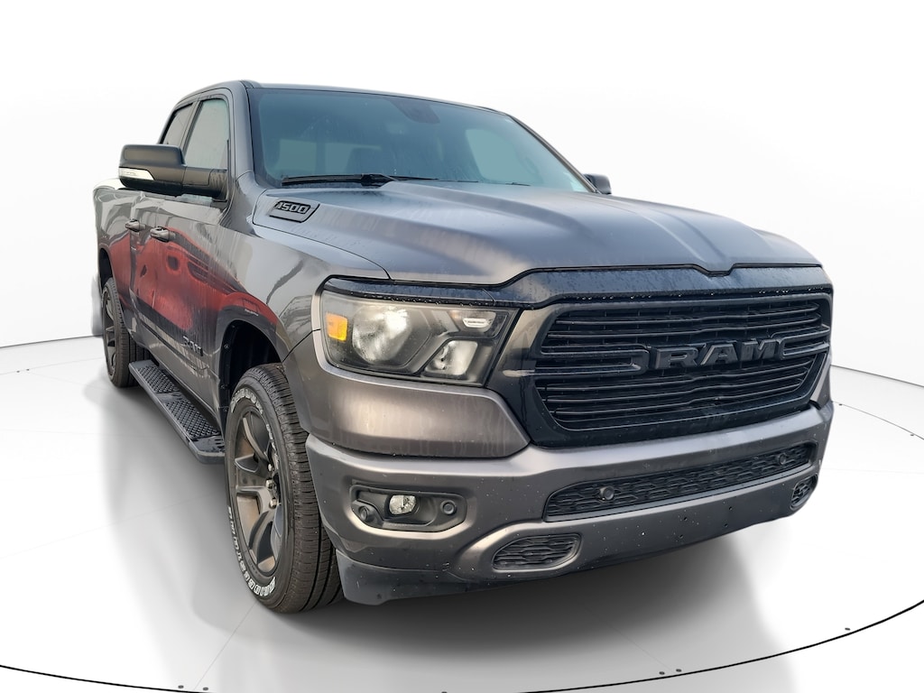 THIS VEHCILE INCLUDES THE FOLLOWING OPTIONS AND FEATURES: Bed Utility Group (MOPAR 4 Adjustable Cargo Tie-Down Hooks, MOPAR Deployable Bed Step, MOPAR Spray In Bedliner, and Pick-Up Box Lighting), Big Horn Level 2 Equipment Group (115V Auxiliary Power Outlet, 115V Auxiliary Rear Power Outlet, 400W Inverter, Air Conditioning ATC w/Dual Zone Control, Auto-Dimming Exterior Driver Mirror, Auto-Dimming Rear-View Mirror, Black Premium Power Mirrors, Class IV Receiver Hitch, Cluster 7.0" TFT Color Display, Exterior Mirrors Courtesy Lamps, Exterior Mirrors w/Supplemental Signals, Foam Bottle Insert (Door Trim Panel), For More Info, Call 800-643-2112, Glove Box Lamp, Heated Front Seats, Heated Steering Wheel, Media Hub w/2 Charge Only USBs, ParkSense Front/Rear Park Assist w/Stop, Power 4-Way Driver Lumbar Adjust, Power 8-Way Driver Seat, Power Adjustable Pedals, Power-Folding Mirrors, Rear Dome w/On/Off Switch Lamp, Rear Power Sliding Window, Rear Window Defroster, Security Alarm, SiriusXM Radio Service, Sun Visors w/Illuminated Vanity Mirrors, and Universal Garage Door Opener), Night Edition (3 Rear Seat Head Restraints, 4 Way Front Headrests, Anti-Spin Differential Rear Axle, Black Exterior Truck Badging, Black Headlamp Bezels, Black Interior Accents, Body Color Front Bumper, Body Color Rear Bumper w/Step Pads, Bucket Seats, Center Console Parts Module, Deluxe Cloth Bucket Seats, Dual Exhaust w/Black Tips, Exterior Mirrors w/Memory, Front Seat Back Map Pockets, Full Length Floor Console, Manual Adjust 4-Way Front Passenger Seat, Rear 60/40 Folding Seat, and Wheels: 20" x 9.0" Premium Paint/Polished), Quick Order Package 23Z Big Horn (Big Horn Badge), 3.21 Rear Axle Ratio, 4-Wheel Disc Brakes, 40/20/40 Split Bench Seat, 48V Belt Starter Generator, 6 Speakers, ABS brakes, Air Conditioning, Alloy wheels, AM/FM radio, Black Exterior Mirrors, Blind Spot & Cross Path Detection, Brake assist, Bumpers: chrome, Cloth Bench Seat, Compass, Delay-off headlights, Driver door bin, Dual front impact airbags, Dual front side impact airbags, Electronic Stability Control, Front anti-roll bar, Front Center Armrest w/Storage, Front fog lights, Front License Plate Bracket, Front reading lights, Front wheel independent suspension, Fully automatic headlights, GPS Antenna Input, Heated door mirrors, Illuminated entry, Integrated Voice Command w/Bluetooth, Leather steering wheel, LED Taillamps, Low tire pressure warning, Manufacturer's Statement of Origin, Mopar Black Tubular Side Steps, MOPAR Front & Rear Rubber Floor Mats, Occupant sensing airbag, Outside temperature display, Overhead airbag, Overhead console, Panic alarm, ParkView Rear Back-Up Camera, Passenger door bin, Passenger vanity mirror, Power door mirrors, Power steering, Power windows, Radio data system, Radio: Uconnect 3 w/5" Display, Radio: Uconnect 4 w/8.4" Display, Rear anti-roll bar, Rear seat center armrest, Rear step bumper, Remote keyless entry, Remote Start System, Speed control, Split folding rear seat, Steering wheel mounted audio controls, Tachometer, Telescoping steering wheel, Tilt steering wheel, Traction control, Trip computer, Variably intermittent wipers, Voltmeter, and Wheels: 18" x 8" Cast-Aluminum Painted.