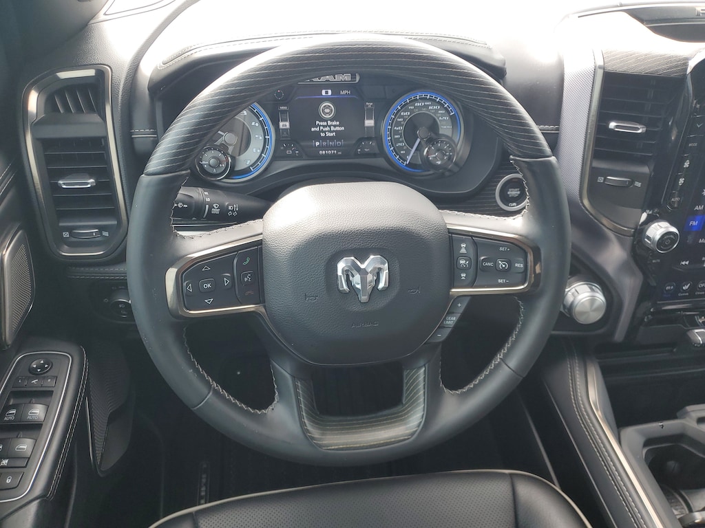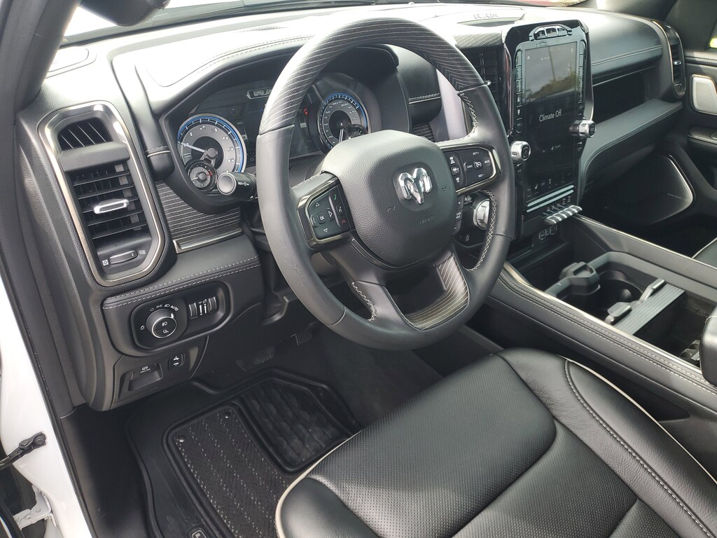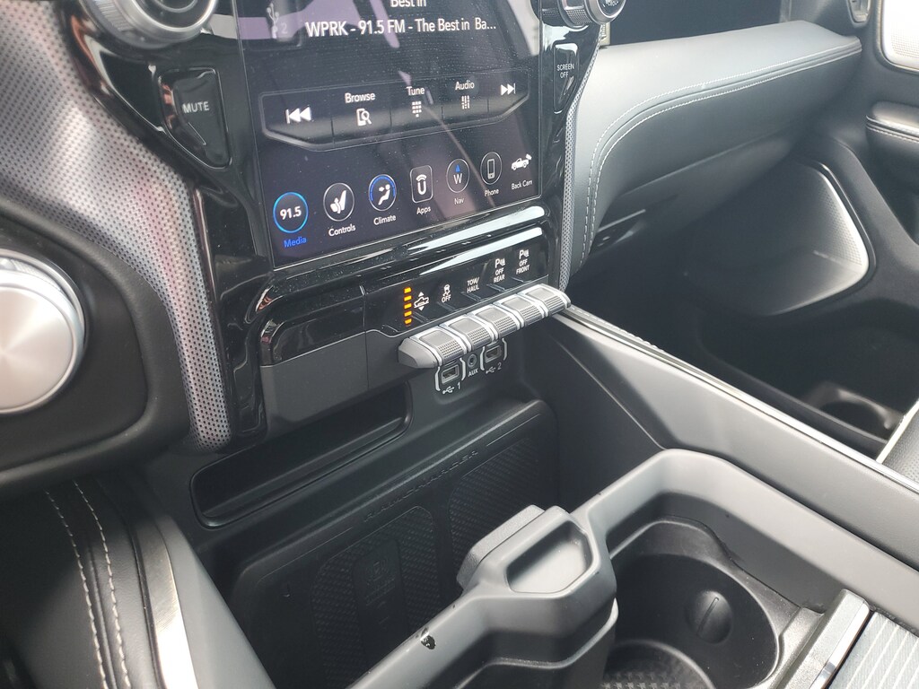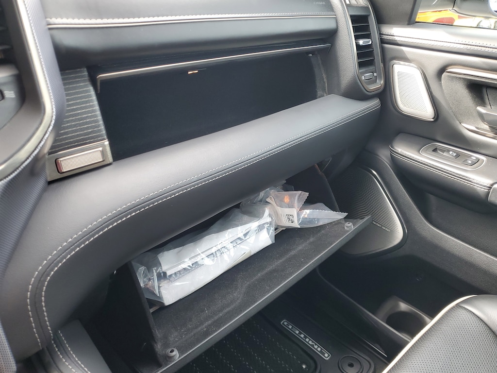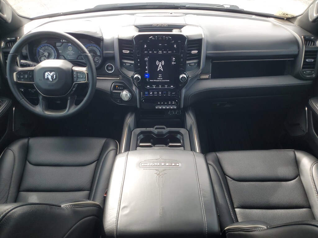 THIS VEHCILE INCLUDES THE FOLLOWING OPTIONS AND FEATURES: Bed Utility Group, Body Color Bumper Group, Limited Level 1 Equipment Group, Quick Order Package 27M Limited, 1-Yr SiriusXM Guardian Trial, 10 Speakers, 4-Wheel Disc Brakes, 48V Belt Starter Generator, 4G LTE Wi-Fi Hot Spot, ABS brakes, Adjustable pedals, Air Conditioning, Alloy wheels, AM/FM radio: SiriusXM with 360L, Anti-Spin Differential Rear Axle, Apple CarPlay, Apple CarPlay/Android Auto, Audio memory, Auto High-beam Headlights, Auto-dimming door mirrors, Auto-dimming Rear-View mirror, Auto-leveling suspension, Automatic temperature control, Bodyside moldings, Brake assist, Bumpers: chrome, Chrome Exterior Mirrors, Compass, Delay-off headlights, Disassociated Touchscreen Display, Dome Dual LED Reading Lamp, Driver door bin, Driver vanity mirror, Dual front impact airbags, Dual front side impact airbags, Dual-Pane Panoramic Sunroof, Electronic Stability Control, Emergency communication system: SiriusXM Guardian, For More Info, Call 800-643-2112, Front anti-roll bar, Front Bucket Seats, Front Center Armrest w/Storage, Front dual zone A/C, Front fog lights, Front reading lights, Front wheel independent suspension, Fully automatic headlights, Garage door transmitter, Genuine wood console insert, Genuine wood dashboard insert, Genuine wood door panel insert, Google Android Auto, GPS Antenna Input, GPS Navigation, HD Radio, Heated door mirrors, Heated front seats, Heated rear seats, Heated steering wheel, Illuminated entry, Integrated Center Stack Radio, Integrated Voice Command w/Bluetooth, Leather steering wheel, LED Dome/Reading Lamp, Low tire pressure warning, Memory seat, Navigation System, Occupant sensing airbag, Outside temperature display, Overhead airbag, Overhead console, Panic alarm, ParkView Rear Back-Up Camera, Passenger door bin, Passenger vanity mirror, Pedal memory, Power door mirrors, Power driver seat, Power passenger seat, Power steering, Power windows, Premium Leather Trimmed Bucket Seats, Radio data system, Radio: Uconnect 12 w/Navigation, Rain sensing wipers, Rear anti-roll bar, Rear seat center armrest, Rear step bumper, Rear window defroster, Remote keyless entry, Security system, SiriusXM Radio Service, SiriusXM Satellite Radio, SiriusXM Traffic Plus, SiriusXM Travel Link, Speed control, Split folding rear seat, Steering wheel mounted audio controls, Tachometer, Telescoping steering wheel, Tilt steering wheel, Traction control, Trip computer, Turn signal indicator mirrors, USB Host Flip, Variably intermittent wipers, Ventilated front seats, Voltmeter, and Wheels: 20" x 9" Polished w/Inserts.
