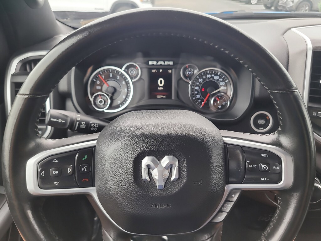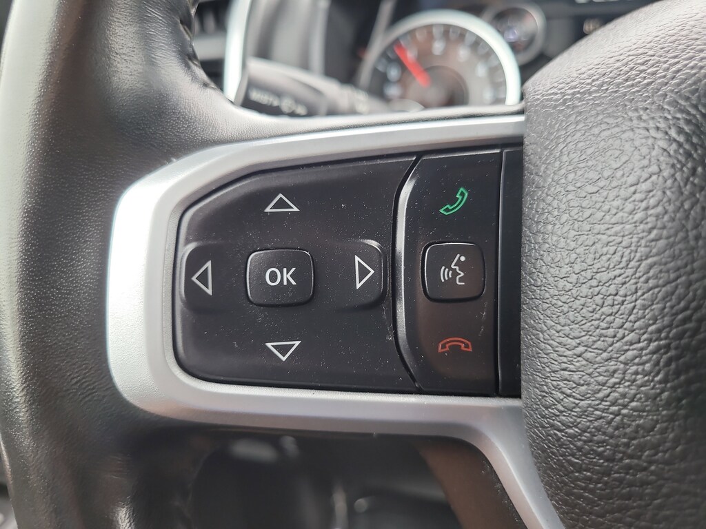 THIS VEHCILE INCLUDES THE FOLLOWING OPTIONS AND FEATURES: Big Horn Level An Equipment Group (DISC) (2nd Row In Floor Storage Bins, 4G LTE Wi-Fi Hot Spot, 8.4" Touchscreen Display, Apple CarPlay, Auto-Dimming Exterior Driver Mirror, Auto-Dimming Rear-View Mirror, Black Premium Power Mirrors (GUL), Bluetooth Handsfree Phone & Audio, Class IV Receiver Hitch, Cluster 3.5" TFT Color Display, Connectivity - US/Canada, Exterior Mirrors Courtesy Lamps, Exterior Mirrors w/Supplemental Signals, Foam Bottle Insert (Door Trim Panel), For More Info, Call 800-643-2112, Glove Box Lamp, Google Android Auto, Integrated Center Stack Radio, Power 2-Way Driver Lumbar Adjust, Power 8-Way Driver Seat, Power Adjustable Pedals, Radio: Uconnect 5 W w/8.4" Display, Rear Dome w/On/Off Switch Lamp, Rear Power Sliding Window, Rear Window Defroster, SiriusXM Radio Service, SiriusXM Satellite Radio, Sun Visors w/Illuminated Vanity Mirrors, Universal Garage Door Opener, and USB Host Flip), Quick Order Package 27Z Big Horn (Big Horn Badge), 3 Rear Seat Head Restraints, 3.21 Rear Axle Ratio, 4 Way Front Headrests, 4-Wheel Disc Brakes, 48V Belt Starter Generator, 6 Speakers, ABS brakes, Air Conditioning, Alloy wheels, AM/FM radio, Anti-Spin Differential Rear Axle, Black Exterior Mirrors, Brake assist, Bumpers: chrome, Cloth Bench Seat, Compass, Connected Services Delete Credit, Convex Wide-Angle Mirror Insert, Delay-off headlights, Driver door bin, Dual front impact airbags, Dual front side impact airbags, Electronic Stability Control, Emergency communication system: SiriusXM Guardian, Front anti-roll bar, Front Center Armrest w/Storage, Front fog lights, Front reading lights, Front Seat Back Map Pockets, Front wheel independent suspension, Fully automatic headlights, Global Telematics Box Module (TBM), GPS Antenna Input, Heated door mirrors, Heavy-Duty Engine Cooling, Illuminated entry, Integrated Voice Command w/Bluetooth, Leather steering wheel, Low tire pressure warning, MOPAR Front & Rear Rubber Floor Mats, Occupant sensing airbag, Outside temperature display, Overhead airbag, Overhead console, Panic alarm, ParkView Rear Back-Up Camera, Passenger door bin, Passenger vanity mirror, Power door mirrors, Power steering, Power windows, Radio data system, Radio: Uconnect 3 w/5" Display, Rear 60/40 Folding Seat, Rear anti-roll bar, Rear seat center armrest, Rear step bumper, Rear Underseat Compartment Storage (DISC), Rear Wheelhouse Liners, Remote keyless entry, Speed control, Split folding rear seat, Steering wheel mounted audio controls, Tachometer, Telescoping steering wheel, Tilt steering wheel, Traction control, Trip computer, Variably intermittent wipers, Voltmeter, Wheels: 18" x 8" Cast-Aluminum Painted, and Wheels: 20" x 9" Aluminum Chrome Clad (WRK).