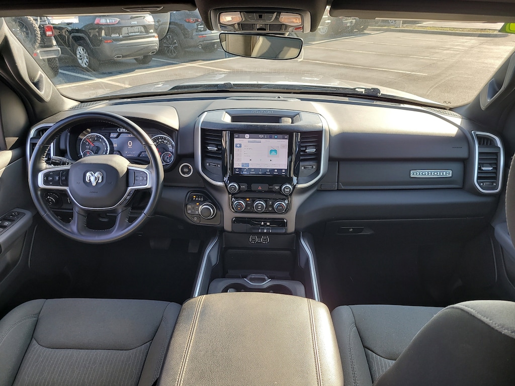 THIS VEHCILE INCLUDES THE FOLLOWING OPTIONS AND FEATURES: Big Horn Level 1 Equipment Group (2nd Row In Floor Storage Bins, 4G LTE Wi-Fi Hot Spot, 8.4" Touchscreen Display, Apple CarPlay, Auto-Dimming Exterior Driver Mirror, Auto-Dimming Rear-View Mirror, Black Exterior Mirrors, Black Premium Power Mirrors, Bluetooth Handsfree Phone & Audio, Class IV Receiver Hitch, Cluster 3.5" TFT Color Display, Connectivity - US/Canada, Convex Wide-Angle Mirror Insert, Exterior Mirrors Courtesy Lamps, Exterior Mirrors w/Heating Element, Exterior Mirrors w/Supplemental Signals, For Details, Visit DriveUconnect.com, Global Telematics Box Module (TBM), Glove Box Lamp, Google Android Auto, GPS Antenna Input, Integrated Center Stack Radio, Power 2-Way Driver Lumbar Adjust, Power 8-Way Driver Seat, Power Adjustable Pedals, Power-Folding Mirrors, Radio: Uconnect 5 W w/8.4" Display, Rear Dome w/On/Off Switch Lamp, Rear Power Sliding Window, Rear Window Defroster, SiriusXM Radio Service, SiriusXM Satellite Radio, Sun Visors w/Illuminated Vanity Mirrors, Universal Garage Door Opener, and USB Host Flip), Protection Group (Tow Hooks), Quick Order Package 27Z Big Horn (Big Horn Badge), 3 Rear Seat Head Restraints, 3.21 Rear Axle Ratio, 4 Way Front Headrests, 4-Wheel Disc Brakes, 48V Belt Starter Generator, 6 Speakers, ABS brakes, Air Conditioning, Air Conditioning ATC w/Dual Zone Control, All R1 High Radios, All Radio Equipped Vehicles, Alloy wheels, AM/FM radio, Anti-Spin Differential Rear Axle, Brake assist, Bumpers: chrome, Cloth Bench Seat, Cluster 7.0" TFT Color Display, Compass, Connected Travel & Traffic Services, Delay-off headlights, Disassociated Touchscreen Display, Driver door bin, Dual front impact airbags, Dual front side impact airbags, Electronic Stability Control, Emergency communication system: SiriusXM Guardian, Front anti-roll bar, Front Center Armrest w/Storage, Front fog lights, Front reading lights, Front Seat Back Map Pockets, Front wheel independent suspension, Fully automatic headlights, GPS Navigation, HD Radio, Heated door mirrors, Heavy-Duty Engine Cooling, Illuminated entry, Integrated Voice Command w/Bluetooth, Leather steering wheel, Low tire pressure warning, MOPAR Front & Rear Rubber Floor Mats, Occupant sensing airbag, Outside temperature display, Overhead airbag, Overhead console, Panic alarm, ParkView Rear Back-Up Camera, Passenger door bin, Passenger vanity mirror, Power door mirrors, Power steering, Power windows, Radio data system, Radio: Uconnect 3 w/5" Display, Radio: Uconnect 5 Nav w/8.4" Display, Rear 60/40 Folding Seat, Rear anti-roll bar, Rear seat center armrest, Rear step bumper, Remote keyless entry, SiriusXM w/360L, Speed control, Split folding rear seat, Steering wheel mounted audio controls, Tachometer, Telescoping steering wheel, Tilt steering wheel, Traction control, Trip computer, Variably intermittent wipers, Voltmeter, Wheels: 18" x 8" Cast-Aluminum Painted, and Wheels: 20" x 9" Aluminum Chrome Clad (WRK).