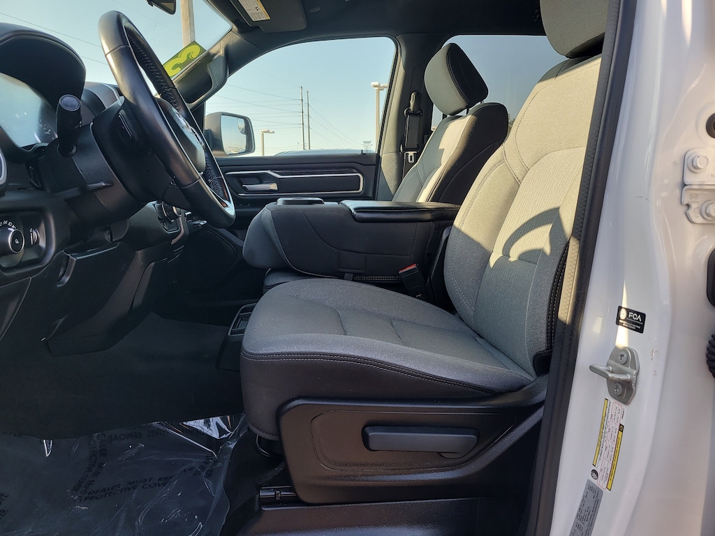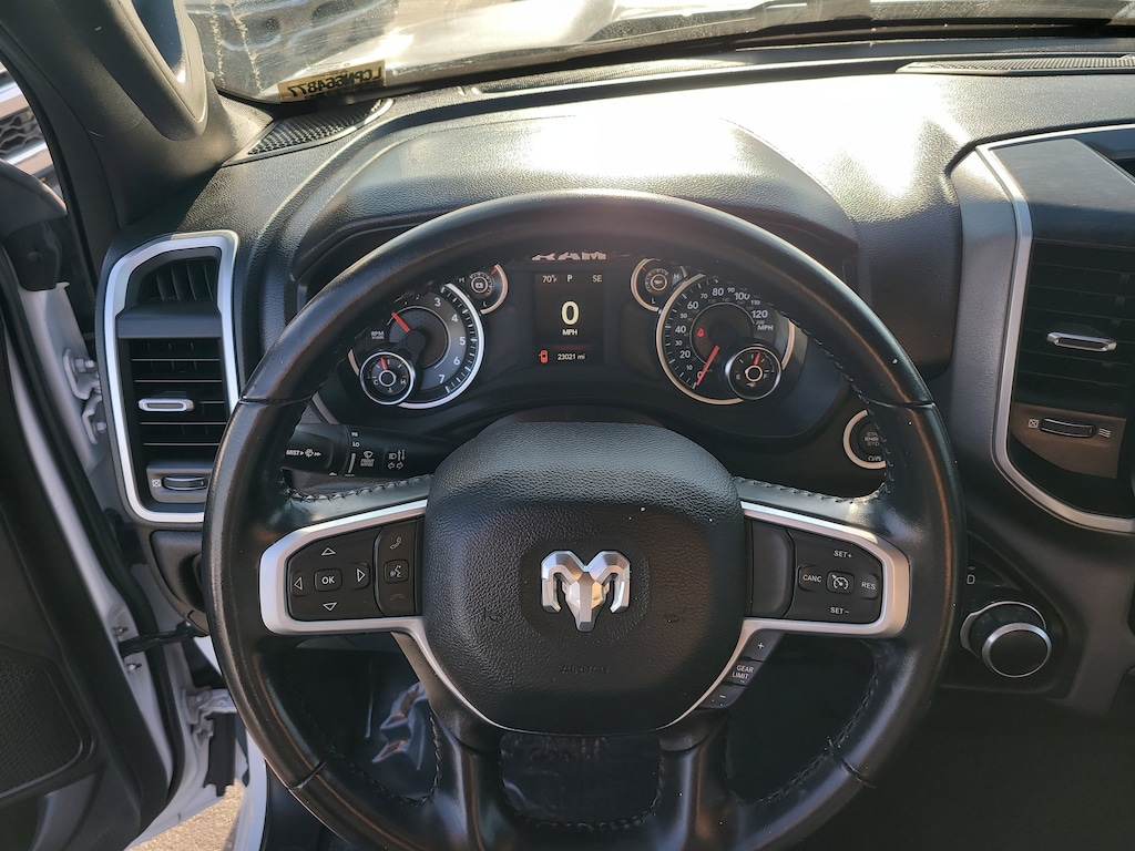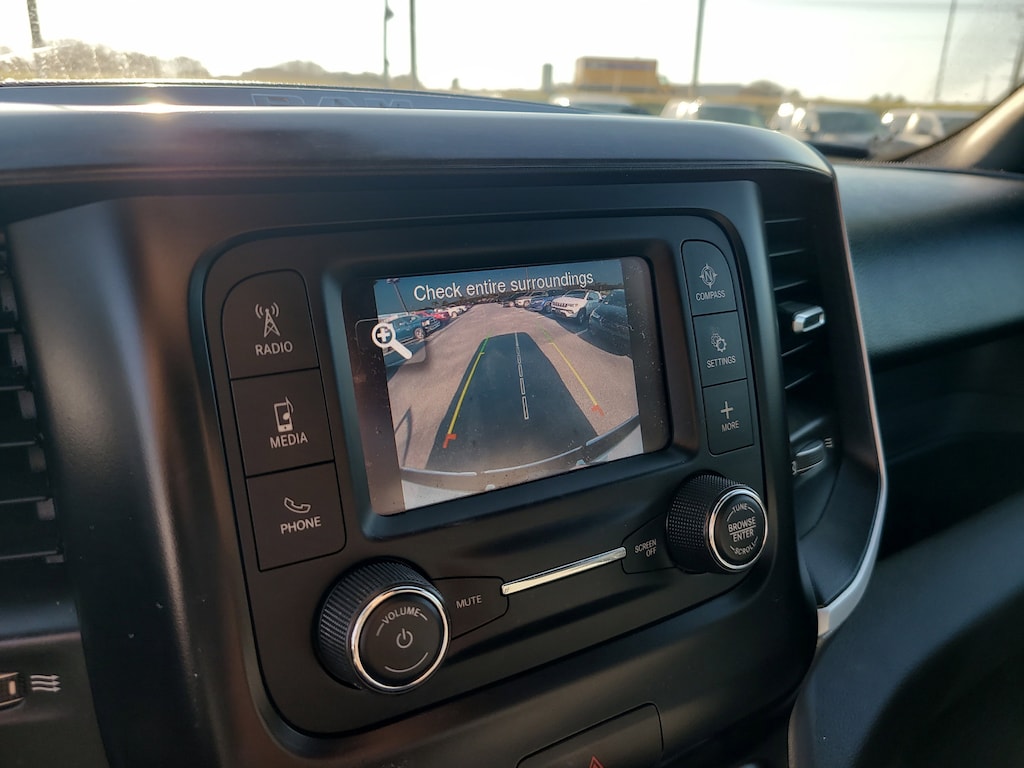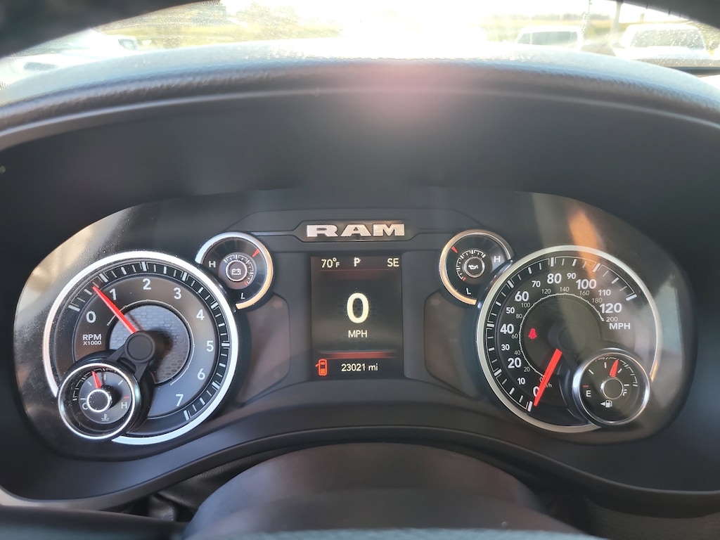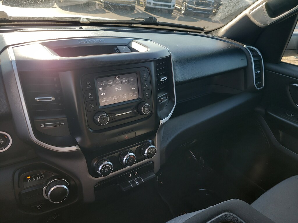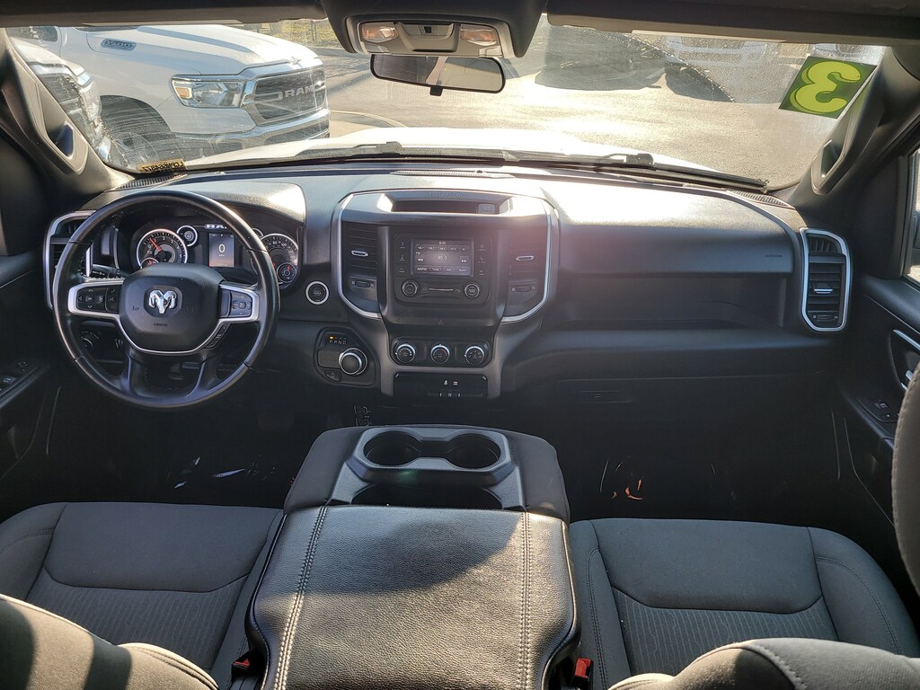 THIS VEHCILE INCLUDES THE FOLLOWING OPTIONS AND FEATURES: Quick Order Package 27Z Big Horn (Big Horn Badge), 3 Rear Seat Head Restraints, 3.21 Rear Axle Ratio, 4 Way Front Headrests, 4-Wheel Disc Brakes, 48V Belt Starter Generator, 6 Speakers, ABS brakes, Air Conditioning, Alloy wheels, AM/FM radio, Black Exterior Mirrors, Brake assist, Bumpers: chrome, Cloth Bench Seat, Compass, Convex Wide-Angle Exterior Mirror Insert, Delay-off headlights, Driver door bin, Dual front impact airbags, Dual front side impact airbags, Electronic Stability Control, Emergency communication system: SiriusXM Guardian, Exterior Mirrors w/Heating Element, Exterior Parking Camera Rear, For Details, Visit DriveUconnect.com, Front anti-roll bar, Front Center Armrest w/Storage, Front License Plate Bracket, Front reading lights, Front Seat Back Map Pockets, Front wheel independent suspension, Fully automatic headlights, Global Telematics Box Module (TBM), GPS Antenna Input, Heated door mirrors, Illuminated entry, Integrated Voice Command w/Bluetooth, Leather steering wheel, Low tire pressure warning, Manufacturer's Statement of Origin, MOPAR Front & Rear Rubber Floor Mats, Occupant sensing airbag, Outside temperature display, Overhead airbag, Overhead console, Panic alarm, Passenger door bin, Passenger vanity mirror, Power door mirrors, Power steering, Power windows, Radio data system, Radio: Uconnect 3 w/5" Display, RAM Grille Badge - Chrome, Rear 60/40 Folding Seat, Rear anti-roll bar, Rear seat center armrest, Rear step bumper, Remote keyless entry, Speed control, Split folding rear seat, Steering wheel mounted audio controls, Tachometer, Telescoping steering wheel, Tilt steering wheel, Traction control, Trip computer, Variably intermittent wipers, Voltmeter, and Wheels: 18" x 8" Cast-Aluminum Painted.