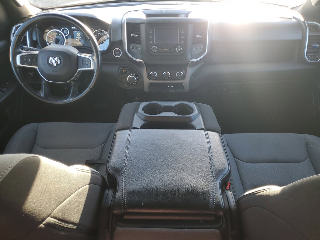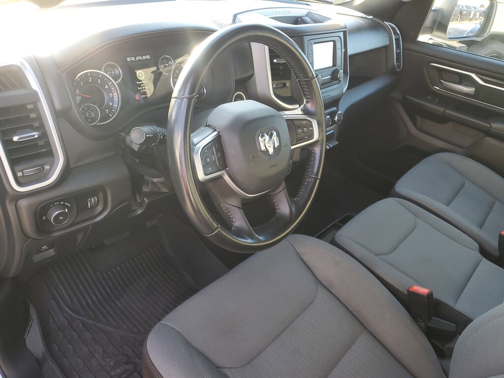 THIS VEHCILE INCLUDES THE FOLLOWING OPTIONS AND FEATURES: Quick Order Package 27Z Big Horn (Big Horn Badge), 3 Rear Seat Head Restraints, 3.21 Rear Axle Ratio, 4 Way Front Headrests, 4-Wheel Disc Brakes, 48V Belt Starter Generator, 6 Speakers, ABS brakes, Air Conditioning, Alloy wheels, AM/FM radio, Black Exterior Mirrors, Brake assist, Bumpers: chrome, Cloth Bench Seat, Compass, Convex Wide-Angle Exterior Mirror Insert, Delay-off headlights, Driver door bin, Dual front impact airbags, Dual front side impact airbags, Electronic Stability Control, Emergency communication system: SiriusXM Guardian, Exterior Mirrors w/Heating Element, Exterior Parking Camera Rear, For Details, Visit DriveUconnect.com, Front anti-roll bar, Front Center Armrest w/Storage, Front License Plate Bracket, Front reading lights, Front Seat Back Map Pockets, Front wheel independent suspension, Fully automatic headlights, Global Telematics Box Module (TBM), GPS Antenna Input, Heated door mirrors, Illuminated entry, Integrated Voice Command w/Bluetooth, Leather steering wheel, Low tire pressure warning, Manufacturer's Statement of Origin, MOPAR Front & Rear Rubber Floor Mats, Occupant sensing airbag, Outside temperature display, Overhead airbag, Overhead console, Panic alarm, Passenger door bin, Passenger vanity mirror, Power door mirrors, Power steering, Power windows, Radio data system, Radio: Uconnect 3 w/5" Display, RAM Grille Badge - Chrome, Rear 60/40 Folding Seat, Rear anti-roll bar, Rear seat center armrest, Rear step bumper, Remote keyless entry, Speed control, Split folding rear seat, Steering wheel mounted audio controls, Tachometer, Telescoping steering wheel, Tilt steering wheel, Traction control, Trip computer, Variably intermittent wipers, Voltmeter, and Wheels: 18" x 8" Cast-Aluminum Painted.
