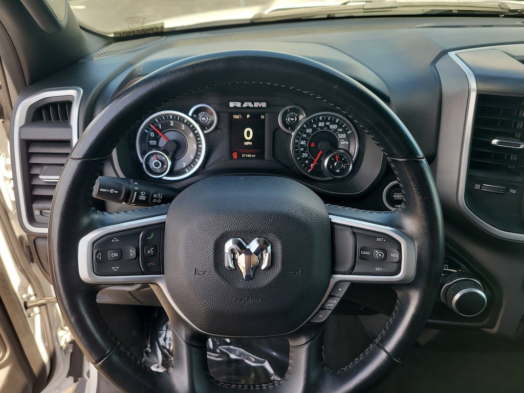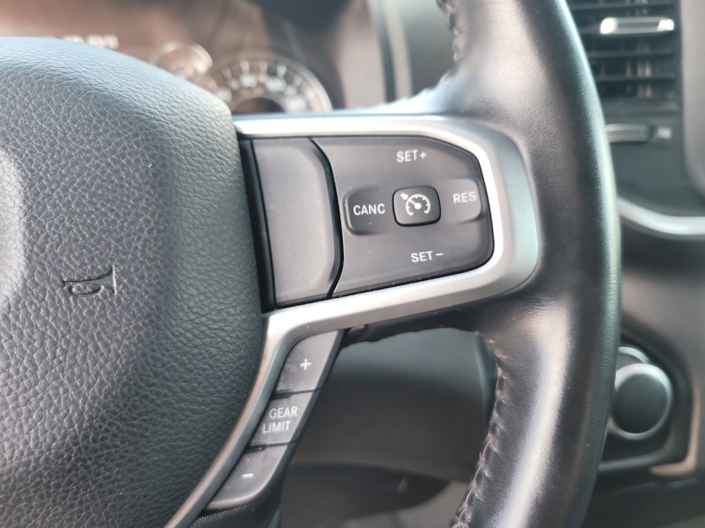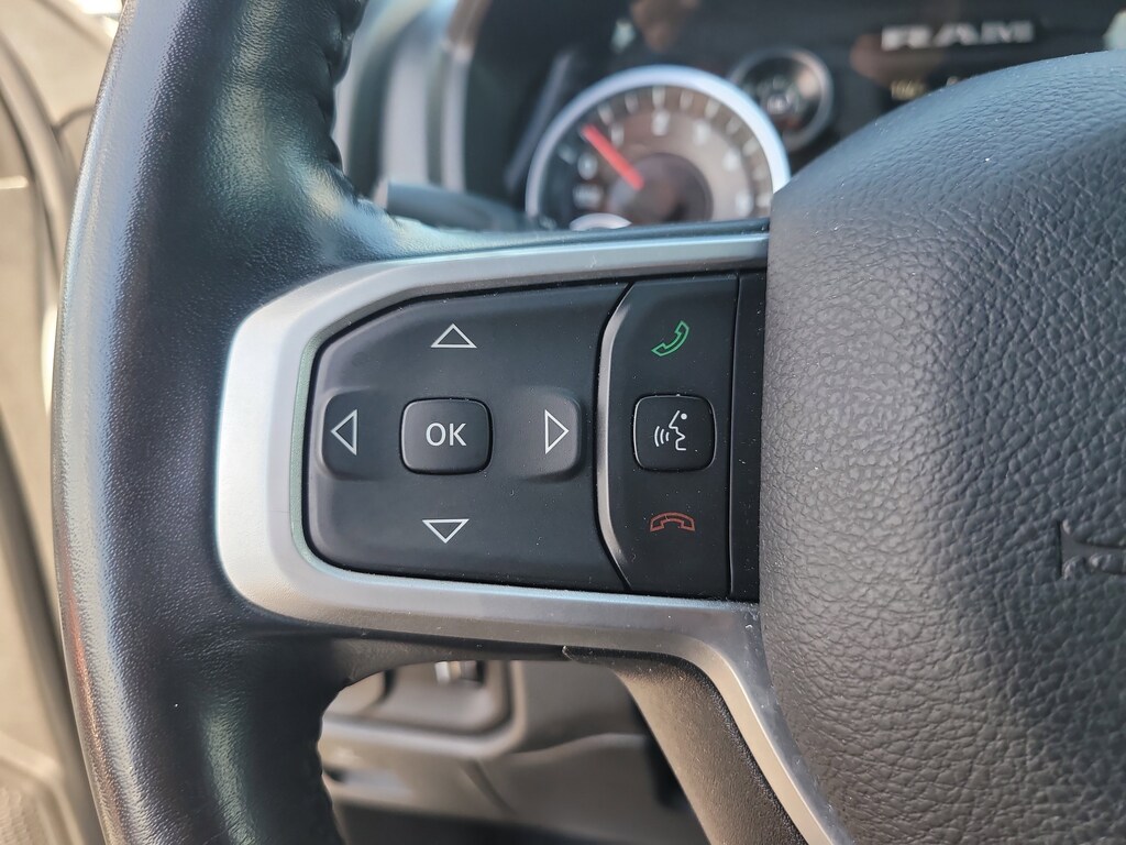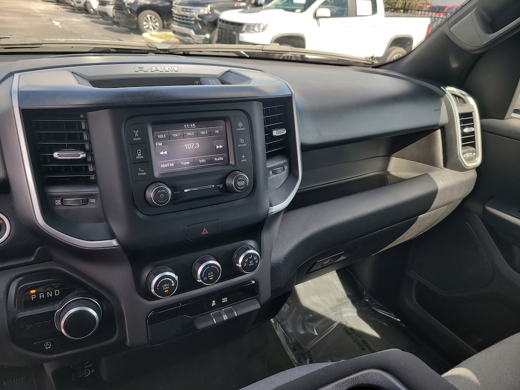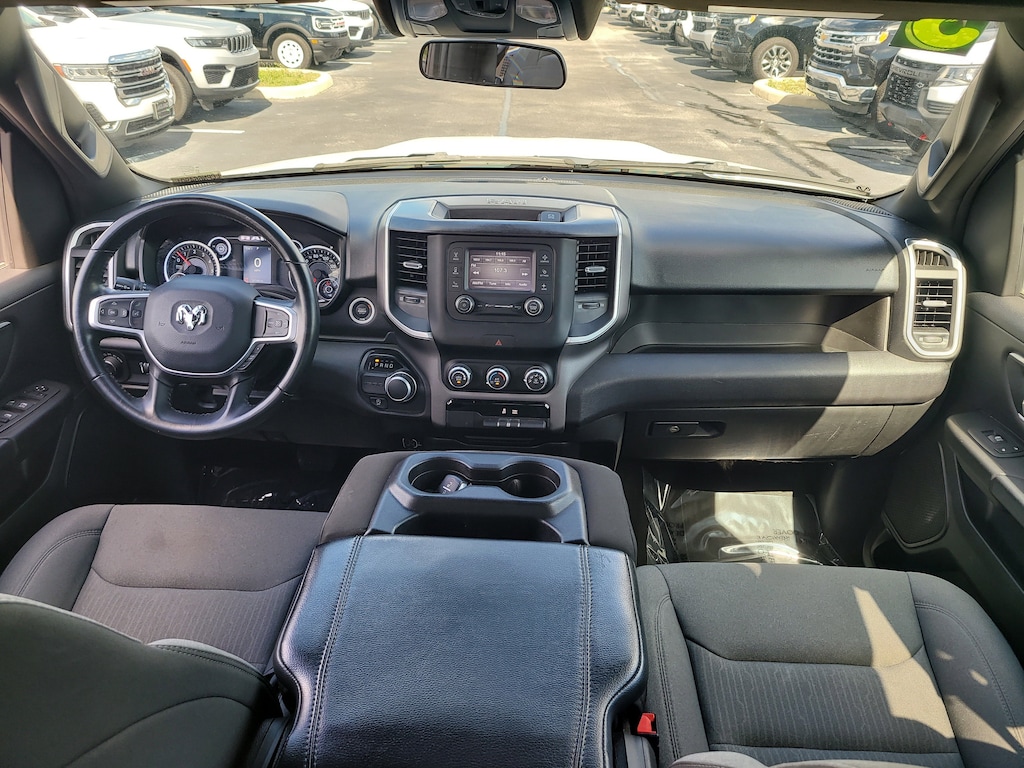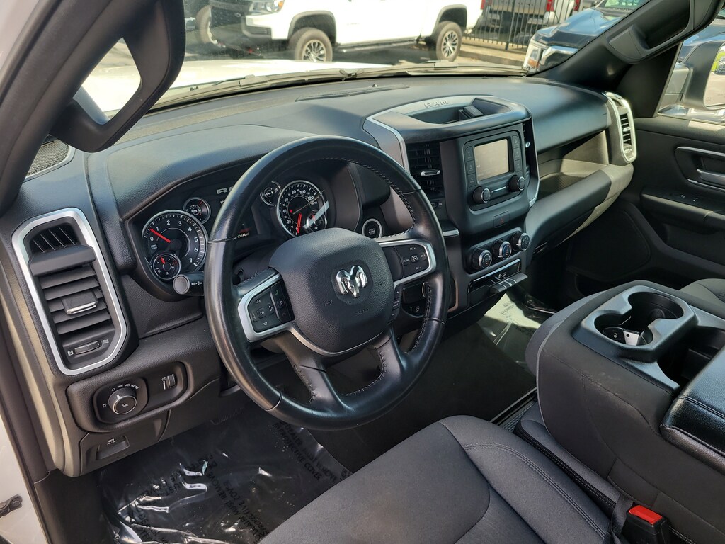THIS VEHCILE INCLUDES THE FOLLOWING OPTIONS AND FEATURES: Quick Order Package 27Z Big Horn (Big Horn Badge), 3 Rear Seat Head Restraints, 3.21 Rear Axle Ratio, 4 Way Front Headrests, 4-Wheel Disc Brakes, 48V Belt Starter Generator, 6 Speakers, ABS brakes, Air Conditioning, Alloy wheels, AM/FM radio, Black Exterior Mirrors, Brake assist, Bumpers: chrome, Cloth Bench Seat, Compass, Convex Wide-Angle Exterior Mirror Insert, Delay-off headlights, Driver door bin, Dual front impact airbags, Dual front side impact airbags, Electronic Stability Control, Emergency communication system: SiriusXM Guardian, Exterior Mirrors w/Heating Element, Exterior Parking Camera Rear, For Details, Visit DriveUconnect.com, Front anti-roll bar, Front Center Armrest w/Storage, Front License Plate Bracket, Front reading lights, Front Seat Back Map Pockets, Front wheel independent suspension, Fully automatic headlights, Global Telematics Box Module (TBM), GPS Antenna Input, Heated door mirrors, Illuminated entry, Integrated Voice Command w/Bluetooth, Leather steering wheel, Low tire pressure warning, Manufacturer's Statement of Origin, MOPAR Front & Rear Rubber Floor Mats, Occupant sensing airbag, Outside temperature display, Overhead airbag, Overhead console, Panic alarm, Passenger door bin, Passenger vanity mirror, Power door mirrors, Power steering, Power windows, Radio data system, Radio: Uconnect 3 w/5" Display, RAM Grille Badge - Chrome, Rear 60/40 Folding Seat, Rear anti-roll bar, Rear seat center armrest, Rear step bumper, Remote keyless entry, Speed control, Split folding rear seat, Steering wheel mounted audio controls, Tachometer, Telescoping steering wheel, Tilt steering wheel, Traction control, Trip computer, Variably intermittent wipers, Voltmeter, and Wheels: 18" x 8" Cast-Aluminum Painted.