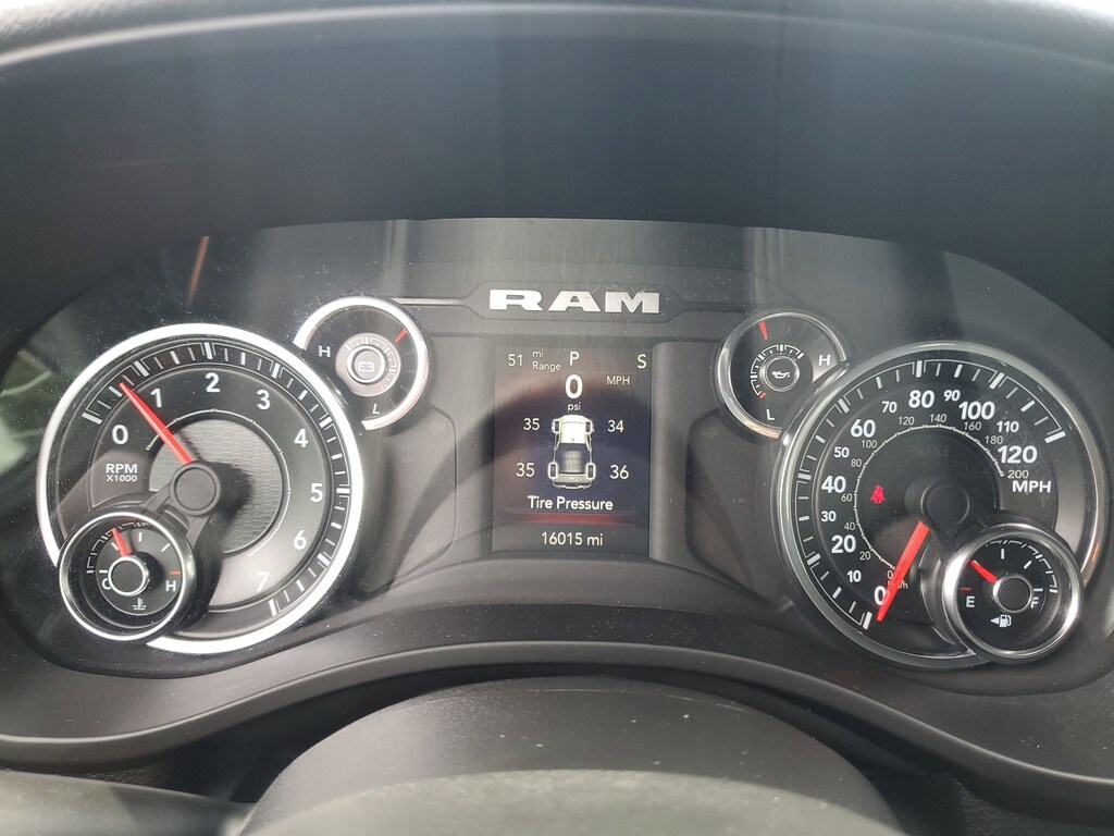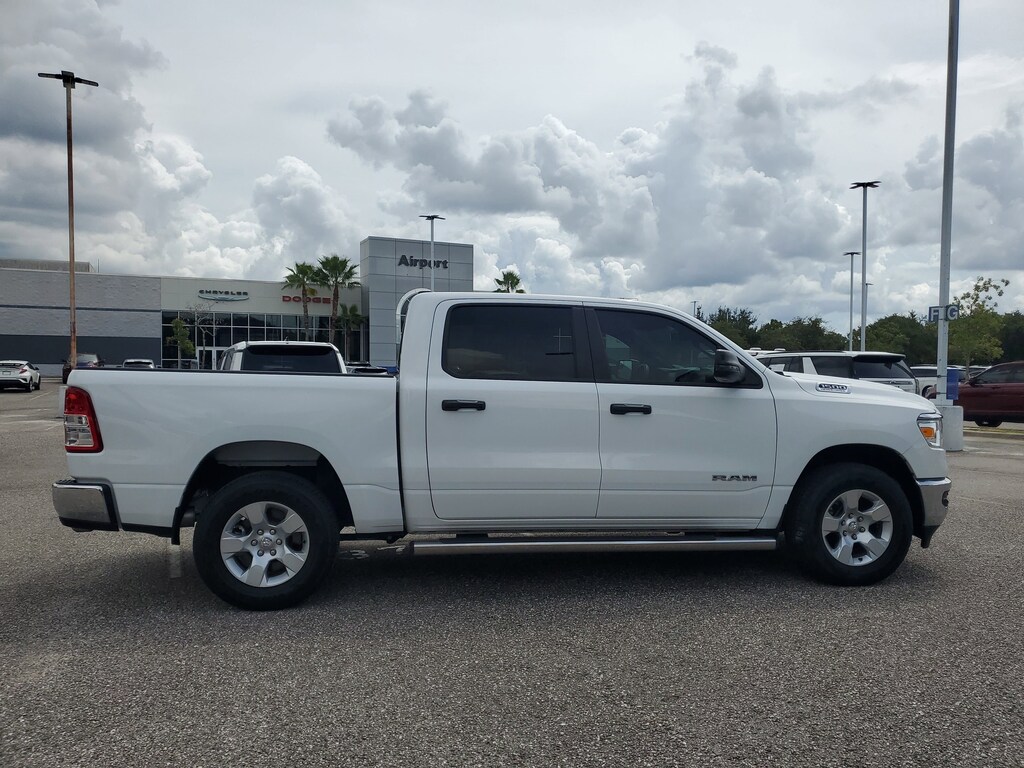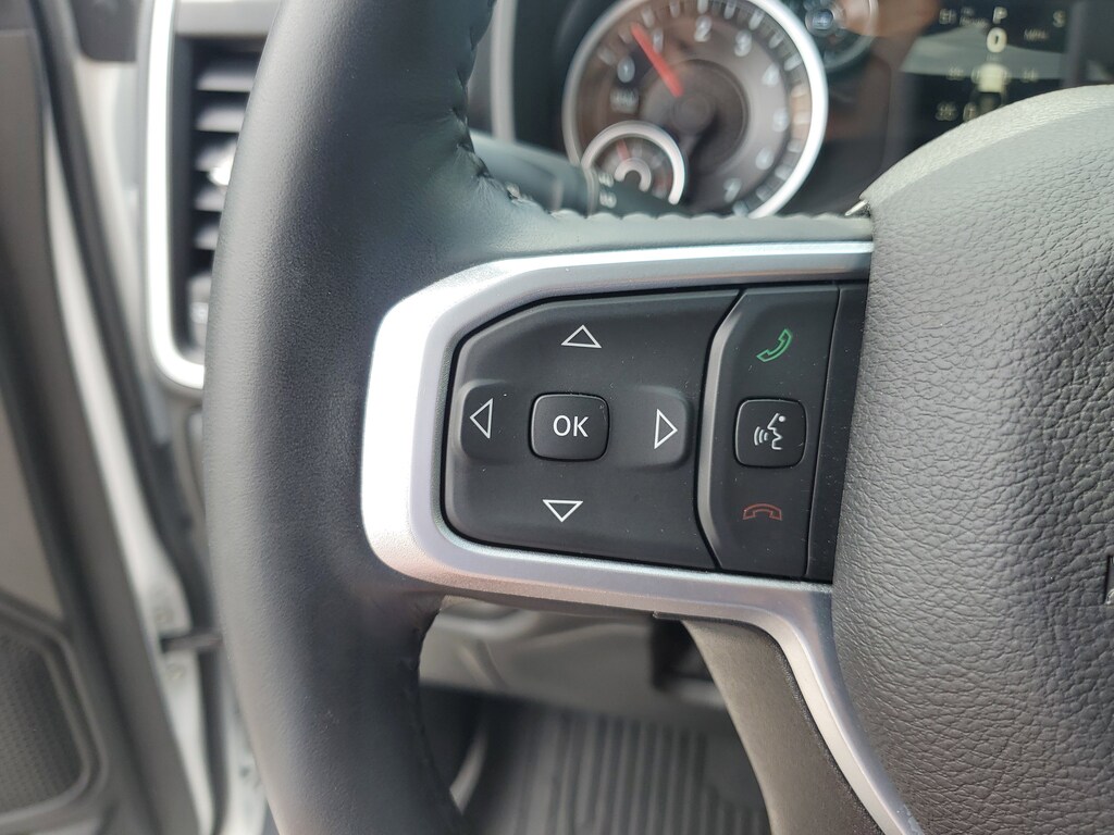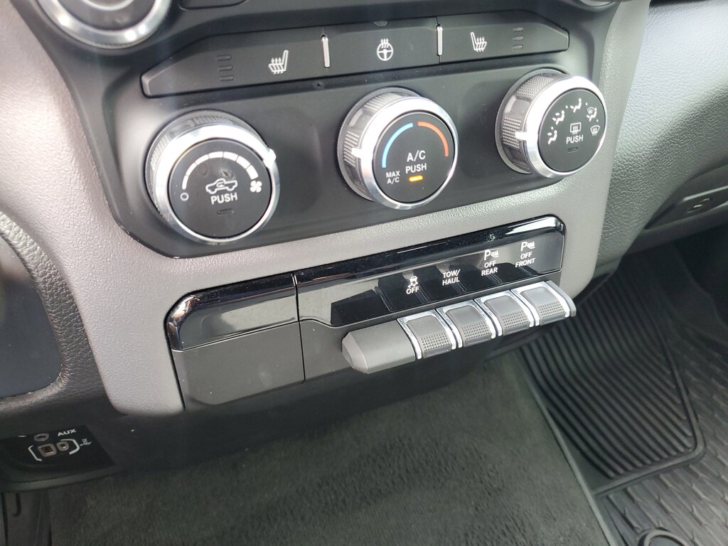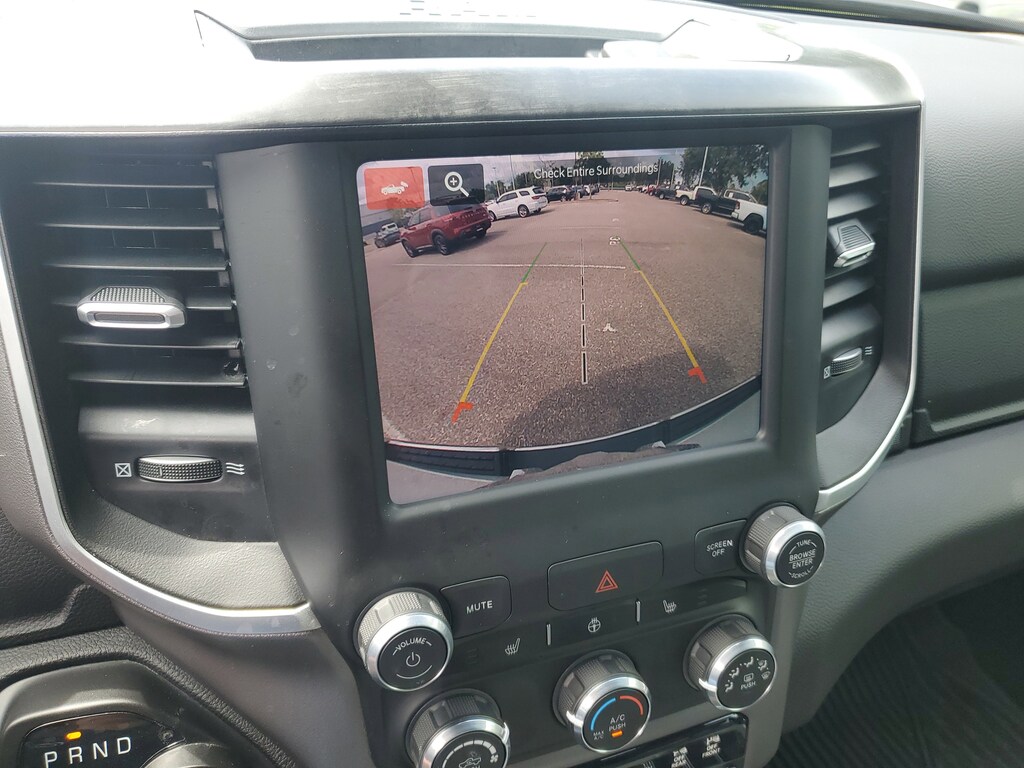 THIS VEHCILE INCLUDES THE FOLLOWING OPTIONS AND FEATURES: Bed Utility Group (MOPAR 4 Adjustable Cargo Tie-Down Hooks, MOPAR Deployable Bed Step, MOPAR Spray In Bedliner, and Pick-Up Box Lighting), Big Horn Level 1 Equipment Group (2nd Row In Floor Storage Bins, 4G LTE Wi-Fi Hot Spot, 8.4" Touchscreen Display, Apple CarPlay, Auto-Dimming Exterior Driver Mirror, Auto-Dimming Rear-View Mirror, Black Exterior Mirrors, Black Premium Power Mirrors, Bluetooth Handsfree Phone & Audio, Class IV Receiver Hitch, Connectivity - US/Canada, Convex Wide-Angle Exterior Mirror Insert, Electric Shift-On-Demand Transfer Case, Exterior Mirrors Courtesy Lamps, Exterior Mirrors w/Heating Element, Exterior Mirrors w/Supplemental Signals, For Details, Visit DriveUconnect.com, For More Info, Call 800-643-2112, Front Fog Lamps, Glove Box Lamp, Google Android Auto, GPS Antenna Input, Heated Front Seats, Heated Steering Wheel, Integrated Center Stack Radio, Passenger Sun Visor w/Illuminated Mirror, Power-Folding Mirrors, Radio: Uconnect 5 W w/8.4" Display, Rear Dome w/On/Off Switch Lamp, Rear Power Sliding Window, Rear Window Defroster, SiriusXM Satellite Radio, and USB Host Flip), Quick Order Package 27Z Big Horn (Big Horn Badge), 3 Rear Seat Head Restraints, 3.21 Rear Axle Ratio, 4 Way Front Headrests, 4-Wheel Disc Brakes, 48V Belt Starter Generator, 6 Speakers, ABS brakes, Air Conditioning, Alloy wheels, AM/FM radio, Brake assist, Bumpers: chrome, Cloth Bench Seat, Compass, Delay-off headlights, Driver door bin, Dual front impact airbags, Dual front side impact airbags, Electronic Stability Control, Emergency communication system: SiriusXM Guardian, Front anti-roll bar, Front Center Armrest w/Storage, Front reading lights, Front Seat Back Map Pockets, Front wheel independent suspension, Fully automatic headlights, Global Telematics Box Module (TBM), Heated door mirrors, Illuminated entry, Integrated Voice Command w/Bluetooth, Leather steering wheel, Low tire pressure warning, MOPAR Front & Rear Rubber Floor Mats, Occupant sensing airbag, Outside temperature display, Overhead airbag, Overhead console, Panic alarm, ParkSense Front/Rear Park Assist w/Stop, ParkView Rear Back-Up Camera, Passenger door bin, Passenger vanity mirror, Power door mirrors, Power steering, Power windows, Radio data system, Radio: Uconnect 3 w/5" Display, RAM Grille Badge - Chrome, Rear 60/40 Folding Seat, Rear anti-roll bar, Rear seat center armrest, Rear step bumper, Remote keyless entry, Remote Start System, Speed control, Split folding rear seat, Steering wheel mounted audio controls, Tachometer, Telescoping steering wheel, Tilt steering wheel, Traction control, Trip computer, Variably intermittent wipers, Voltmeter, and Wheels: 18" x 8" Cast-Aluminum Painted.