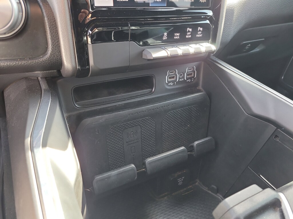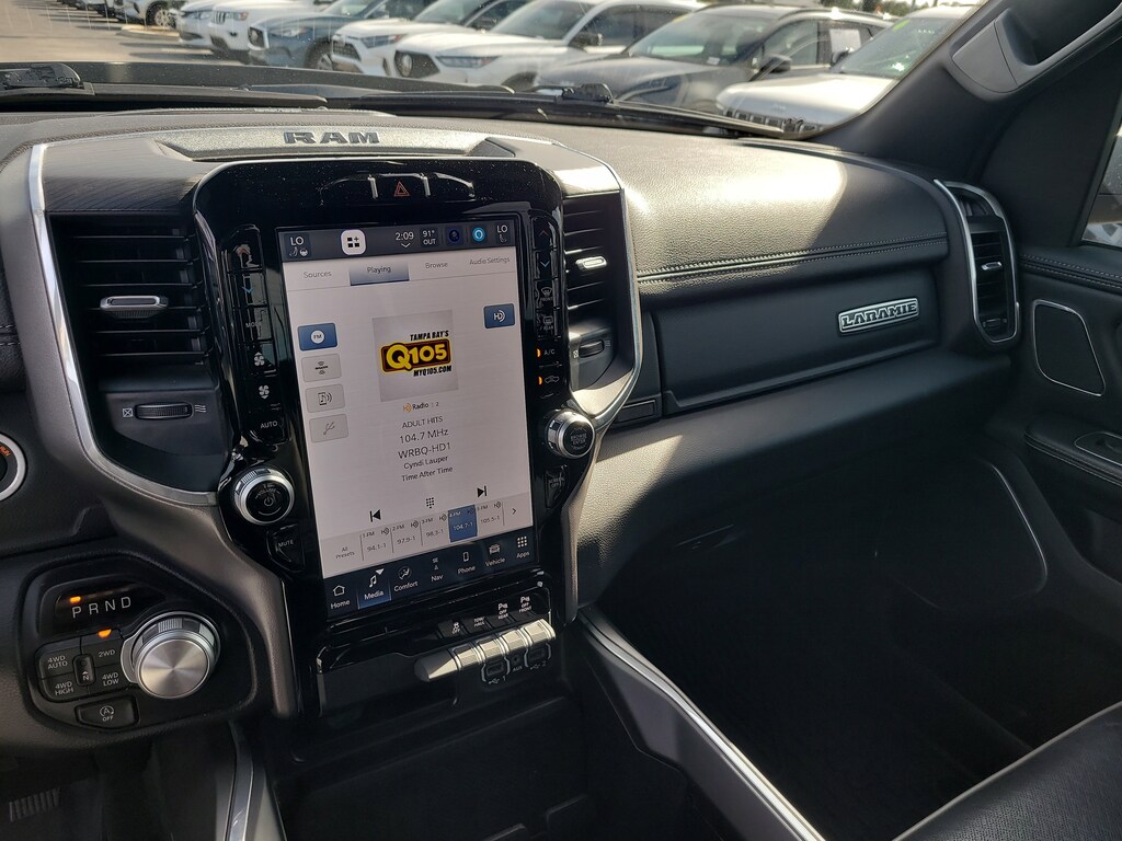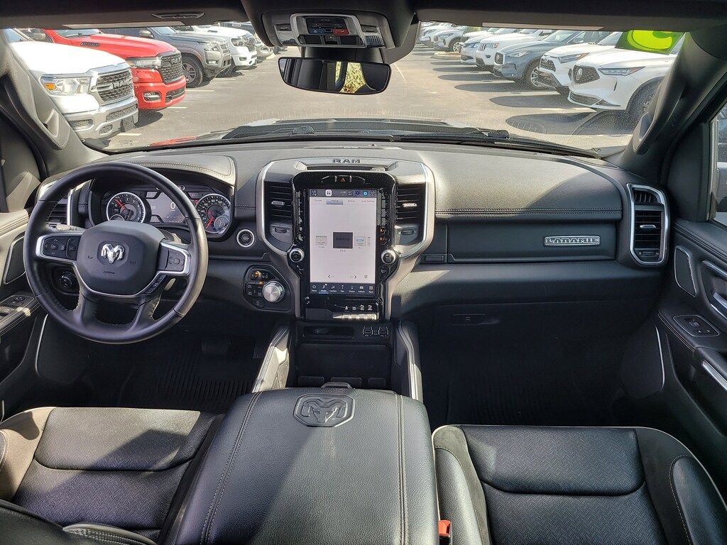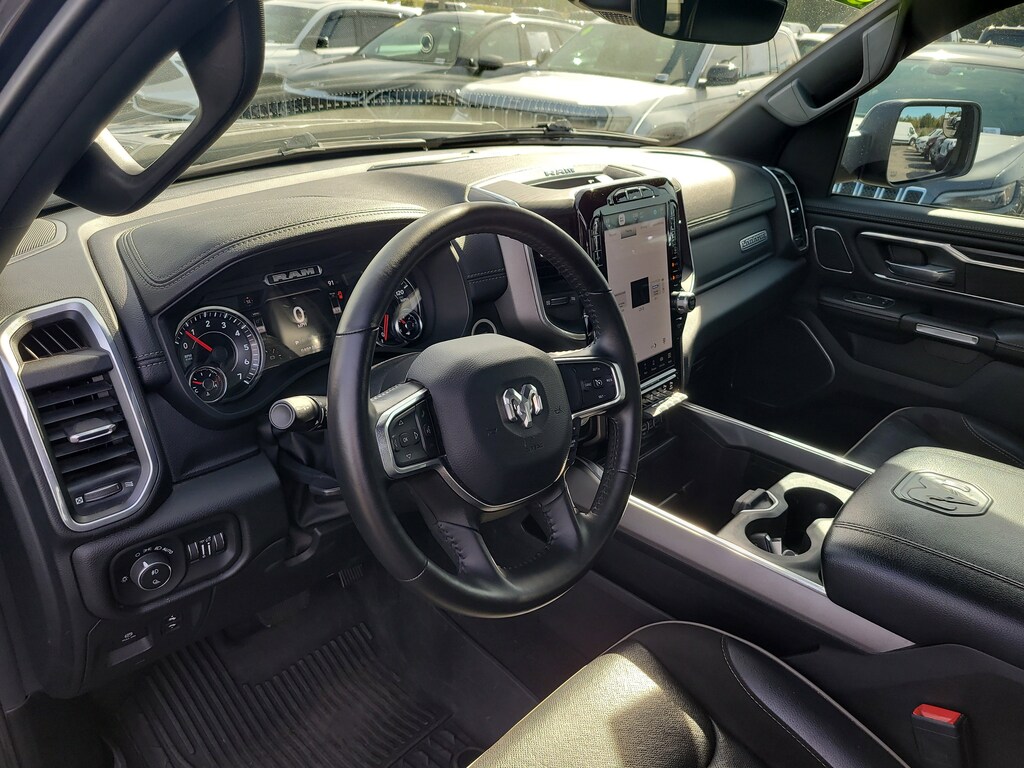 THIS VEHCILE INCLUDES THE FOLLOWING OPTIONS AND FEATURES: Laramie Level B Equipment Group (12" Touchscreen Display, 2nd Row In Floor Storage Bins, 4G LTE Wi-Fi Hot Spot, Apple CarPlay, Auto High Beam Headlamp Control, Blind Spot & Cross Path Detection, Connected Travel & Traffic Services, Connectivity - US/Canada, Disassociated Touchscreen Display, Electric Shift-On-Demand Transfer Case, Foam Bottle Insert (Door Trim Panel), For Details, Visit DriveUconnect.com, For More Info, Call 800-643-2112, Front Door Accent Lighting, Front LED Fog Lamps, Global Telematics Box Module (TBM), Google Android Auto, GPS Antenna Input, GPS Navigation, harman/kardon 19 Speaker Premium Sound, HD Radio, Integrated Center Stack Radio, Integrated Voice Command w/Bluetooth, LED Reflector Headlamps, Radio: Uconnect 5 Nav w/12.0" Display, Rain Sensitive Windshield Wipers, Rear Door Accent Lighting, Rear Power Sliding Window, Rear Underseat Compartment Storage, Rear Window Defroster, Remote Tailgate Release, SiriusXM Radio Service, SiriusXM w/360L, and USB Host Flip), Night Edition (#1 Seat Foam Cushion, 3 Rear Seat Head Restraints, 4 Way Front Headrests, Accent Color Door Handles, Accent Color Premium Power Mirrors, Auto-Dimming Exterior Driver Mirror, Black Exterior Truck Badging, Black Headlamp Bezels, Black Interior Accents, Black Painted Exterior Mirrors Caps, Body Color Front Bumper, Body Color Rear Bumper w/Step Pads, Bucket Seats, Center Console Parts Module, Convex Wide-Angle Exterior Mirror Insert, Driver Seat Memory, Dual Exhaust w/Black Tips, Exterior Mirrors Courtesy Lamps, Exterior Mirrors w/Heating Element, Exterior Mirrors w/Memory, Exterior Mirrors w/Supplemental Signals, Front Seat Back Map Pockets, Full Length Upgraded Floor Console, Grille Surround 3 Black Texture 2 Black, Heated Front Seats, Heated Steering Wheel, Leather Trimmed Bucket Seats, Power 2-Way Driver Lumbar Adjust, Power 2-Way Passenger Lumbar Adjust, Power 8-Way Driver & Passenger Seats, Power-Folding Mirrors, RAM Grille Badge - Black, Rear 60/40 Folding Seat, Sport Performance Hood, Ventilated Front Seats, and Wheels: 22" x 9" Forged Aluminum), Quick Order Package 27H Laramie, 10 Speakers, 3.21 Rear Axle Ratio, 33 Gallon Fuel Tank, 4-Wheel Disc Brakes, 48V Belt Starter Generator, ABS brakes, Adjustable pedals, Air Conditioning, Alloy wheels, AM/FM radio: SiriusXM with 360L, Anti-Spin Differential Rear Axle, Apple CarPlay/Android Auto, Audio memory, Auto-dimming door mirrors, Auto-dimming Rear-View mirror, Automatic temperature control, Brake assist, Bumpers: chrome, Chrome Exterior Mirrors, Class IV Receiver Hitch, Compass, Delay-off headlights, Driver door bin, Driver vanity mirror, Dual front impact airbags, Dual front side impact airbags, Electronic Stability Control, Front anti-roll bar, Front Center Armrest w/Storage, Front dual zone A/C, Front fog lights, Front License Plate Bracket, Front reading lights, Front wheel independent suspension, Fully automatic headlights, Garage door transmitter, Heated door mirrors, Heated front seats, Heated steering wheel, Illuminated entry, Leather steering wheel, Leather Trim 40/20/40 Bench Seat, Low tire pressure warning, Manufacturer's Statement of Origin, Memory seat, MOPAR Front & Rear Rubber Floor Mats, Navigation System, Occupant sensing airbag, Outside temperature display, Overhead airbag, Overhead console, Panic alarm, ParkSense Front/Rear Park Assist w/Stop (DISC), ParkView Rear Back-Up Camera, Passenger door bin, Passenger vanity mirror, Pedal memory, Power door mirrors, Power driver seat, Power passenger seat, Power steering, Power windows, Radio data system, Radio: Uconnect 5 Nav w/8.4" Display, RAM Grille Badge - Chrome, Rear anti-roll bar, Rear seat center armrest, Rear step bumper, Remote keyless entry, Se
