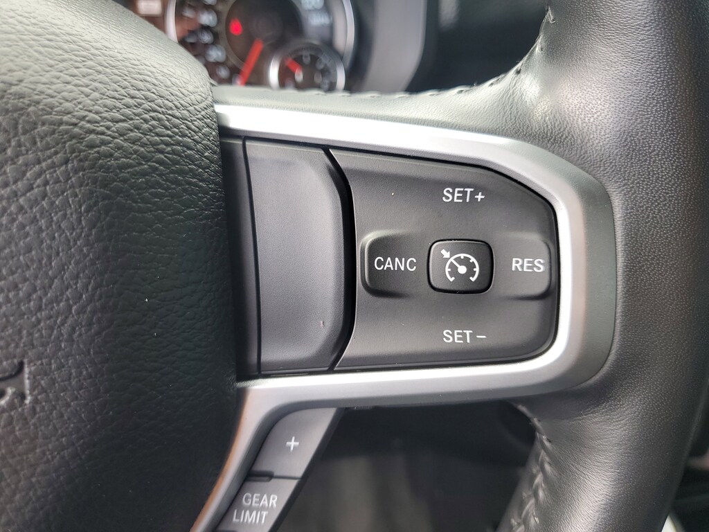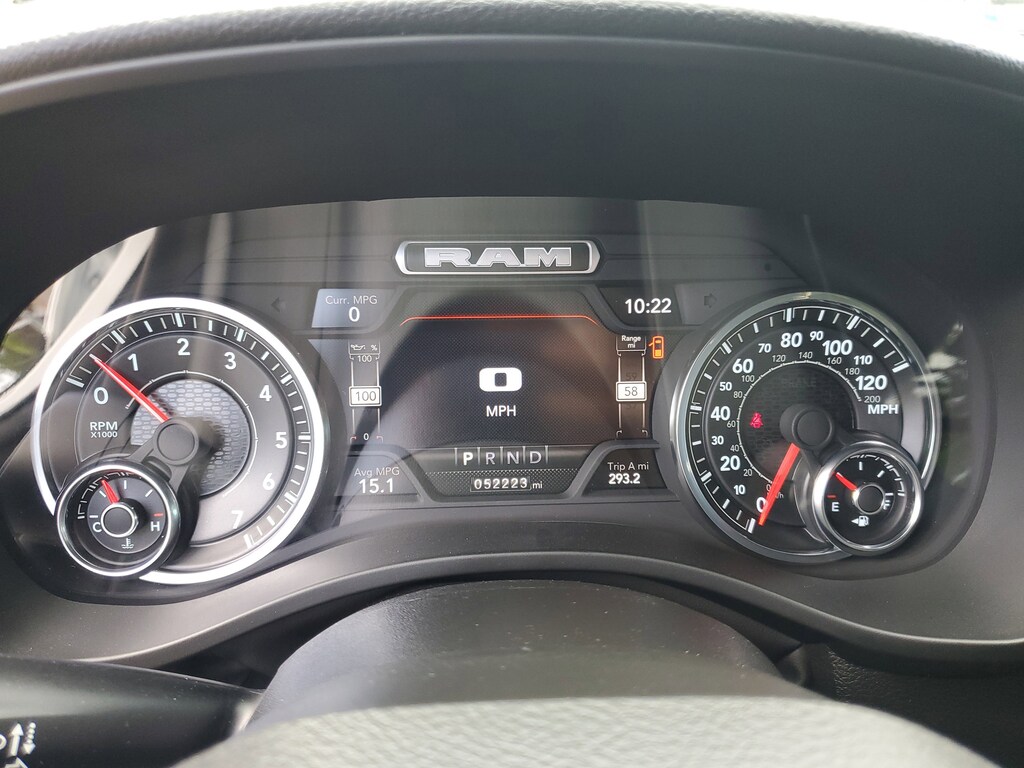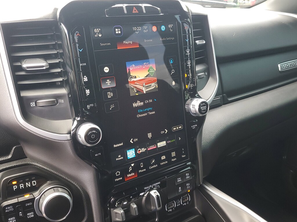 This Vehicle comes equipped with: Big Horn Level B Equipment Group (115V Auxiliary Power Outlet, 12" Touchscreen Display, 2nd Row In Floor Storage Bins, 400W Inverter, 4G LTE Wi-Fi Hot Spot, 9 Amplified Speakers w/Subwoofer, Air Conditioning ATC w/Dual Zone Control, All R1 High Radios, All Radio Equipped Vehicles, Apple CarPlay, Auto-Dimming Exterior Driver Mirror, Auto-Dimming Rear-View Mirror, Black Exterior Mirrors, Black Premium Power Mirrors, Class IV Receiver Hitch, Cluster 7.0" TFT Color Display, Connected Travel & Traffic Services, Connectivity - US/Canada, Convex Wide-Angle Exterior Mirror Insert, Disassociated Touchscreen Display, Exterior Mirrors Courtesy Lamps, Exterior Mirrors w/Heating Element, Exterior Mirrors w/Supplemental Signals, For Details, Visit DriveUconnect.com, For More Info, Call 800-643-2112, Front Fog Lamps, Global Telematics Box Module (TBM), Glove Box Lamp, Google Android Auto, GPS Antenna Input, GPS Navigation, HD Radio, Heated Front Seats, Heated Steering Wheel, Integrated Center Stack Radio, Integrated Voice Command w/Bluetooth, LED Footwell Lighting, Media Hub w/2 Charge Only USBs, ParkSense Front/Rear Park Assist w/Stop, Power 2-Way Driver Lumbar Adjust, Power 8-Way Driver Seat, Power Adjustable Pedals, Power-Folding Mirrors, Radio: Uconnect 5 Nav w/12.0" Display, Rear Dome w/On/Off Switch Lamp, Rear Power Sliding Window, Rear Window Defroster, Remote Start System, Security Alarm, SiriusXM Radio Service, SiriusXM Satellite Radio, SiriusXM w/360L, Sun Visors w/Illuminated Vanity Mirrors, Universal Garage Door Opener, and USB Host Flip), Night Edition (3 Rear Seat Head Restraints, 4 Way Front Headrests, Accent Color Door Handles, Accent Color Premium Power Mirrors, Anti-Spin Differential Rear Axle, Black Exterior Truck Badging, Black Headlamp Bezels, Black Interior Accents, Black Painted Exterior Mirrors Caps, Body Color Front Bumper, Body Color Rear Bumper w/Step Pads, Bucket Seats, Center Console Parts Module, Deluxe Cloth Bucket Seats, Dual Exhaust w/Black Tips, Front Seat Back Map Pockets, Full Length Floor Console, Manual Adjust 4-Way Front Passenger Seat, RAM Grille Badge - Black, Rear 60/40 Folding Seat, Rear Center Armrest, and Wheels: 20" x 9.0" Premium Paint/Polished), Quick Order Package 27Z Big Horn (Big Horn Badge), Trailer Tow Group (Trailer Brake Control, Trailer Light Check, Trailer Reverse Steering Control, Trailer Tire Pressure Monitoring System, and Trailer Tow Mirrors), 3.21 Rear Axle Ratio, 4-Wheel Disc Brakes, 48V Belt Starter Generator, 6 Speakers, ABS brakes, Air Conditioning, Alloy wheels, AM/FM radio, Black Trailer Tow Power Mirrors (DISC), Blind Spot & Cross Path Detection, Brake assist, Bumpers: chrome, Cloth Bench Seat, Compass, Delay-off headlights, Driver door bin, Dual front impact airbags, Dual front side impact airbags, Electronic Stability Control, Emergency communication system: SiriusXM Guardian, Front anti-roll bar, Front Center Armrest w/Storage, Front reading lights, Front wheel independent suspension, Fully automatic headlights, Heated door mirrors, Illuminated entry, Leather steering wheel, LED Taillamps, Low tire pressure warning, MOPAR Front & Rear Rubber Floor Mats, Occupant sensing airbag, Outside temperature display, Overhead airbag, Overhead console, Panic alarm, ParkView Rear Back-Up Camera, Passenger door bin, Passenger vanity mirror, Power door mirrors, Power steering, Power windows, Radio data system, Radio: Uconnect 3 w/5" Display, RAM Grille Badge - Chrome, Rear anti-roll bar, Rear seat center armrest, Rear step bumper, Remote keyless entry, Speed control, Split folding rear seat, Steering wheel mounted audio controls, Tachometer, Telescoping steering wheel, Tilt steering wheel, Traction control, Trip computer, Variably intermittent wipers, Voltmeter, and Wheels: 18" x 8" Cast-Aluminum PainteD.