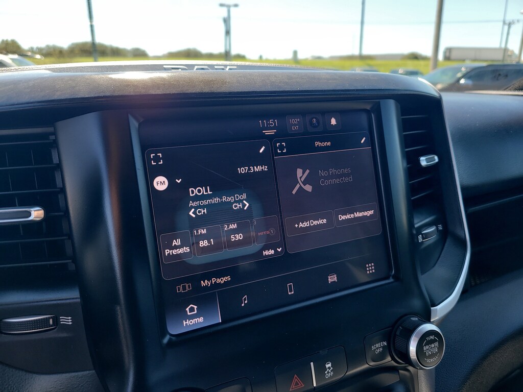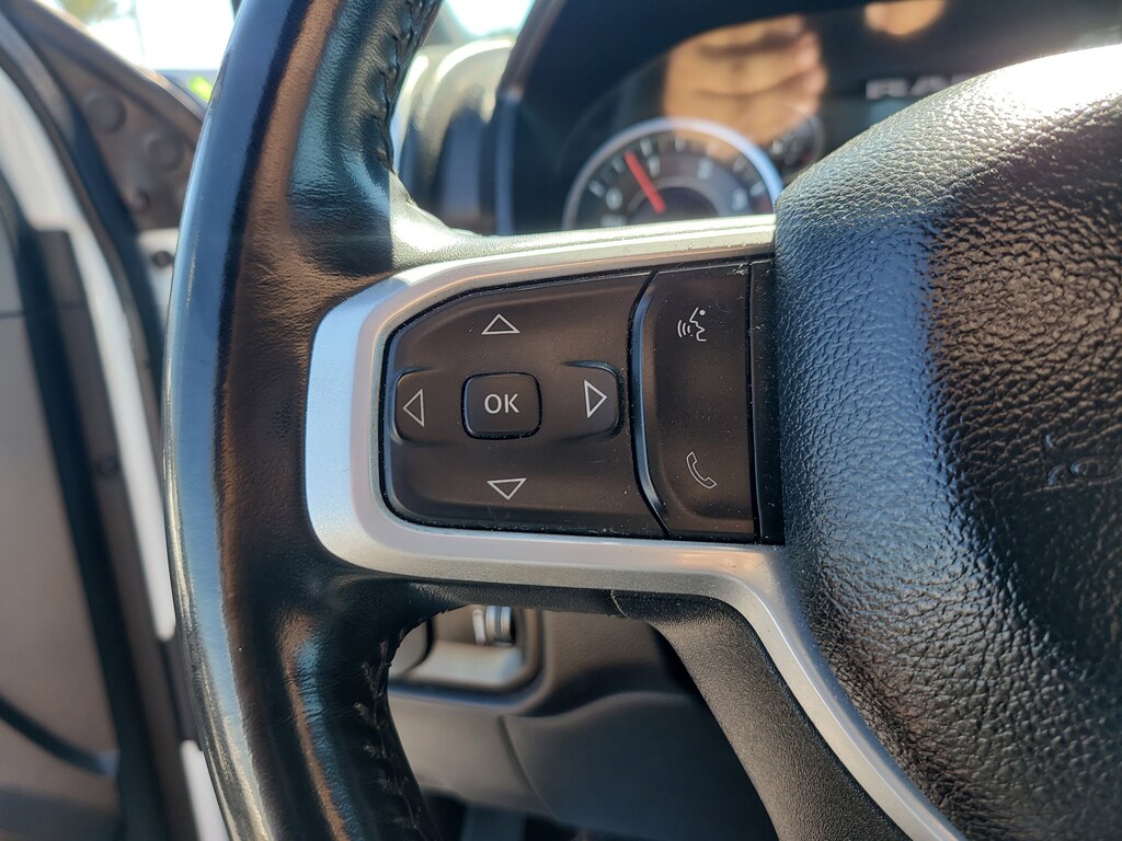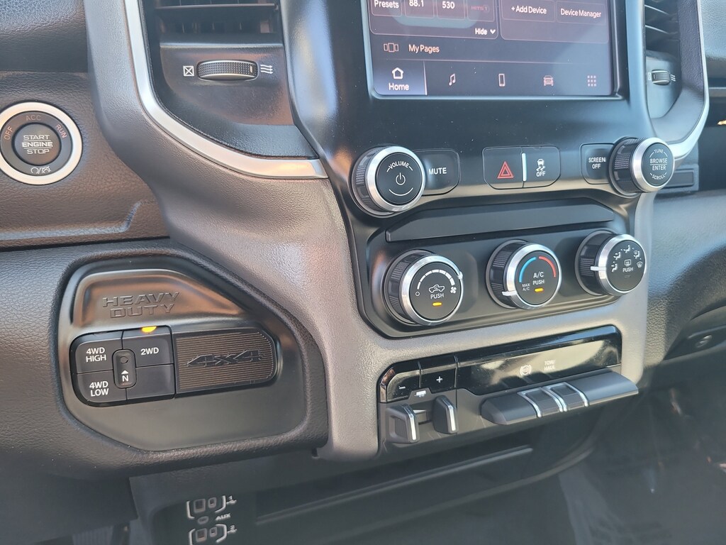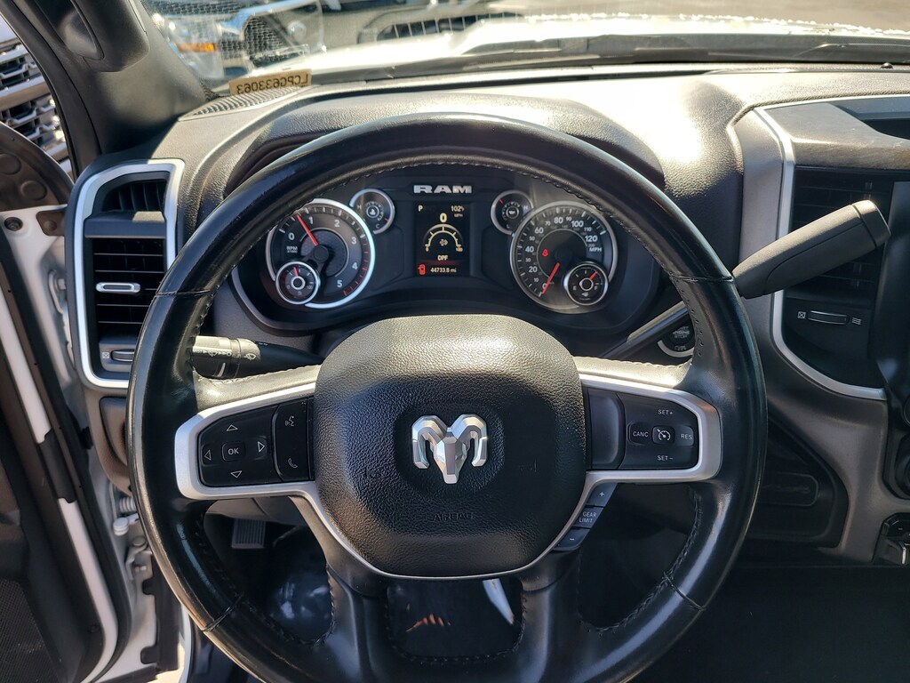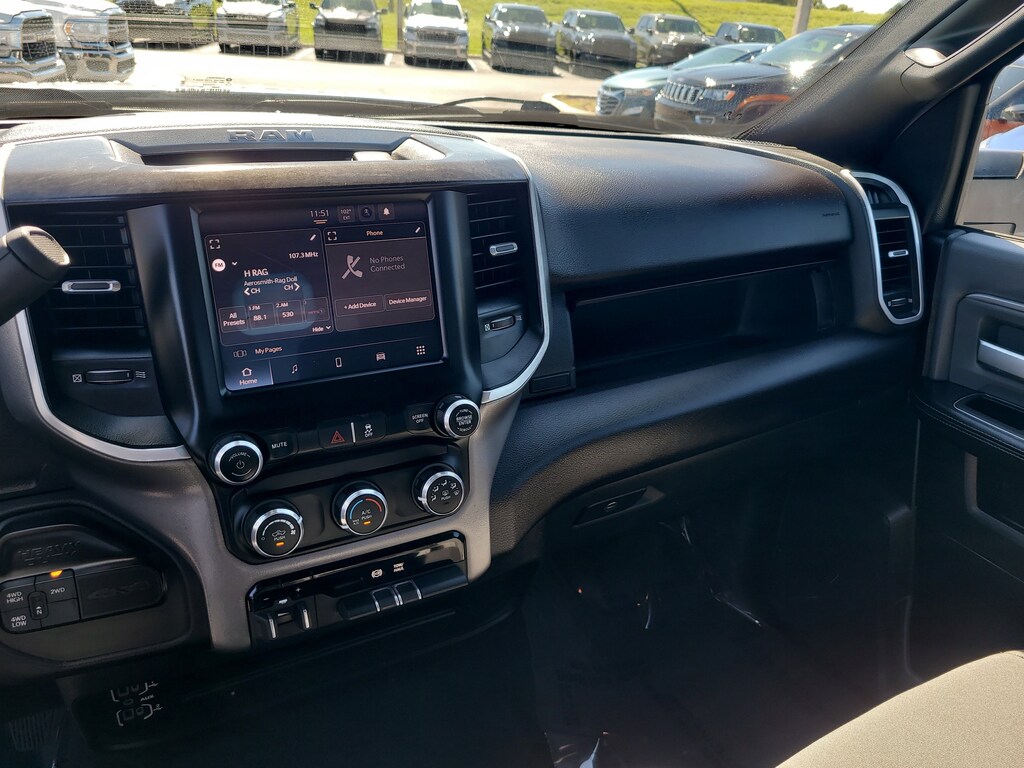 This Vehicle comes equipped with: Level 1 Equipment Group (2 Way Rear Headrest Seat, 2nd Row In Floor Storage Bins, 4 Way Front Headrests, 40/20/40 Split Bench Seat, 4G LTE Wi-Fi Hot Spot, 8.4" Touchscreen Display, Apple CarPlay, Auto Power-Folding Mirrors, Big Horn IP Badge, Black Exterior Mirrors, Bluetooth Handsfree Phone & Audio, Connectivity - US/Canada, Dual Glove Boxes, Exterior Mirrors Courtesy Lamps, Exterior Mirrors w/Heating Element, Exterior Mirrors w/Supplemental Signals, Foam Bottle Insert (Door Trim Panel), Footwell Courtesy Lamp, For Details, Visit DriveUconnect.com, For More Info, Call 800-643-2112, Forward & Reverse Utility Lights, Front Armrest w/Cupholders, Front Center Seat Cushion Storage, Front Fog Lamps, Front Seat Back Map Pockets, Global Telematics Box Module (TBM), Glove Box Lamp, Google Android Auto, GPS Antenna Input, Integrated Center Stack Radio, Integrated Voice Command w/Bluetooth, Leather Wrapped Steering Wheel, Locking Lower Glove Box, Manual Adjust 4-Way Front Passenger Seat, Mirror Running Lights, Power 2-Way Driver Lumbar Adjust, Power Adjust 8-Way Driver Seat, Power Adjust Mirrors, Power Adjustable Convex Aux Mirrors, Power Heated Fold Telescope Mirrors, Power Telescoping Mirrors, Premium Cloth 40/20/40 Bench Seat, Radio: Uconnect 5 W w/8.4" Display, Rear 60/40 Folding Seat, Rear Dome w/On/Off Switch Lamp, Selectable Tire Fill Alert, SiriusXM Radio Service, SiriusXM Satellite Radio, Steering Wheel Mounted Audio Controls, and Storage Tray), Quick Order Package 2HZ Big Horn, 4-Wheel Disc Brakes, ABS brakes, Brake assist, Electronic Stability Control, Electronically Controlled Throttle, ParkView Rear Back-Up Camera, Speed control, 3.73 Axle Ratio, 6 Speakers, Active Noise Control System, Air Conditioning, Alloy wheels, Auto-dimming Rear-View mirror, Bumpers: chrome, Center Hub, Center Stack Storage Drawer, Chrome Flat Cab-Length Side Steps, Cloth 40/20/40 Bench Seat, Compass, Delay-off headlights, Driver door bin, Dual front impact airbags, Dual front side impact airbags, Emergency communication system: SiriusXM Guardian, Front anti-roll bar, Front Center Armrest w/Storage, Front License Plate Bracket, Front rea