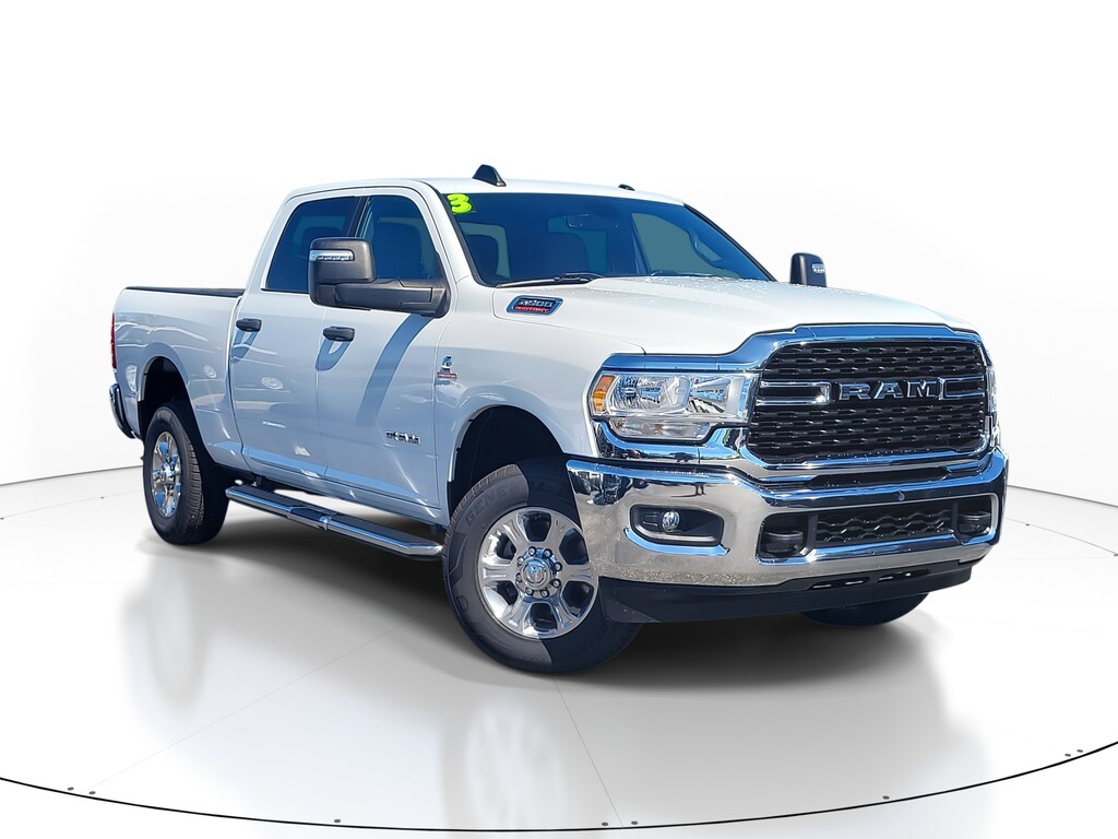 2023 Ram 2500 Big Horn Bright White Clearcoat 4WD 6-Speed Automatic Cummins 6.7L I6 Turbodiesel 2 Way Rear Headrest Seat, 2nd Row In Floor Storage Bins, 4 Way Front Headrests, 4-Wheel Disc Brakes, 40/20/40 Split Bench Seat, 4G LTE Wi-Fi Hot Spot, 8.4" Touchscreen Display, ABS brakes, Apple CarPlay, Auto Power-Folding Mirrors, Big Horn IP Badge, Black Exterior Mirrors, Bluetooth Handsfree Phone & Audio, Brake assist, Connectivity - US/Canada, Dual Glove Boxes, Electronic Stability Control, Electronically Controlled Throttle, Exterior Mirrors Courtesy Lamps, Exterior Mirrors w/Heating Element, Exterior Mirrors w/Supplemental Signals, Foam Bottle Insert (Door Trim Panel), Footwell Courtesy Lamp, For Details, Visit DriveUconnect.com, For More Info, Call 800-643-2112, Forward & Reverse Utility Lights, Front Armrest w/Cupholders, Front Center Seat Cushion Storage, Front Fog Lamps, Front Seat Back Map Pockets, Global Telematics Box Module (TBM), Glove Box Lamp, Google Android Auto, GPS Antenna Input, Integrated Center Stack Radio, Integrated Voice Command w/Bluetooth, Leather Wrapped Steering Wheel, Level 1 Equipment Group, Locking Lower Glove Box, Manual Adjust 4-Way Front Passenger Seat, Mirror Running Lights, ParkView Rear Back-Up Camera, Power 2-Way Driver Lumbar Adjust, Power Adjust 8-Way Driver Seat, Power Adjust Mirrors, Power Adjustable Convex Aux Mirrors, Power Heated Fold Telescope Mirrors, Power Telescoping Mirrors, Premium Cloth 40/20/40 Bench Seat, Quick Order Package 2HZ Big Horn, Radio: Uconnect 5 W w/8.4" Display, Rear 60/40 Folding Seat, Rear Dome w/On/Off Switch Lamp, Selectable Tire Fill Alert, SiriusXM Radio Service, SiriusXM Satellite Radio, Speed control, Steering Wheel Mounted Audio Controls, Storage Tray.