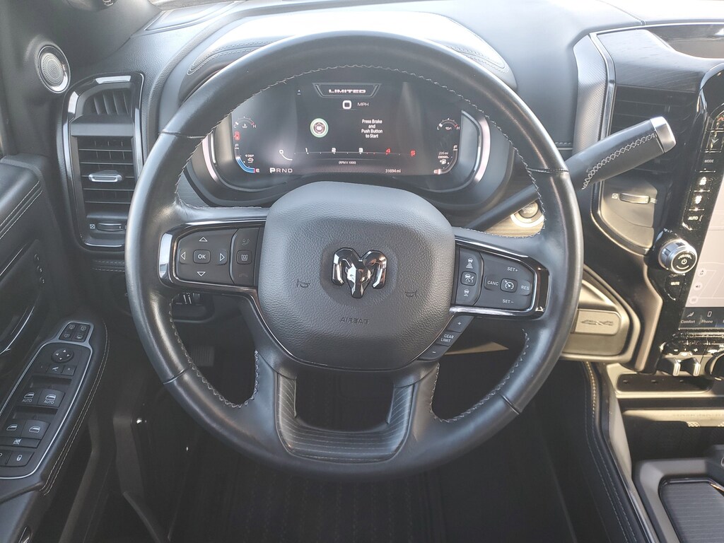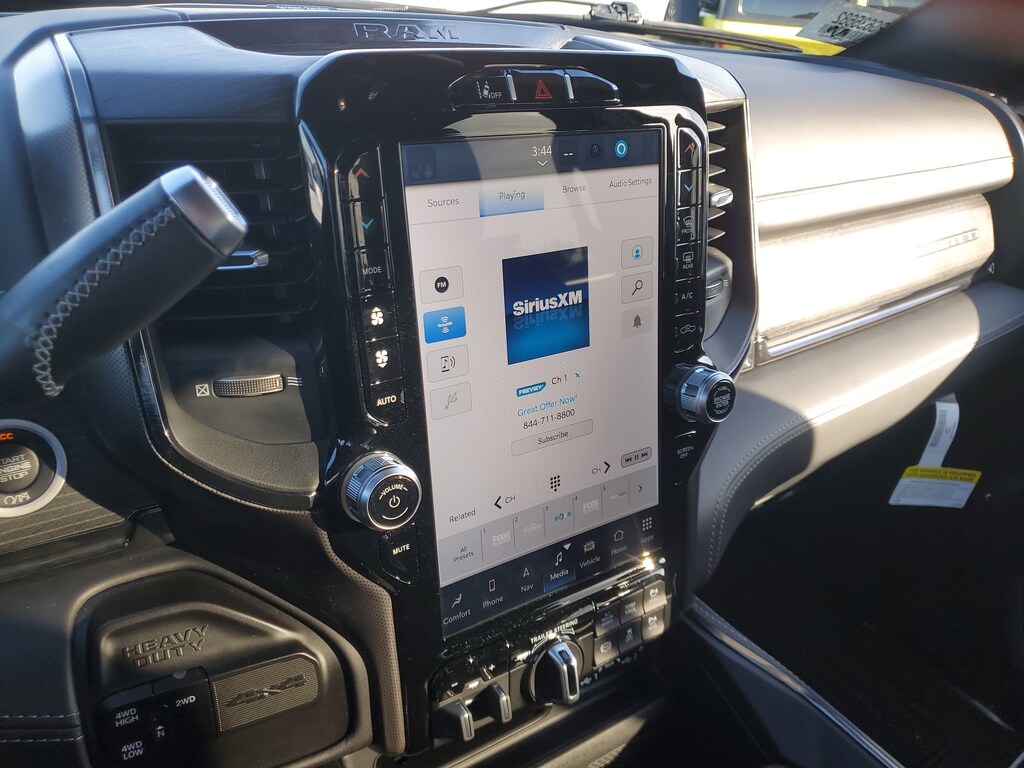 THIS VEHCILE INCLUDES THE FOLLOWING OPTIONS AND FEATURES: Cold Weather Group (Engine Block Heater and MOPAR Winter Front Grille Cover), Heavy Duty Snow Plow Prep Group (220 Amp Alternator), Limited Level 1 Equipment Group (12" Touchscreen Display, 17 Speaker harman/kardon Premium Sound, 4 Adjustable Cargo Tie-Down Hooks, 4G LTE Wi-Fi Hot Spot, Adaptive Cruise Control w/Stop, Adaptive Steering System, Alexa Built-In, Apple CarPlay, Connected Travel & Traffic Services, Connectivity - US/Canada, CTR Stop Lamp w/Cargo View Camera, Digital Rearview Mirror, Disassociated Touchscreen Display, For Details, Visit DriveUconnect.com, For More Info, Call 800-643-2112, Full Speed Forward Collision Warning Plus, Global Telematics Box Module (TBM), Google Android Auto, GPS Antenna Input, GPS Navigation, HD Radio, Integrated Voice Command w/Bluetooth, Lane Keep Assist, LED Bed Lighting, MOPAR Spray In Bedliner, Off-Road Information Pages, Power Deployable Running Boards, Radio: Uconnect 5 Nav w/12.0" Display, RamBox Cargo Management System, Ramcharger Wireless Charging Pad, Selectable Tire Fill Alert, SiriusXM Radio Service, SiriusXM w/360L, Surround View Camera System, Trailer Reverse Guidance, Trailer Tow Pages, Truck Bed Cargo Divider, Vendor Painted Cargo Box, and Vendor Painted Cargo Box Tracking), Night Edition (Black Exterior Truck Badging, Black Grille Limited, Black Headlamp Bezels, Black Ram Head Tailgate Badge, Black Tail Lamp Bezels, Black Wheel Center Hub, Body Color Grille Surround, Sport Performance Hood, and Wheels: 20" x 8.0" Cast Aluminum Black), Protection Group, Quick Order Package 2HM Limited, Tow Technology Plus Group (Digital 3.0 Rear View Auto Dimming Mirror and Trailer Reverse Steering Control), 10 Speakers, 3.73 Axle Ratio, 4-Wheel Disc Brakes, 5th Wheel/Gooseneck Towing Prep Group, ABS brakes, Active Noise Control System, Adjustable pedals, Air Conditioning, Alloy wheels, AM/FM radio: SiriusXM with 360L, Apple CarPlay/Android Auto, Audio memory, Auto High-beam Headlights, Auto Level Rear Air Suspension, Auto-dimming door mirrors, Auto-dimming Rear-View mirror, Automatic temperature control, Bodyside moldings, Brake assist, Bumpers: body-color, Clearance Lamps, Compass, Delay-off headlights, Driver door bin, Driver vanity mirror, Dual front impact airbags, Dual front side impact airbags, Electronic Stability Control, Electronically Controlled Throttle, Front anti-roll bar, Front Bucket Seats, Front Center Armrest w/Storage, Front dual zone A/C, Front fog lights, Front License Plate Bracket, Front reading lights, Fully automatic headlights, Garage door transmitter, Genuine wood console insert, Genuine wood dashboard insert, Genuine wood door panel insert, Heated door mirrors, Heated front seats, Heated rear seats, Heated steering wheel, Illuminated entry, Instrument Cluster Theme 8, Leather steering wheel, Limited Leather Bucket Seats, Low tire pressure warning, Luxury Door Trim Panel (CTH), Memory seat, Navigation System, Occupant sensing airbag, Outside temperature display, Overhead airbag, Overhead console, Panic alarm, ParkView Rear Back-Up Camera, Passenger door bin, Passenger vanity mirror, Pedal memory, Power door mirrors, Power driver seat, Power passenger seat, Power steering, Power windows, Radio data system, Radio: Uconnect 5 Nav w/8.4" Display, Rain sensing wipers, RamBox Delete, Rear anti-roll bar, Rear reading lights, Rear seat center armrest, Rear step bumper, Rear window defroster, Remote keyless entry, Security system, Speed control, Split folding rear seat, Steering wheel mounted audio controls, Tachometer, Tilt steering wheel, Tip Start, Traction control, Trip computer, Turn signal indicator mirrors, Variably intermittent wipers, Ventilated front seats, Voltmeter, and Wheels: 20" x 8.0" Satin Carbon w/Chrome Inserts.