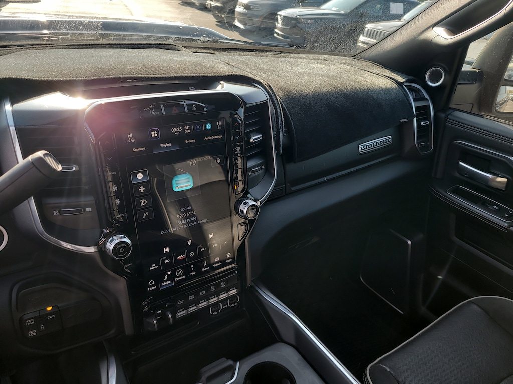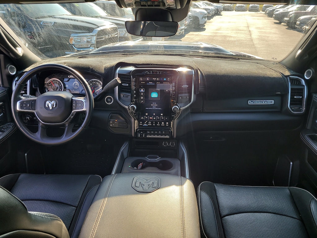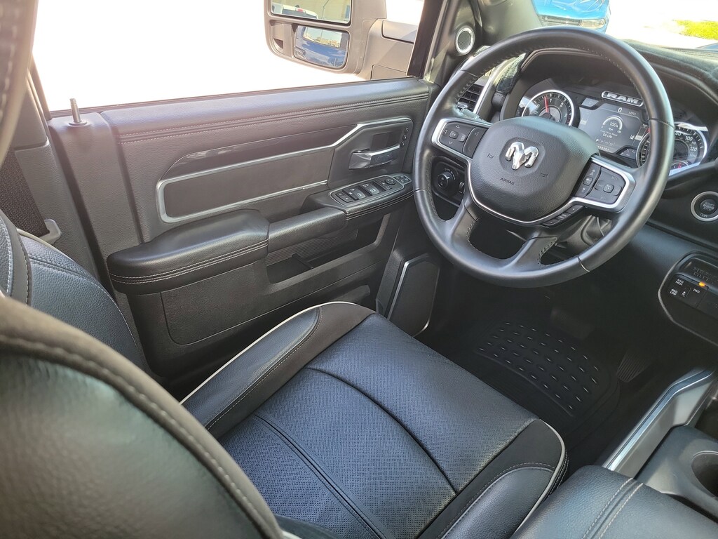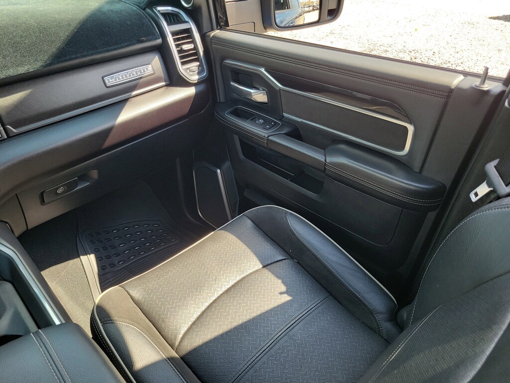 THIS VEHCILE INCLUDES THE FOLLOWING OPTIONS AND FEATURES: Bed Utility Group (LED Bed Lighting, MOPAR Deployable Bed Step, and MOPAR Spray In Bedliner), Laramie Level F Equipment Group (12" Touchscreen Display, 17 Speaker harman kardon Premium Sound, 4G LTE Wi-Fi Hot Spot, Alexa Built-In, Apple CarPlay, Auto Adjust In Reverse Exterior Mirrors, Auto Dim Exterior Mirror, Auto Dimming Exterior Passenger Mirror, Auto High Beam Headlamp Control, Auto Power-Folding Mirrors, Blind Spot & Cross Path Detection, Connected Travel & Traffic Services, Connectivity - US/Canada, Disassociated Touchscreen Display, Exterior Mirrors Courtesy Lamps, Exterior Mirrors w/Heating Element, Exterior Mirrors w/Memory, Exterior Mirrors w/Supplemental Signals, Foam Bottle Insert (Door Trim Panel), For Details Visit DriveUconnect.com, For More Info, Call 800-643-2112, Forward & Reverse Utility Lights, Front LED Fog Lamps, Global Telematics Box Module (TBM), Google Android Auto, GPS Antenna Input, GPS Navigation, HD Radio, Heated Second Row Seats, Integrated Voice Command w/Bluetooth, LED Reflector Headlamps, Mirror Running Lights, Off-Road Information Pages, ParkSense Front/Rear Park Assist System, Power Adjust Mirrors, Power Adjustable Pedals w/Memory, Power Heated Folding Telescopic Mirrors w/Memory, Power Telescoping Mirrors, Power-Adjustable Convex Aux Mirrors, Radio: Uconnect 5 Nav w/12.0" Display, Rain Sensitive Windshield Wipers, Rear Power Sliding Window, Rear Window Defroster, Remote Tailgate Release, Selectable Tire Fill Alert, SiriusXM Radio Service, SiriusXM w/360L, and Trailer Tow Pages), Night Edition (Black Exterior Truck Badging, Black Headlamp Bezels, Black Interior Accents, Black Ram Head Tailgate Badge, Black Tail Lamp Bezels, Body Color Grille Surround, Gloss Black Grille Billets/Accents, Sport Performance Hood, and Twill Film Appliques), Protection Group, Quick Order Package 21H Laramie, Safety Group (Adaptive Cruise Control w/Stop, Adaptive Steering System, Full Speed Forward Collision Warning Plus, and Lane Keep Assist), Towing Technology Group (CTR Stop Lamp w/Cargo View Camera, Surround View Camera System, and Trailer Reverse Guidance), 10 Speakers, 115V Auxiliary Rear Power Outlet, 2 Way Rear Headrest Seat, 220 Amp Alternator, 3.73 Axle Ratio, 4 Way Front Headrests, 4-Wheel Disc Brakes, ABS brakes, Active Noise Control System, Air Conditioning, Alloy wheels, AM/FM radio: SiriusXM with 360L, Apple CarPlay/Android Auto, Auto Level Rear Air Suspension, Auto-dimming Rear-View mirror, Automatic temperature control, Black Wheel Center Hub, Brake assist, Bumpers: body-color, Center Hub, Chrome Exterior Mirrors, Clearance Lamps, Compass, Dash Pass Thru Wire Circuits, Delay-off headlights, Driver door bin, Driver vanity mirror, Dual front impact airbags, Dual front side impact airbags, Electronic Stability Control, Electronically Controlled Throttle, Emergency Vehicle Alert System (EVAS), Front anti-roll bar, Front Bumper Sight Shields, Front Center Armrest w/Storage, Front dual zone A/C, Front License Plate Bracket, Front reading lights, Front Seat Back Map Pockets, Fully automatic headlights, Garage door transmitter, Heated door mirrors, Heated Front Seats, Heated front seats, Heated Steering Wheel, Heated steering wheel, High Back Seats, I/P Mounted Auxiliary Switches, Illuminated entry, Leather steering wheel, Leather Trim 40/20/40 Bench Seat, Low tire pressure warning, MOPAR Front & Rear Rubber Floor Mats, Navigation System, Occupant sensing airbag, Outside temperature display, Overhead airbag, Overhead console, Painted Flat Wheel-to-Wheel Side Steps, Panic alarm, ParkView Rear Back-Up Camera, Passenger door bin, Passenger vanity mirror, Power 8-Way Adjustable Passenger Seat, Power Adjust 8-Way Driver Seat, Power door mirrors, Power driver seat, Power passenger seat,