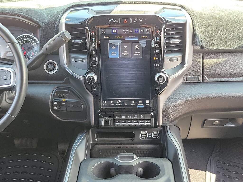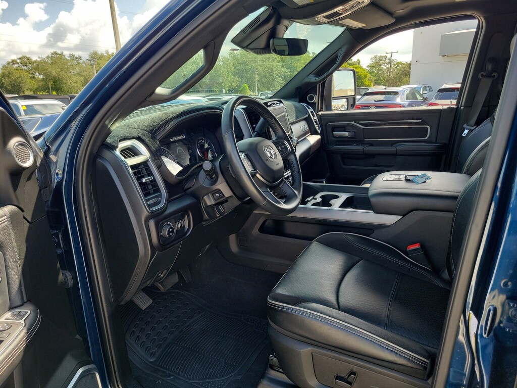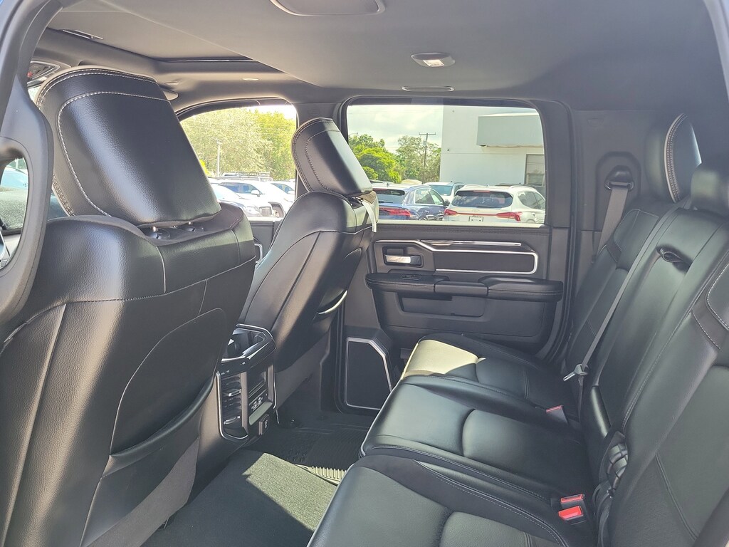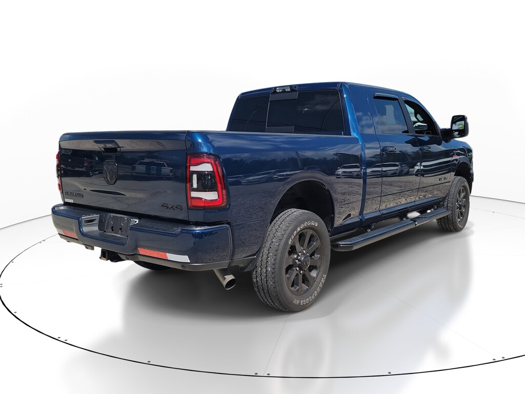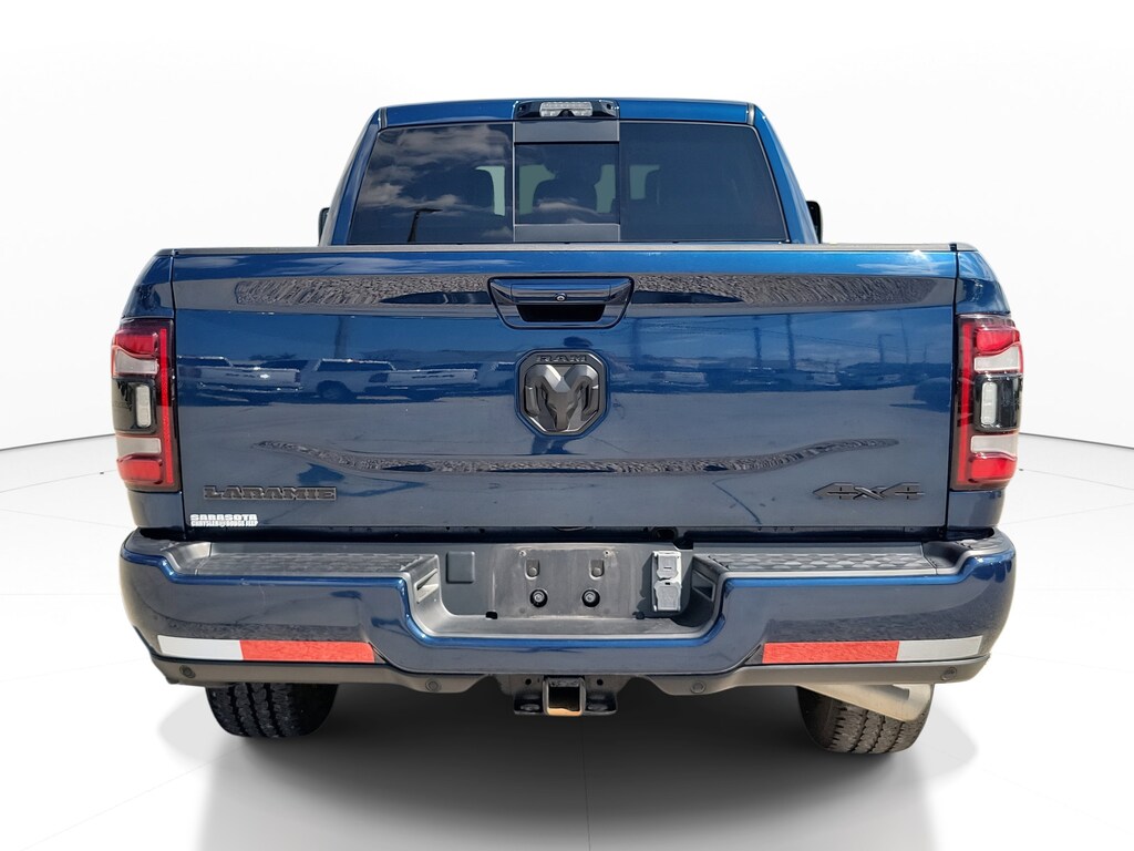 THIS VEHCILE INCLUDES THE FOLLOWING OPTIONS AND FEATURES: Bed Utility Group (LED Bed Lighting, MOPAR Deployable Bed Step, and MOPAR Spray In Bedliner), Laramie Level F Equipment Group (12" Touchscreen Display, 17 Speaker harman kardon Premium Sound, 4G LTE Wi-Fi Hot Spot, Alexa Built-In, Apple CarPlay, Auto Adjust In Reverse Exterior Mirrors, Auto Dim Exterior Mirror, Auto Dimming Exterior Passenger Mirror, Auto High Beam Headlamp Control, Auto Power-Folding Mirrors, Blind Spot & Cross Path Detection, Connected Travel & Traffic Services, Connectivity - US/Canada, Disassociated Touchscreen Display, Exterior Mirrors Courtesy Lamps, Exterior Mirrors w/Heating Element, Exterior Mirrors w/Memory, Exterior Mirrors w/Supplemental Signals, Foam Bottle Insert (Door Trim Panel), For Details Visit DriveUconnect.com, For More Info, Call 800-643-2112, Forward & Reverse Utility Lights, Front LED Fog Lamps, Global Telematics Box Module (TBM), Google Android Auto, GPS Antenna Input, GPS Navigation, HD Radio, Heated Second Row Seats, Integrated Voice Command w/Bluetooth, LED Reflector Headlamps, Mirror Running Lights, Off-Road Information Pages, ParkSense Front/Rear Park Assist System, Power Adjust Mirrors, Power Adjustable Pedals w/Memory, Power Heated Folding Telescopic Mirrors w/Memory, Power Telescoping Mirrors, Power-Adjustable Convex Aux Mirrors, Radio: Uconnect 5 Nav w/12.0" Display, Rain Sensitive Windshield Wipers, Rear Power Sliding Window, Rear Window Defroster, Remote Tailgate Release, Selectable Tire Fill Alert, SiriusXM Radio Service, SiriusXM w/360L, and Trailer Tow Pages), Night Edition (Black Exterior Truck Badging, Black Headlamp Bezels, Black Interior Accents, Black Ram Head Tailgate Badge, Black Tail Lamp Bezels, Body Color Grille Surround, Gloss Black Grille Billets/Accents, Sport Performance Hood, and Twill Film Appliques), Protection Group, Quick Order Package 21H Laramie, Safety Group (Adaptive Cruise Control w/Stop, Adaptive Steering System, Full Speed Forward Collision Warning Plus, and Lane Keep Assist), Towing Technology Group (CTR Stop Lamp w/Cargo View Camera, Surround View Camera System, and Trailer Reverse Guidance), 10 Speakers, 115V Auxiliary Rear Power Outlet, 2 Way Rear Headrest Seat, 220 Amp Alternator, 3.73 Axle Ratio, 4 Way Front Headrests, 4-Wheel Disc Brakes, ABS brakes, Active Noise Control System, Air Conditioning, Alloy wheels, AM/FM radio: SiriusXM with 360L, Apple CarPlay/Android Auto, Auto Level Rear Air Suspension, Auto-dimming Rear-View mirror, Automatic temperature control, Black Wheel Center Hub, Brake assist, Bumpers: body-color, Center Hub, Chrome Exterior Mirrors, Clearance Lamps, Compass, Dash Pass Thru Wire Circuits, Delay-off headlights, Driver door bin, Driver vanity mirror, Dual front impact airbags, Dual front side impact airbags, Electronic Stability Control, Electronically Controlled Throttle, Emergency Vehicle Alert System (EVAS), Front anti-roll bar, Front Bumper Sight Shields, Front Center Armrest w/Storage, Front dual zone A/C, Front License Plate Bracket, Front reading lights, Front Seat Back Map Pockets, Fully automatic headlights, Garage door transmitter, Heated door mirrors, Heated Front Seats, Heated front seats, Heated Steering Wheel, Heated steering wheel, High Back Seats, I/P Mounted Auxiliary Switches, Illuminated entry, Leather steering wheel, Leather Trim 40/20/40 Bench Seat, Low tire pressure warning, MOPAR Front & Rear Rubber Floor Mats, Navigation System, Occupant sensing airbag, Outside temperature display, Overhead airbag, Overhead console, Painted Flat Wheel-to-Wheel Side Steps, Panic alarm, ParkView Rear Back-Up Camera, Passenger door bin, Passenger vanity mirror, Power 8-Way Adjustable Passenger Seat, Power Adjust 8-Way Driver Seat, Power door mirrors, Power driver seat, Power passenger seat,