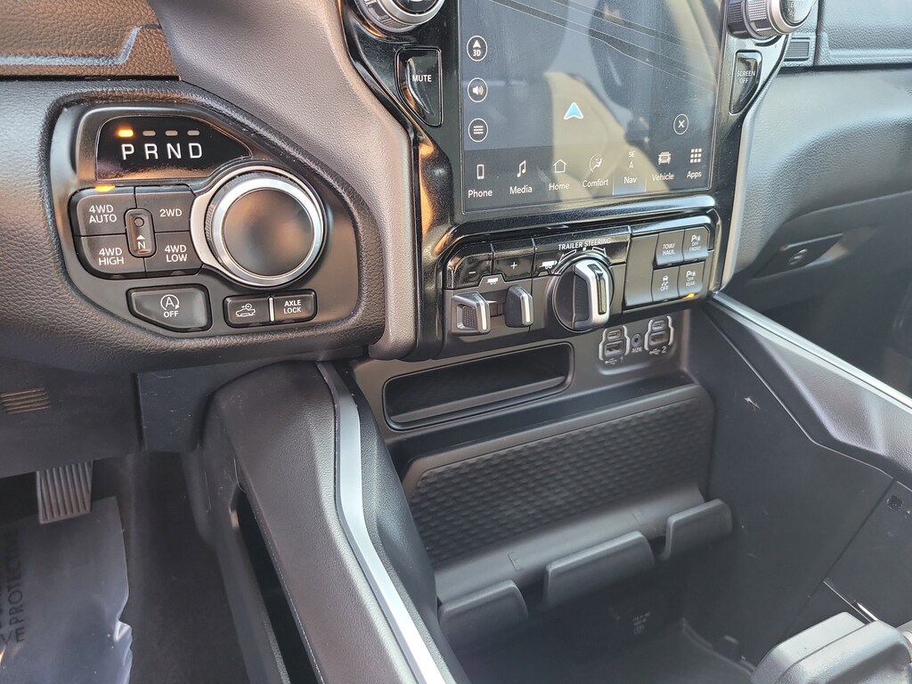 THIS VEHCILE INCLUDES THE FOLLOWING OPTIONS AND FEATURES: Big Horn Level B Equipment Group (115V Auxiliary Power Outlet, 2nd Row In Floor Storage Bins, 400W Inverter, 4G LTE Wi-Fi Hot Spot, 9 Amplified Speakers w/Subwoofer, Air Conditioning ATC w/Dual Zone Control, All R1 High Radios, All Radio Equipped Vehicles, Apple CarPlay, Auto-Dimming Exterior Driver Mirror, Auto-Dimming Rear-View Mirror, Black Premium Power Mirrors, Class IV Receiver Hitch, Cluster 7.0" TFT Color Display, Connected Travel & Traffic Services, Connectivity - US/Canada, Convex Wide-Angle Exterior Mirror Insert, Exterior Mirrors Courtesy Lamps, Exterior Mirrors w/Heating Element, Exterior Mirrors w/Supplemental Signals, For Details, Visit DriveUconnect.com, For More Info, Call 800-643-2112, Front Fog Lamps, Global Telematics Box Module (TBM), Glove Box Lamp, Google Android Auto, GPS Navigation, HD Radio, Heated Front Seats, Heated Steering Wheel, Integrated Voice Command w/Bluetooth, LED Footwell Lighting, Media Hub w/2 Charge Only USBs, ParkSense Front/Rear Park Assist w/Stop, Power 2-Way Driver Lumbar Adjust, Power 8-Way Driver Seat, Power Adjustable Pedals, Power-Folding Mirrors, Radio: Uconnect 5 Nav w/12.0" Display, Rear Dome w/On/Off Switch Lamp, Rear Power Sliding Window, Rear Window Defroster, Remote Start System, Security Alarm, SiriusXM Radio Service, SiriusXM Satellite Radio, SiriusXM w/360L, Sun Visors w/Illuminated Vanity Mirrors, Universal Garage Door Opener, and USB Host Flip), Off Road Group (E-Locker Rear Axle, Front Extra HD Shock Absorbers, Off Road Decals, Raised Ride Height, Rear Extra HD Shock Absorbers, Selec-Speed (TM) Control, and Tow Hooks), Quick Order Package 27Z Big Horn (Big Horn Badge), Sport Appearance Package (3 Rear Seat Head Restraints, 4 Way Front Headrests, Black Interior Accents, Body Color Door Handles, Body Color Exterior Mirrors, Body Color Front Bumper, Body Color Premium Power Mirrors, Body Color Rear Bumper w/Step Pads, Bucket Seats, Deluxe Cloth Bucket Seats, Front Seat Back Map Pockets, Full Length Floor Console, Grille Surround 1 Body Color Texture 2 Black, Manual Adjust 4-Way Front Passenger Seat, RAM Grille Badge - Chrome, Rear 60/40 Folding Seat, and Rear Center Armrest), Trailer Tow Group (Black Trailer Tow Power Mirrors, Trailer Brake Control, Trailer Light Check, Trailer Reverse Steering Control, and Trailer Tire Pressure Monitoring System), 3.21 Rear Axle Ratio, 4-Wheel Disc Brakes, 48V Belt Starter Generator, 6 Speakers, ABS brakes, Active Noise Control System, Air Conditioning, Alloy wheels, AM/FM radio, Brake assist, Bumpers: chrome, Cloth Bench Seat, Compass, Delay-off headlights, Driver door bin, Dual front impact airbags, Dual front side impact airbags, Dual Rear Exhaust w/Bright Tips, Electronic Stability Control, Emergency communication system: RAM Connect, Engine Block Heater, Front anti-roll bar, Front Center Armrest w/Storage, Front License Plate Bracket, Front reading lights, Front wheel independent suspension, Fully automatic headlights, Heated door mirrors, Heavy-Duty Engine Cooling, HEMI Badge, Illuminated entry, Leather steering wheel, Low tire pressure warning, Manufacturer's Statement of Origin, Occupant sensing airbag, Outside temperature display, Overhead airbag, Overhead console, Panic alarm, ParkView Rear Back-Up Camera, Passenger door bin, Passenger vanity mirror, Power door mirrors, Power steering, Power windows, Radio data system, Radio: Uconnect 3 w/5" Display, Rear anti-roll bar, Rear seat center armrest, Rear step bumper, Remote keyless entry, Speed control, Split folding rear seat, Steering wheel mounted audio controls, Tachometer, Telescoping steering wheel, Tilt steering wheel, Traction control, Trip computer, Variably intermittent wipers, Voltmeter,